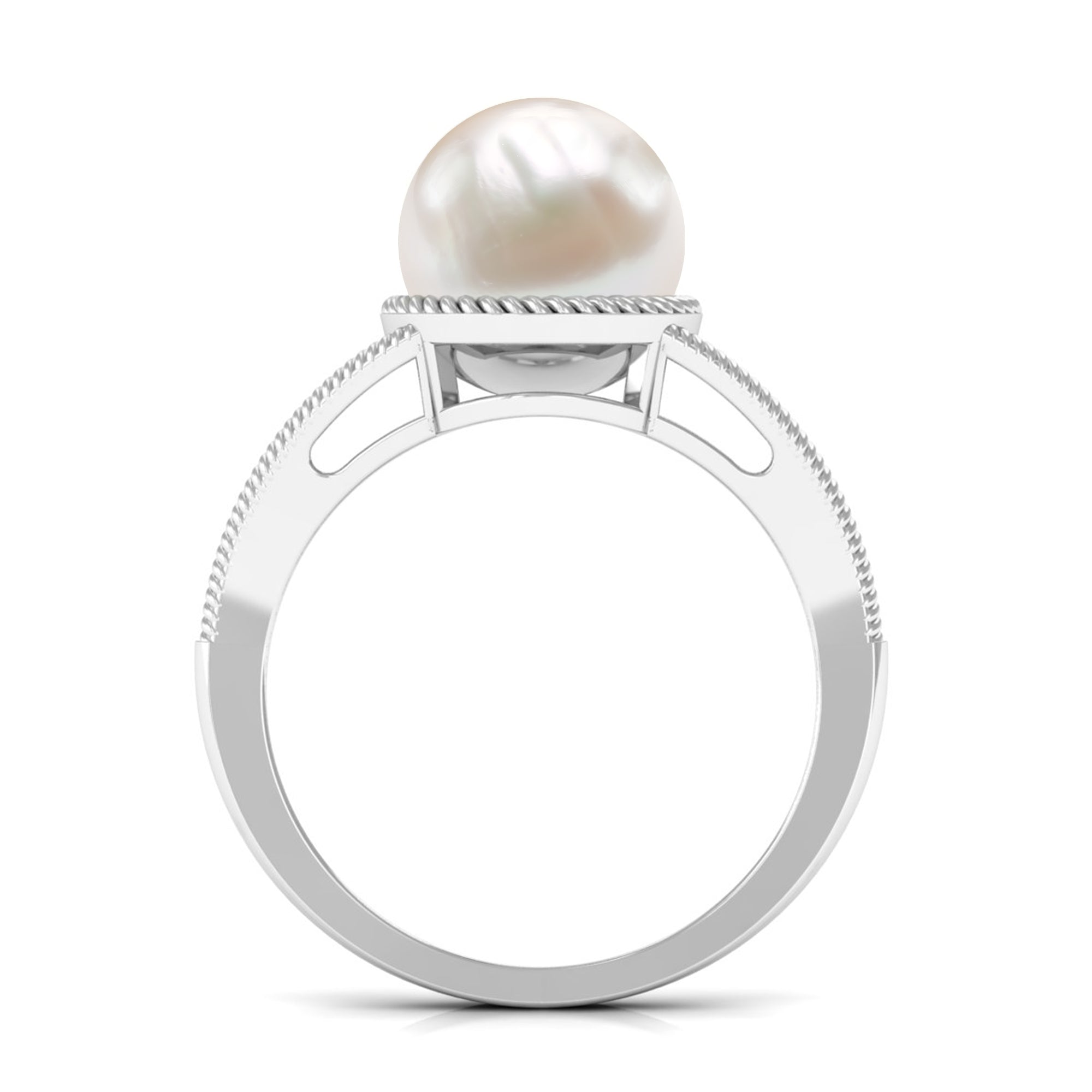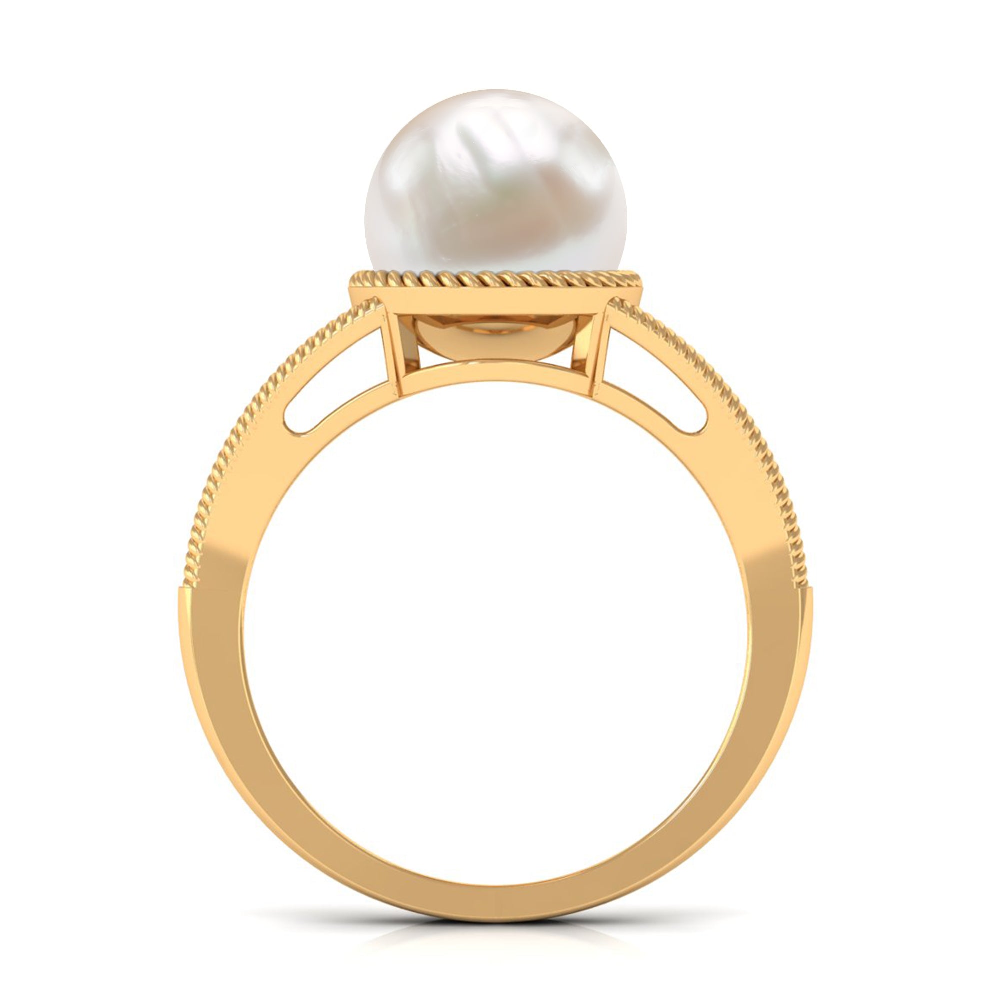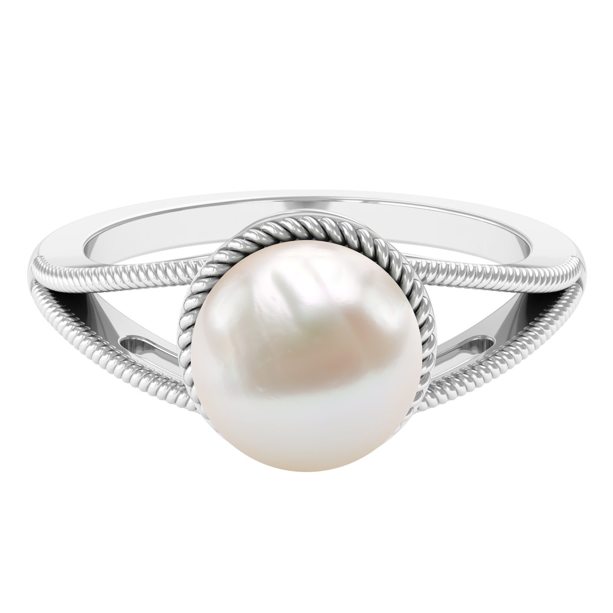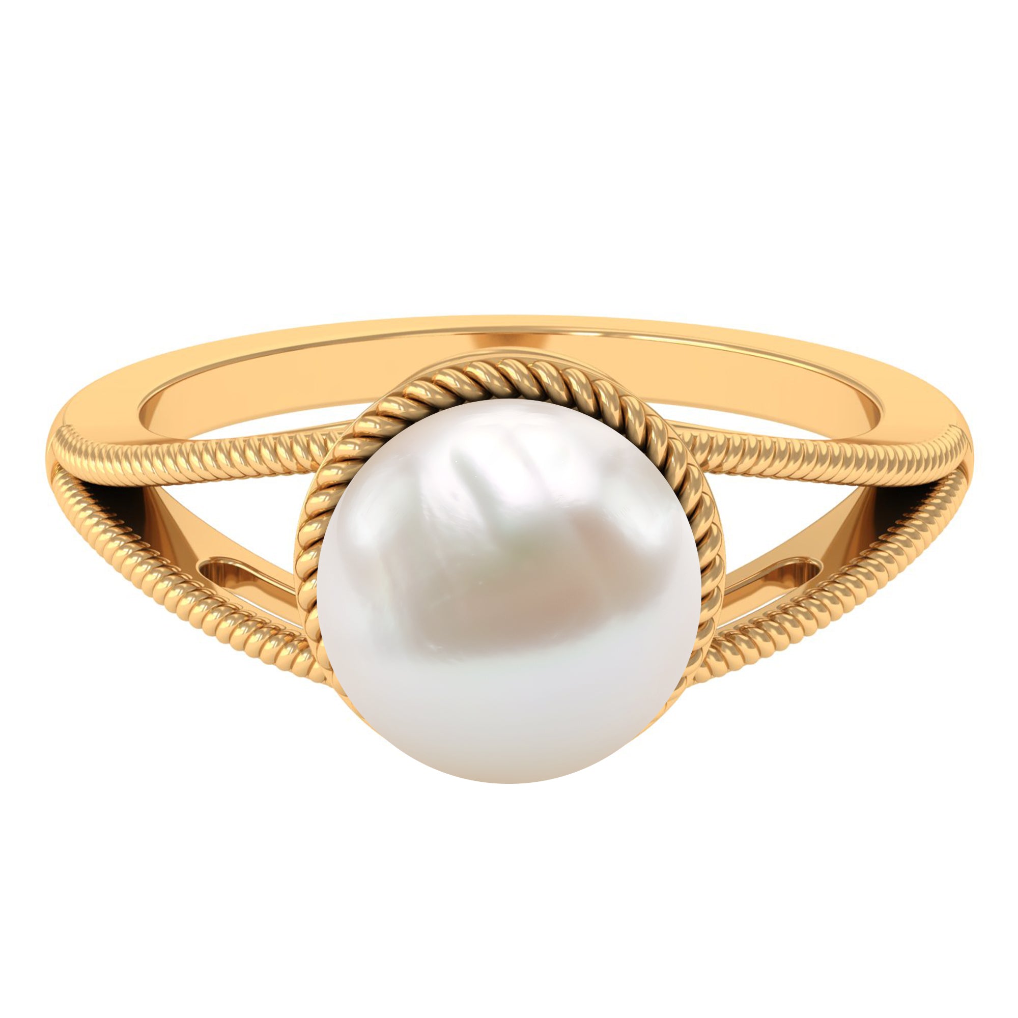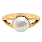 6 CT Split Shank Freshwater Pearl Solitaire Ring in Gold Rope frame