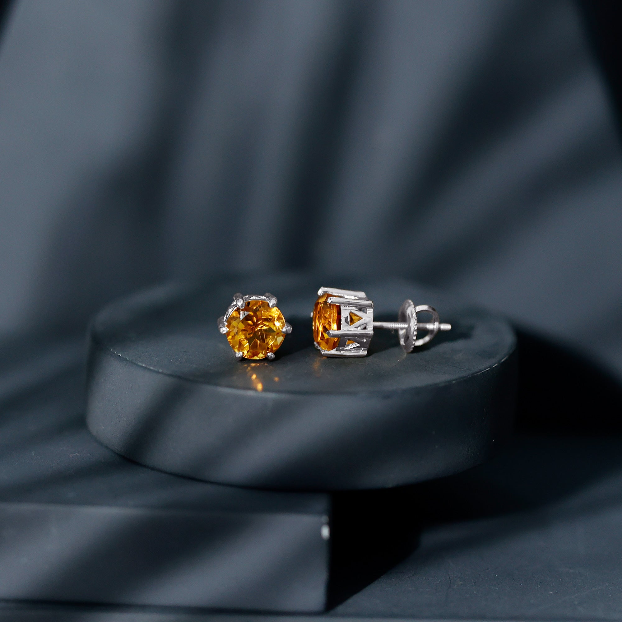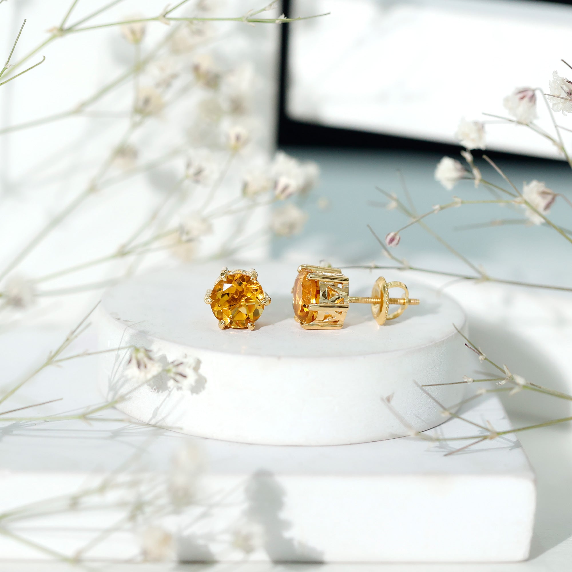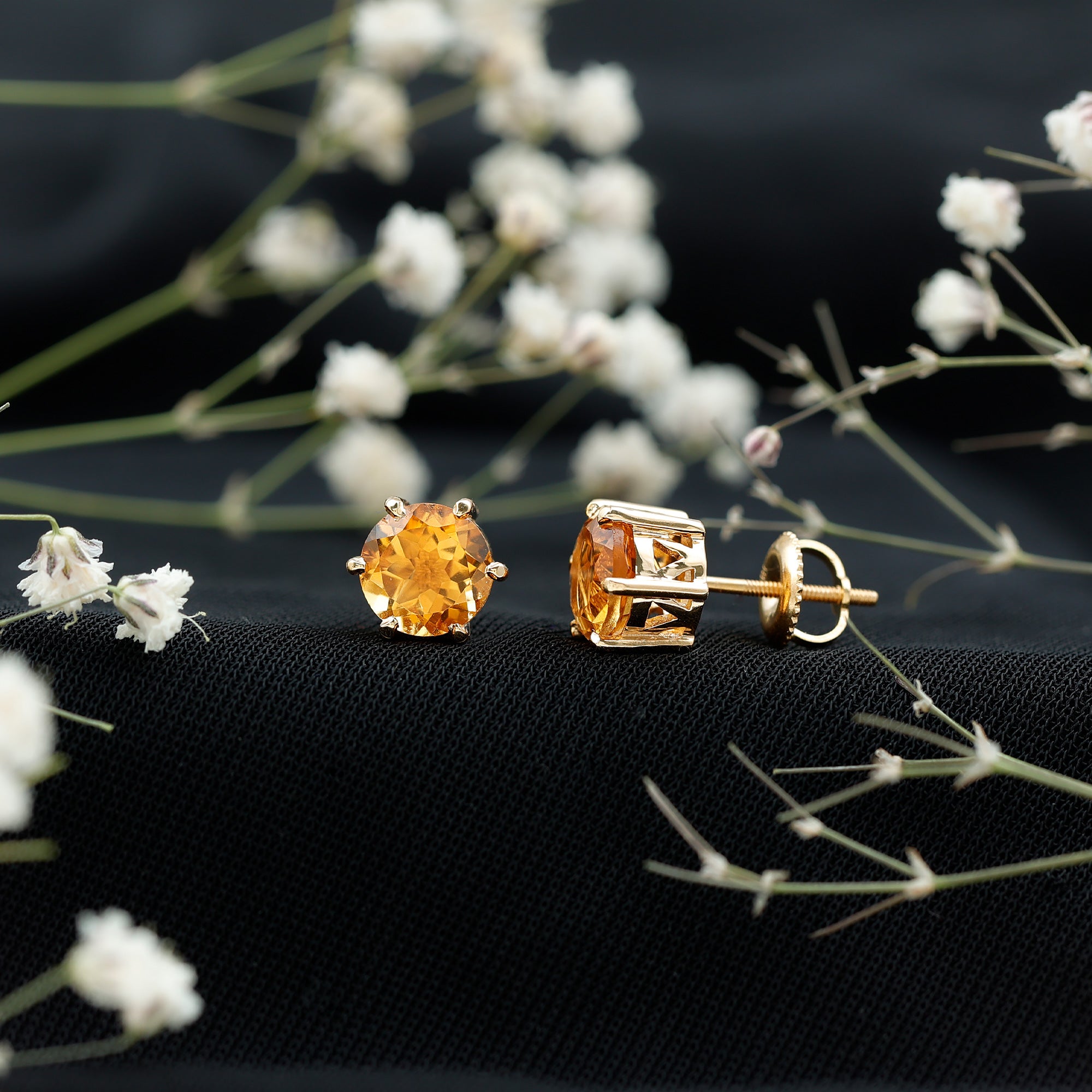Make a Statement with this Simple Stud Earrings featuring Round Cut Citrine set in Claw setting and adorned in Solid Gold.