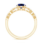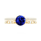 6 MM Created Blue Sapphire Solitaire Engagement Double Band Ring with Diamond