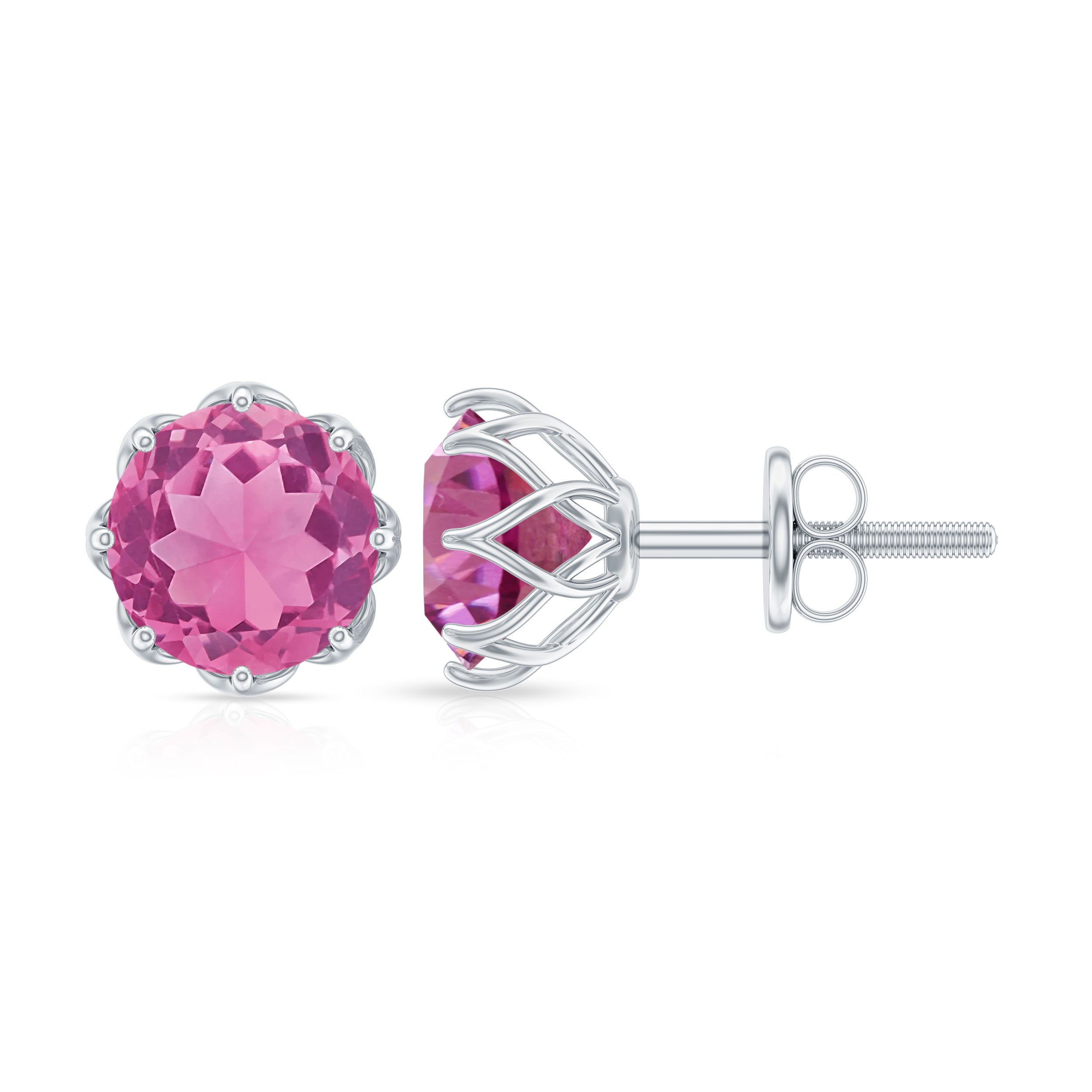 6 MM Decorative Pink Tourmaline Solitaire Stud Earrings