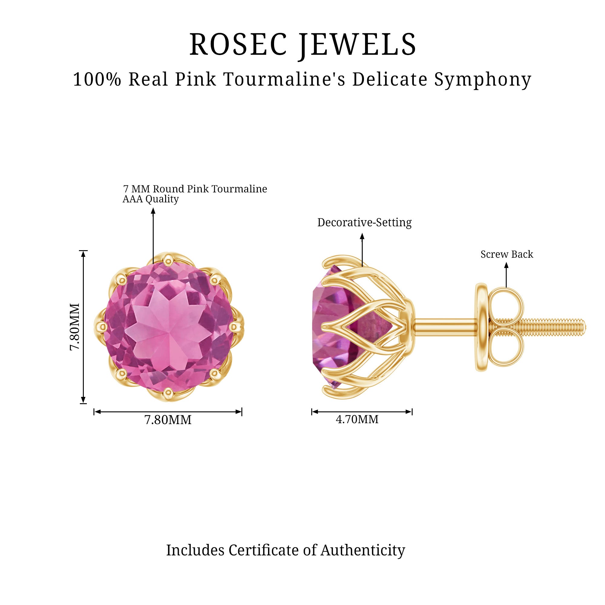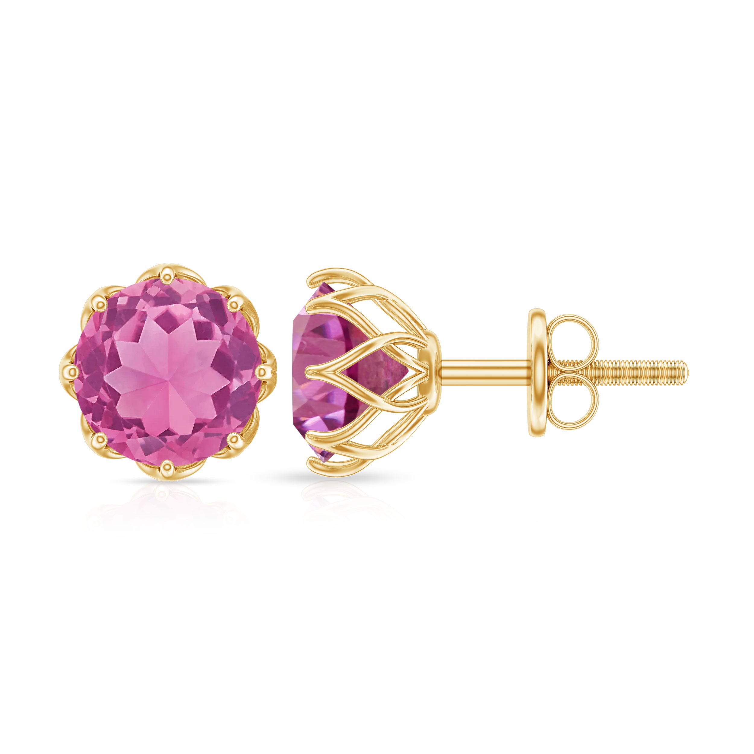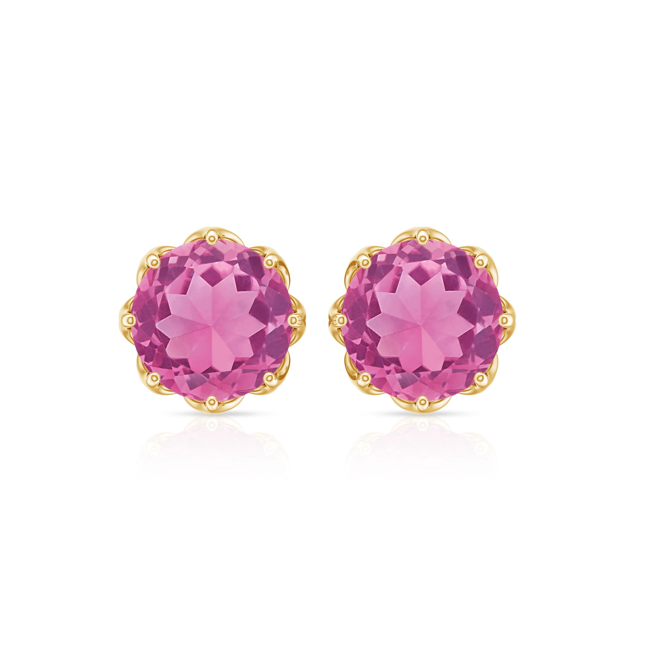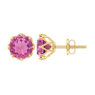 This Solitaire Floral Earring is studded with a Round Shape Pink Tourmaline as Solitaire in Floral Setting. This Solitaire Stud Earring is an ideal piece of Fine Jewelry for simple and subtle looks.