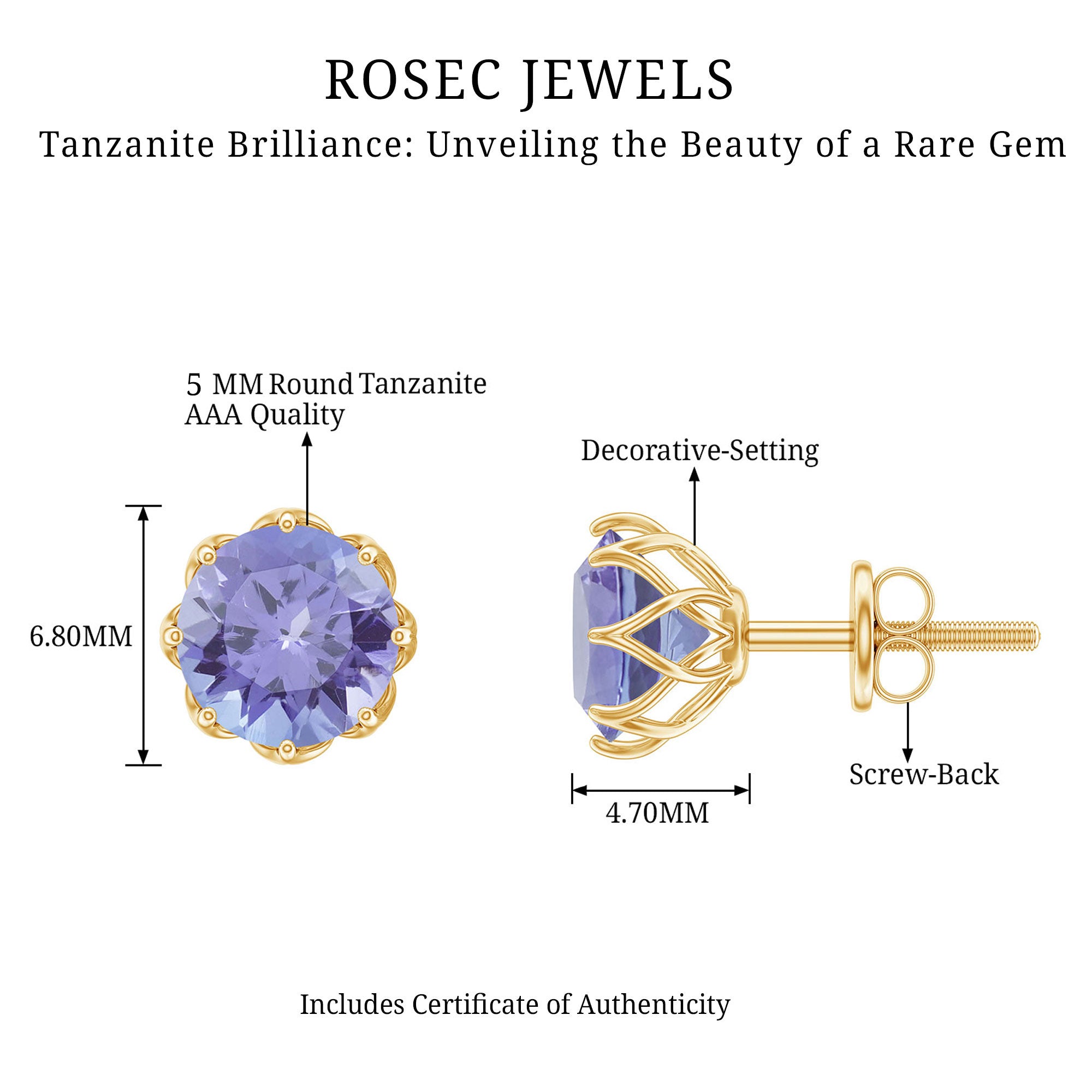 This Solitaire Floral Earring is studded with a Round Shape Tanzanite as Solitaire in Floral Setting. This Solitaire Stud Earring is an ideal piece of Fine Jewelry for simple and subtle looks.