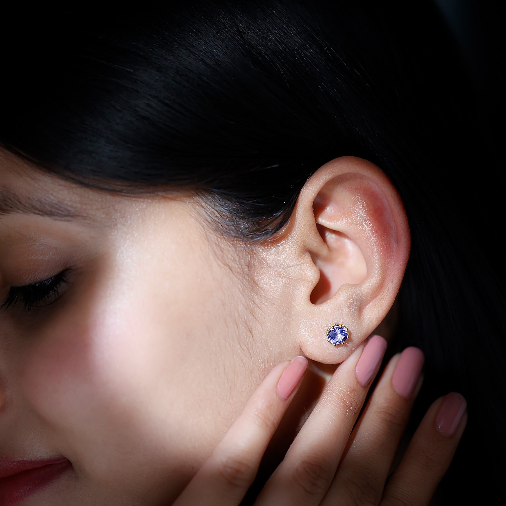 6 MM Decorative Tanzanite Solitaire Stud Earrings