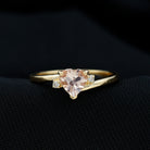This delicate promise ring features a heart shaped morganite stone in prong setting with Diamond on each sides. The soft, peachy-pink hue of the morganite is complemented by small sparkling Diamond, adding a touch of elegance to the piece. This ring is perfect for those looking for a romantic and meaningful way to express their commitment and affection. Whether its for a special occasion or just to show someone how much you care, this ring is sure to be treasured for years to come.