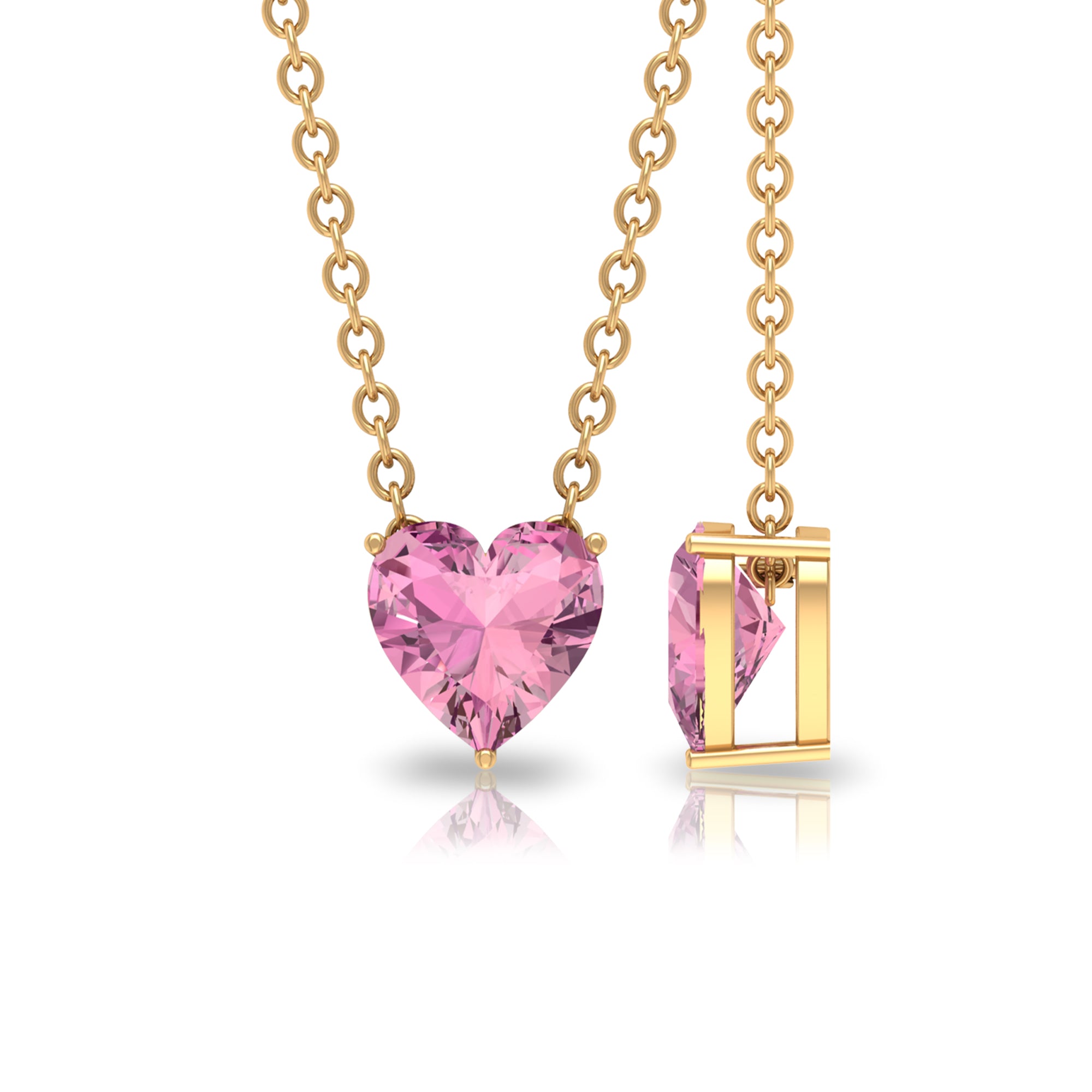 Enhance Your Beauty with these beautiful Drop Pendant Embellished with Heart Shape Pink Tourmaline set as Solitaire in Prong Setting. This Gold Drop Pendant is Composed of Solid Gold