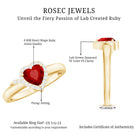 There is something truly special about a Heart Shaped Engagement Ring, it says everything without needing words. This Ruby Engagement Ring is a romantic choice for those who want something a little different, yet deeply meaningful. Shaped with care, the design features a 6 MM Heart shaped lab created ruby set in prong setting. A delicate halo of round cut lab created diamonds outlines the heart shape, giving it a graceful frame that highlights its unique form. What makes this Ruby and Diamond Engagement Ring even more thoughtful is how it is made. Using lab grown stones of AAAA quality ruby and EF-VS quality diamonds, it brings beauty and responsibility together in one timeless piece. Every element is crafted to offer not just style, but lasting value and purpose. Whether worn on its own or paired with a matching band, this Ruby Heart Ring stands beautifully on the hand. It is designed to feel light and comfortable while still making a lasting impression. Certified for quality and crafted with care, it is available in a range of metal colors and sizes, so you can make it truly personal. This is not just a piece of jewelry, it is a gentle reminder of love, care, and commitment