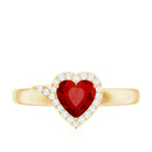 6 MM Lab Grown Ruby Heart Engagement Ring with Diamond Halo
