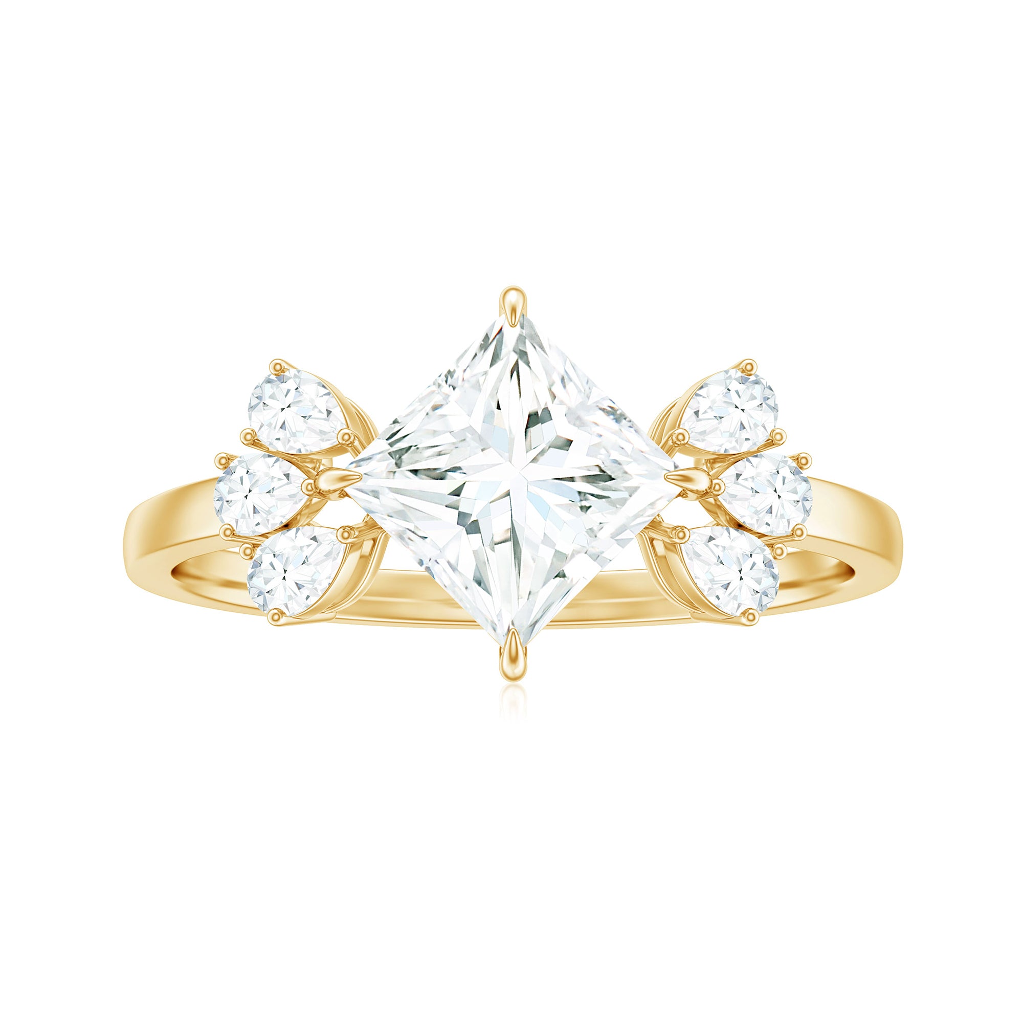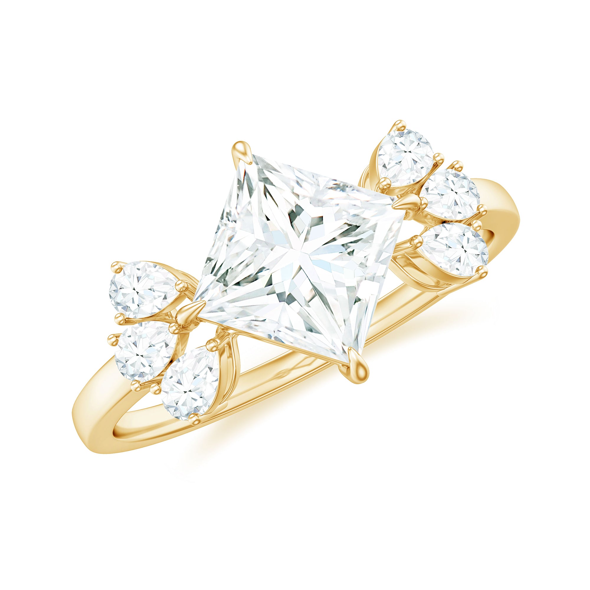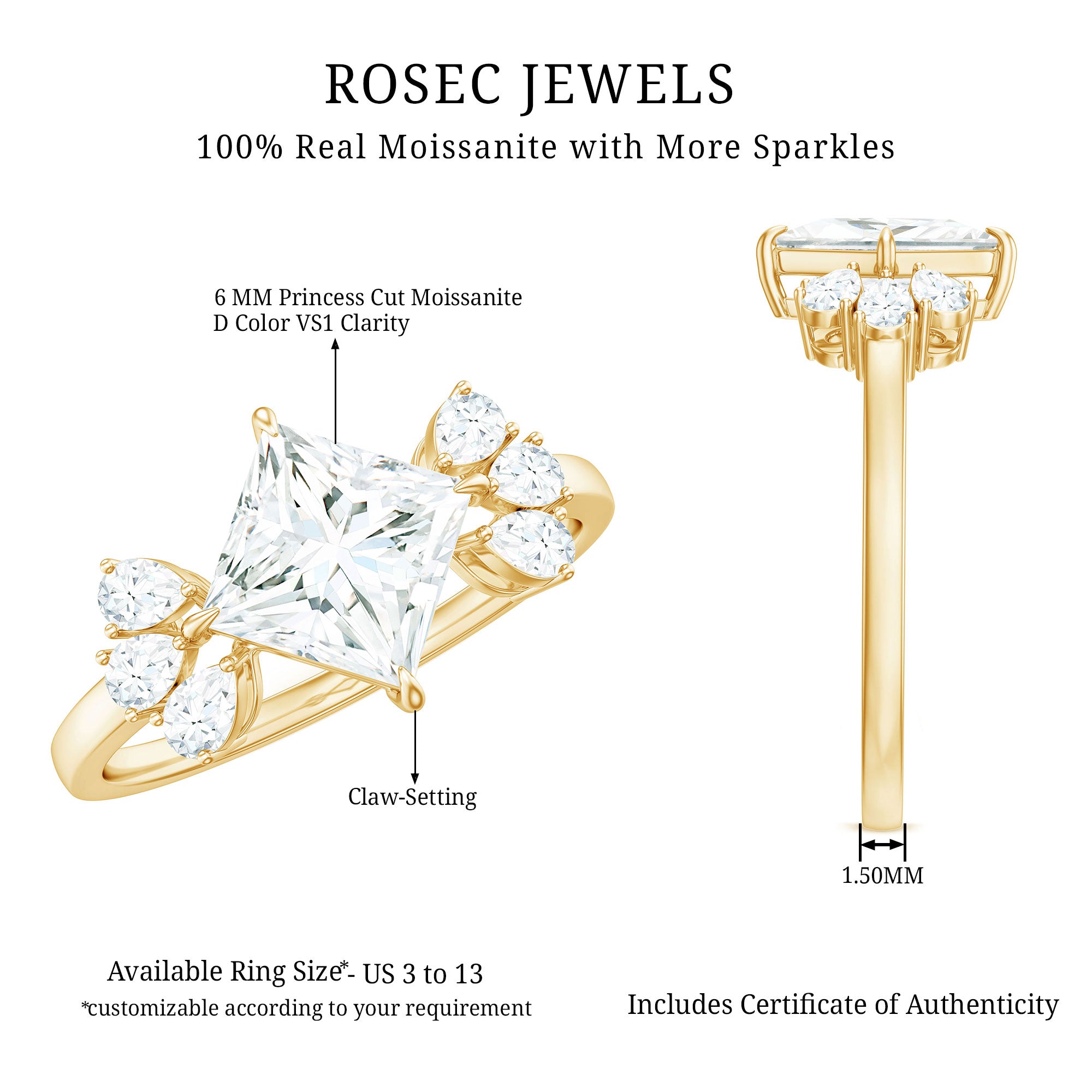 6 mm Princess Cut Moissanite Cluster Engagement Ring