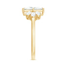 Rejoice in loves full splendor with this captivating Cluster Engagement Ring, meticulously crafted to embody the delicate charm of cherished moments. At the heart of this romantic creation shines a stunning 6 MM Princess Cut Moissanite, held securely in a prong setting. Flanking the central stone, elegant trios of pear-shaped moissanite stones glisten like beams of light, representing the past, present, and future of your commitment. Their brilliance contributes a refined equilibrium to the design, while the gentle curves of the band evoke a sense of fluidity and harmony. Every stone in this Moissanite Wedding Ring is offering the brilliance and fire of fine jewelry with a more thoughtful, sustainable choice. The D-VS1 quality moissanites provide exceptional clarity and a brilliant shine, making this piece a remarkable choice in both emotion and aesthetics. Whether you are affirming a commitment, conveying affection, or presenting a significant gift, this Cluster Engagement Ring narrates a tale of bond and thoughtfulness. Meticulously crafted with a focus on detail and a contemporary essence, this 2 CT Moissanite Ring comes in a sophisticated jewelry box, making it ideal for personal use or as a gift. With its floral elegance and classic design, it is a ring intended not only for wearing but also for cherishing, eternally.