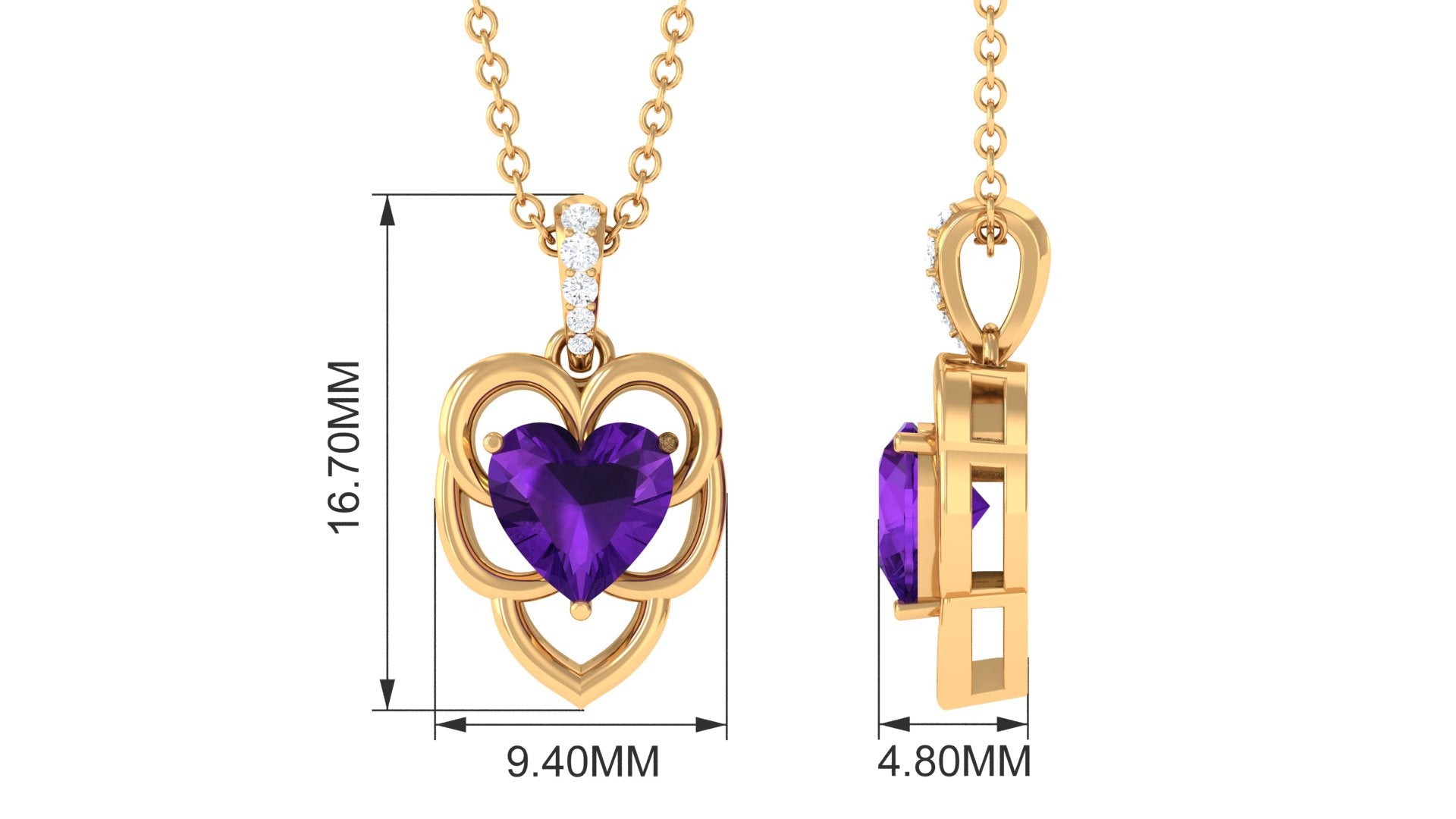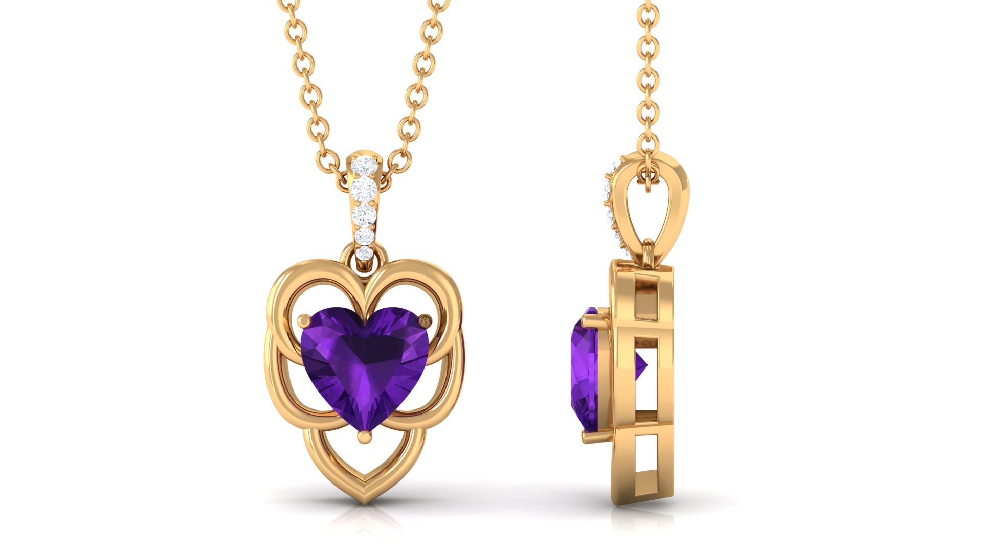 6 MM Real Amethyst Heart Pendant with Diamond