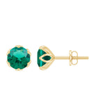 Designed elegantly, these Solitaire Stud Earrings are adorned with Round Cut Created Emerald in Lotus Basket Setting and crafted in Solid Gold to make for a classic choice for different occasions.