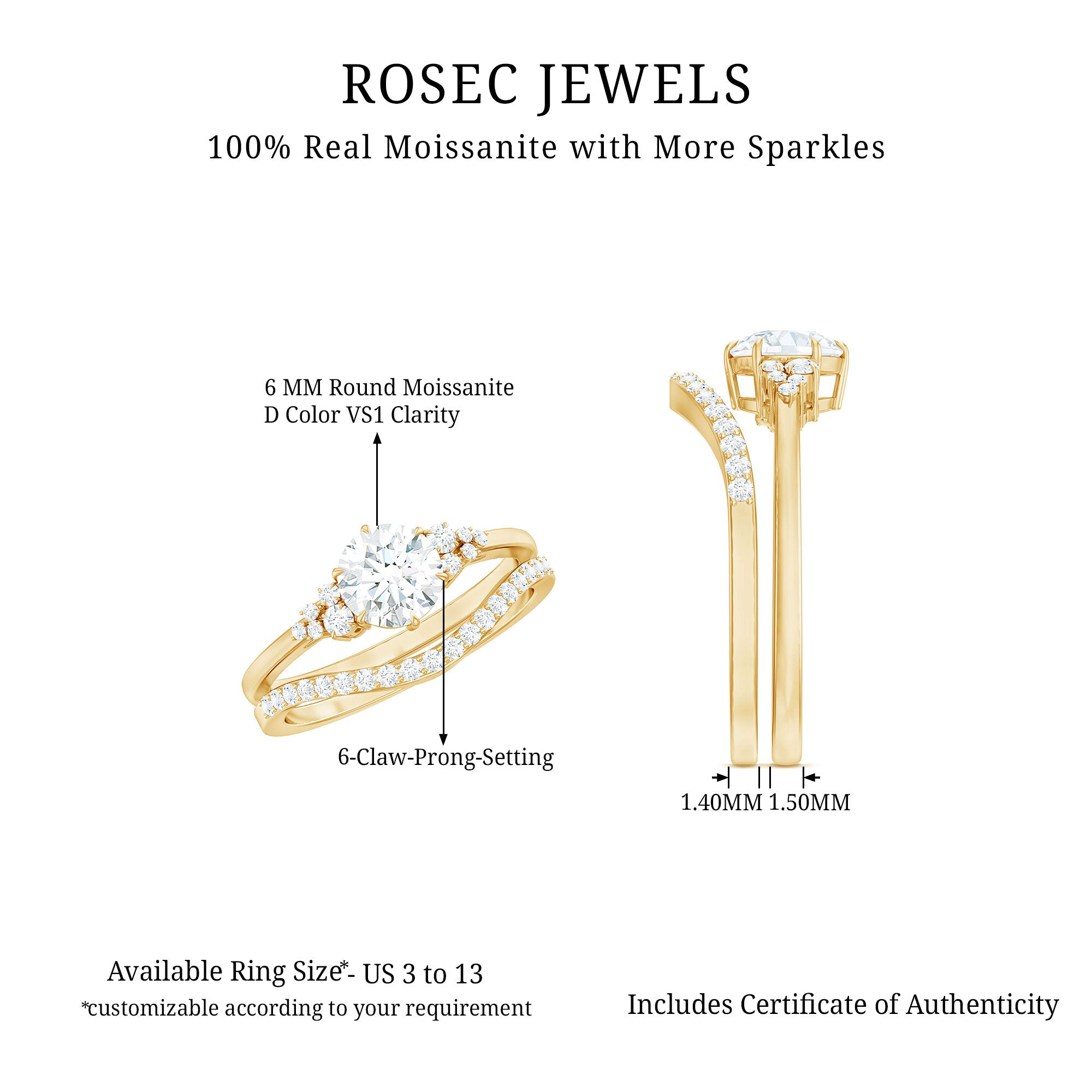 6 MM Round Cut Moissanite Wedding Ring Set For Bride