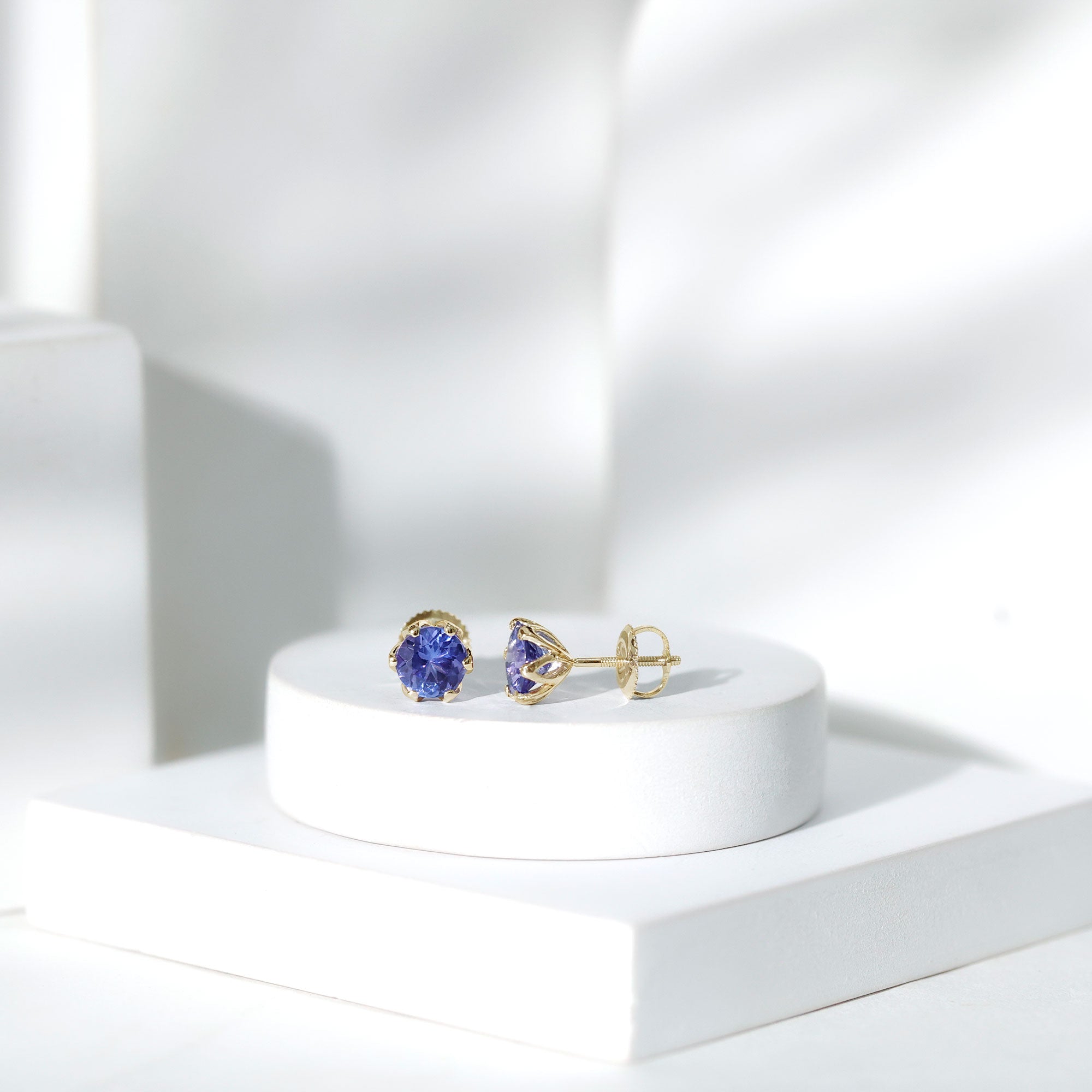 6 MM Round Cut Tanzanite Solitaire Stud Earrings for Women