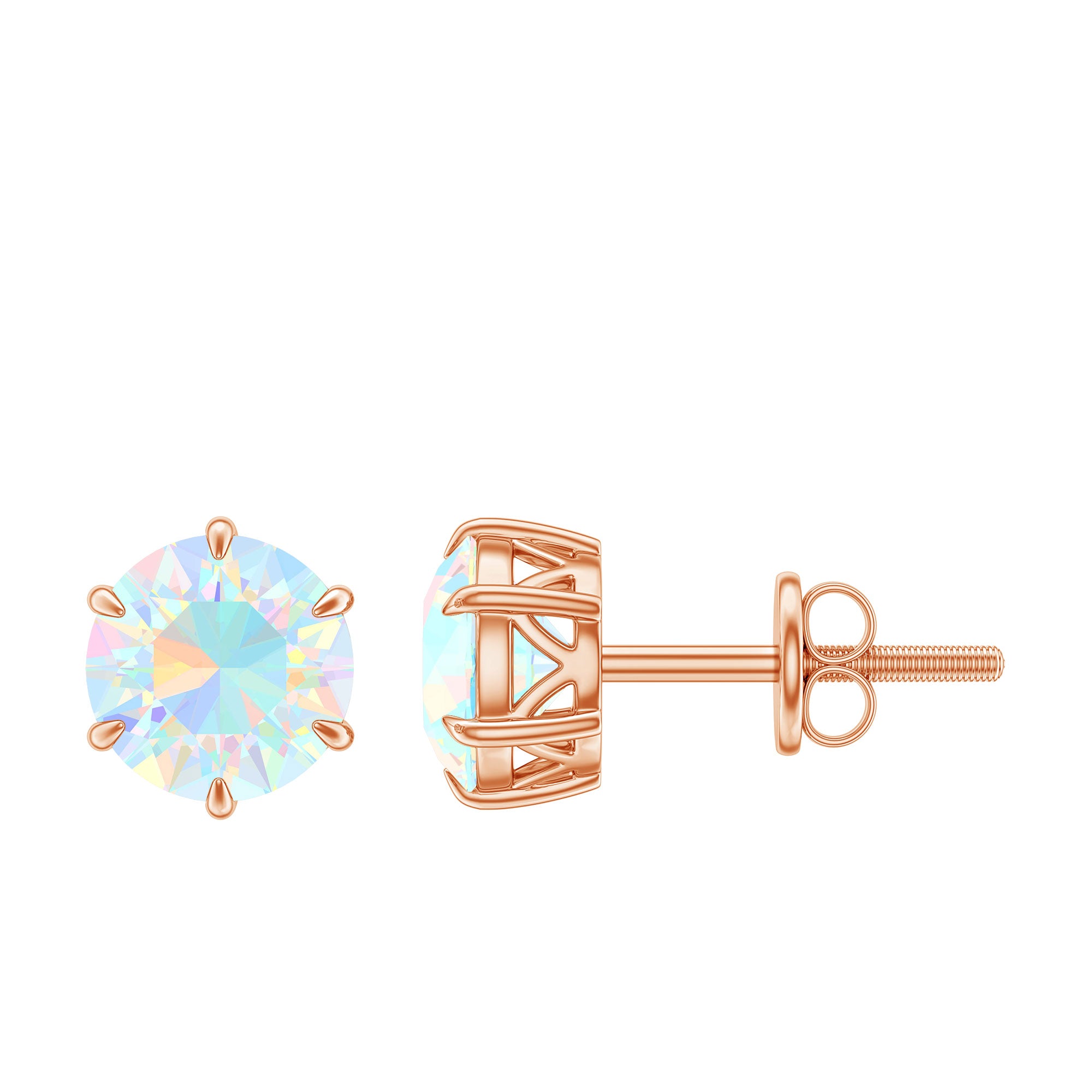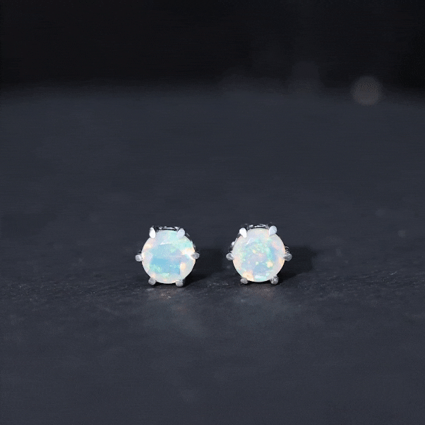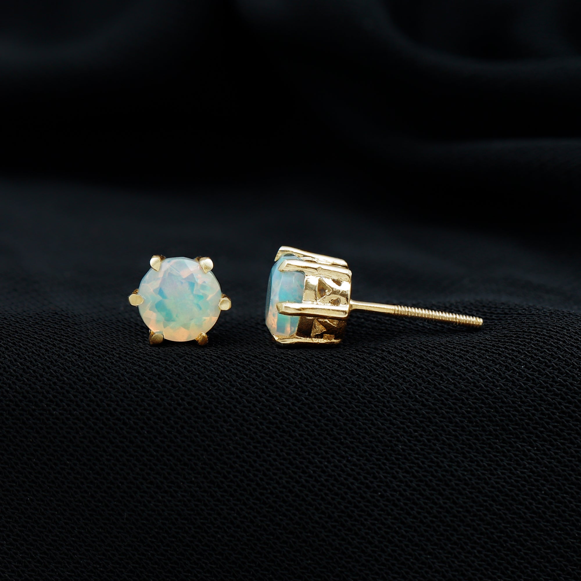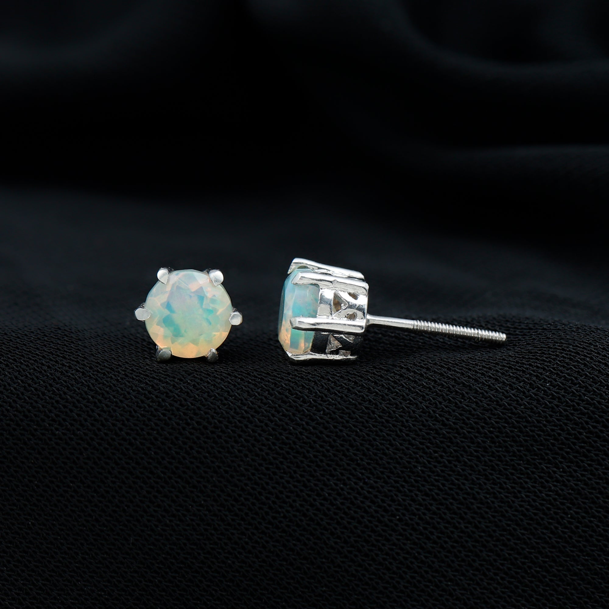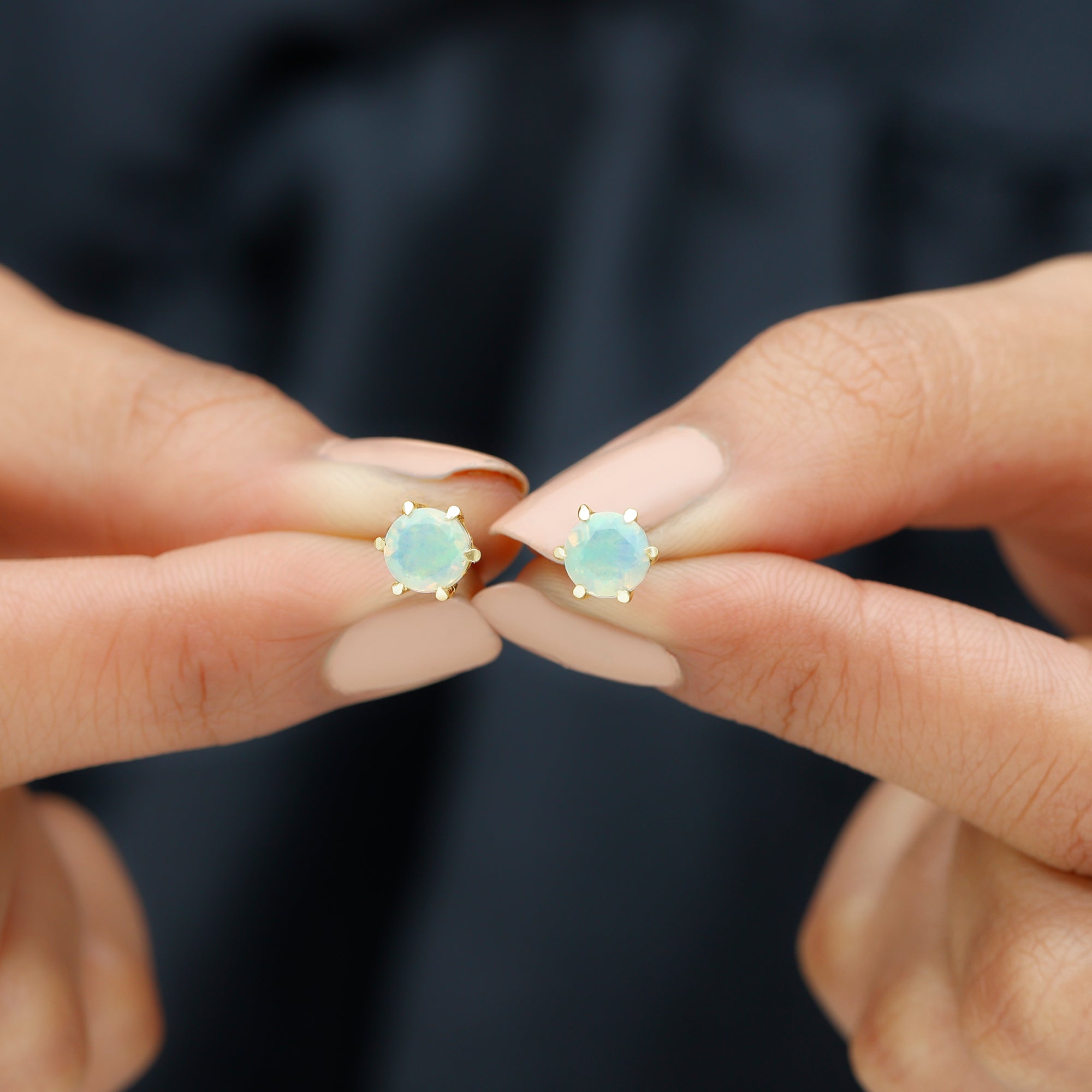 6 MM Round Ethiopian Opal Solitaire Stud Earrings in 6 Claw Prong Setting