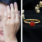 Show your love with this exquisite gold ring featuring a 6mm round-cut fire opal set in a Lotus basket setting. This fire opal solitaire ring will make a stunning gift for your special someone.