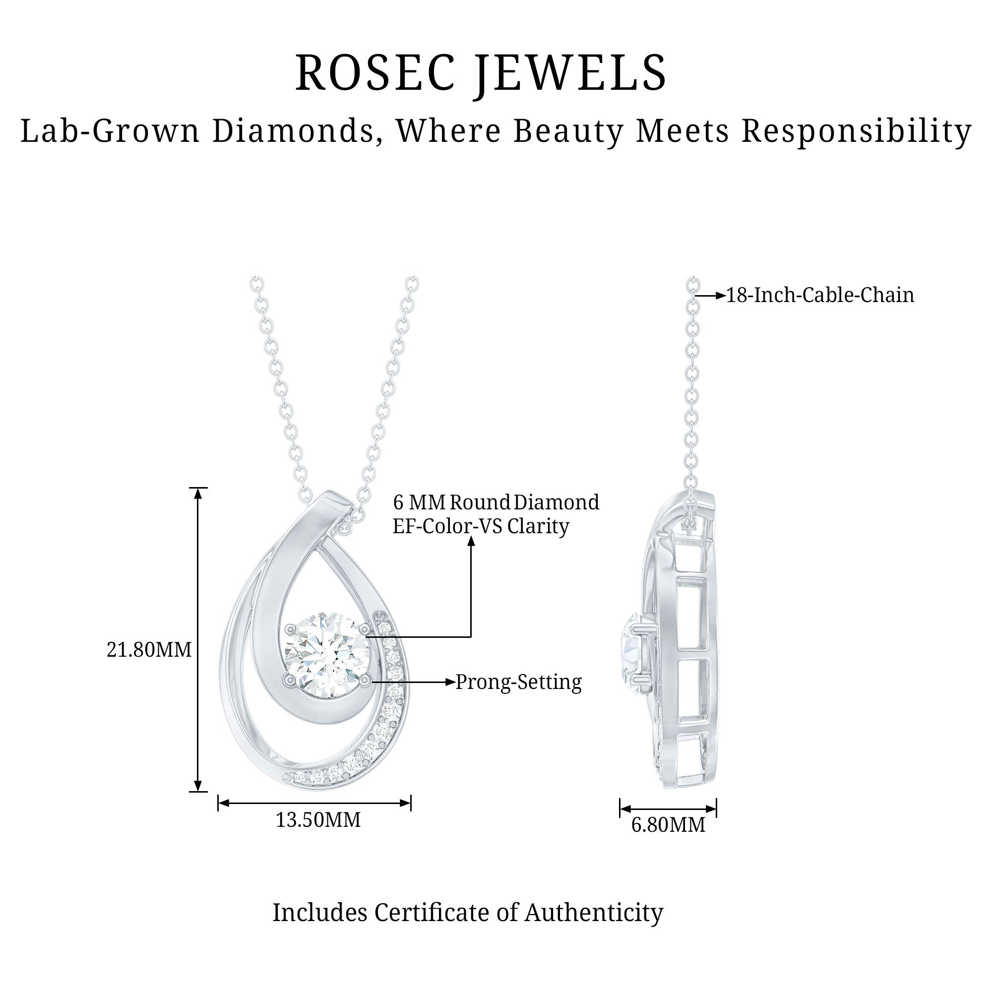 Carefully crafted with passion and attention to detail, this exquisite Lab Grown Diamond Pendant stands out from the crowd. At its heart lies a breathtaking 6 MM Round Shape Diamond gemstone, elegantly held in secure Prong Setting within a teardrop frame, enhanced by sparkling smaller gemstones. This Diamond Pendant Necklace is sure to draw compliments. Pair this stunning Solitaire Pendant with its coordinating earrings, and youll be all set to shine throughout the day.