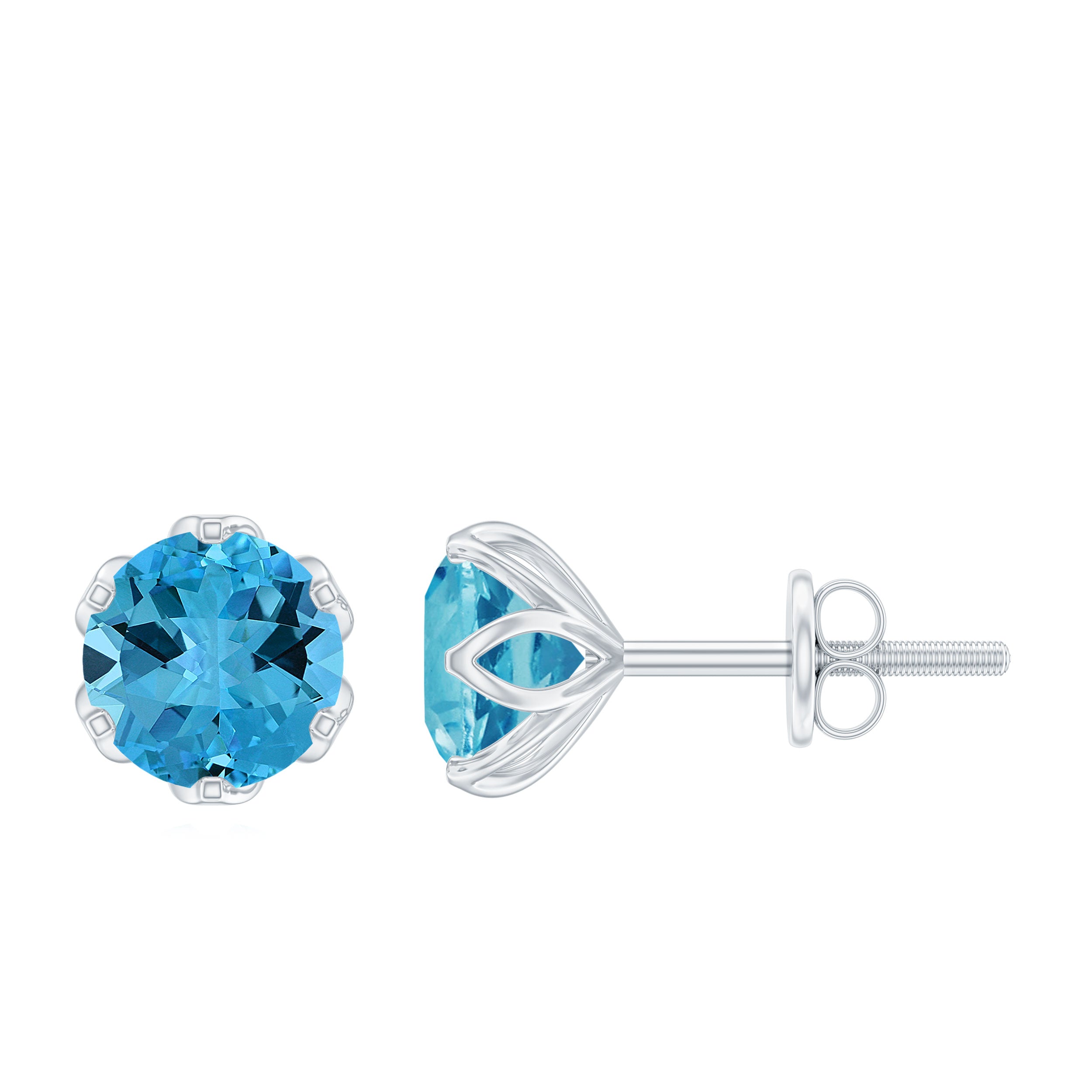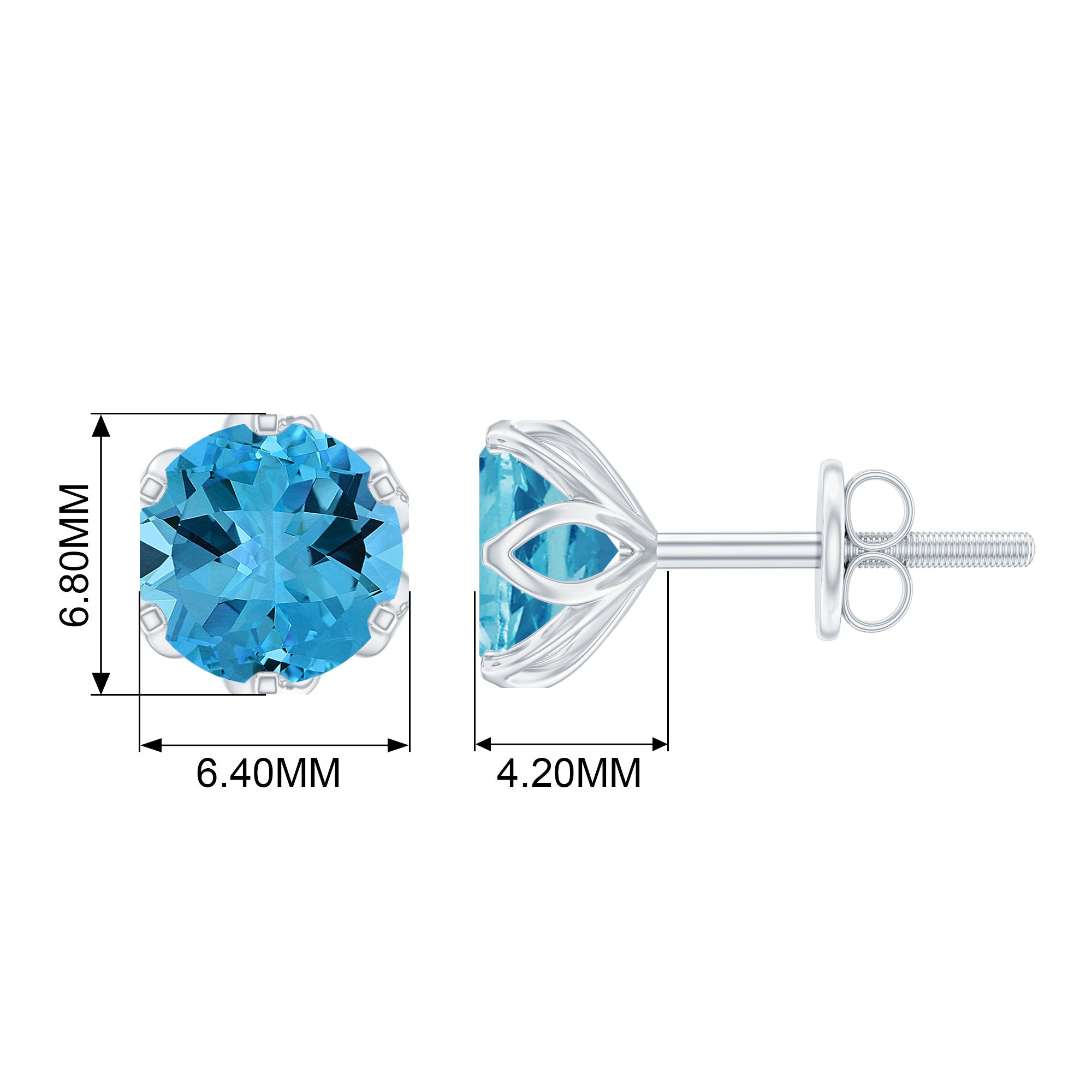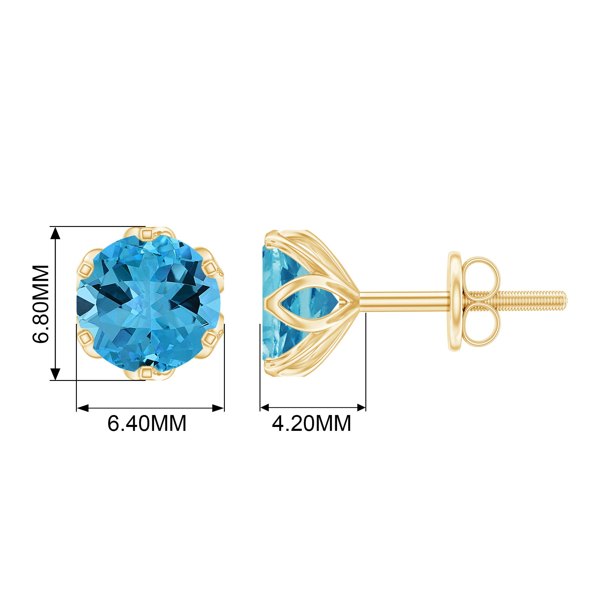 6 MM Swiss Blue Topaz Solitaire Stud Earrings in Lotus Basket Setting