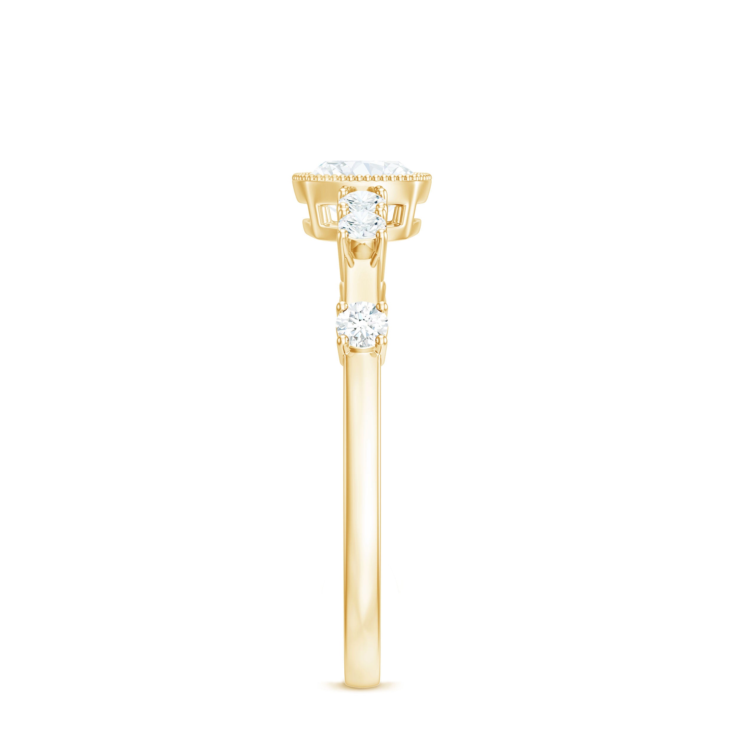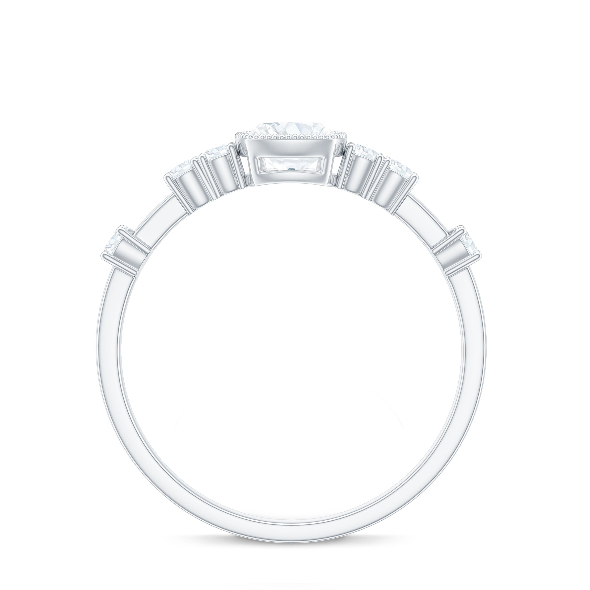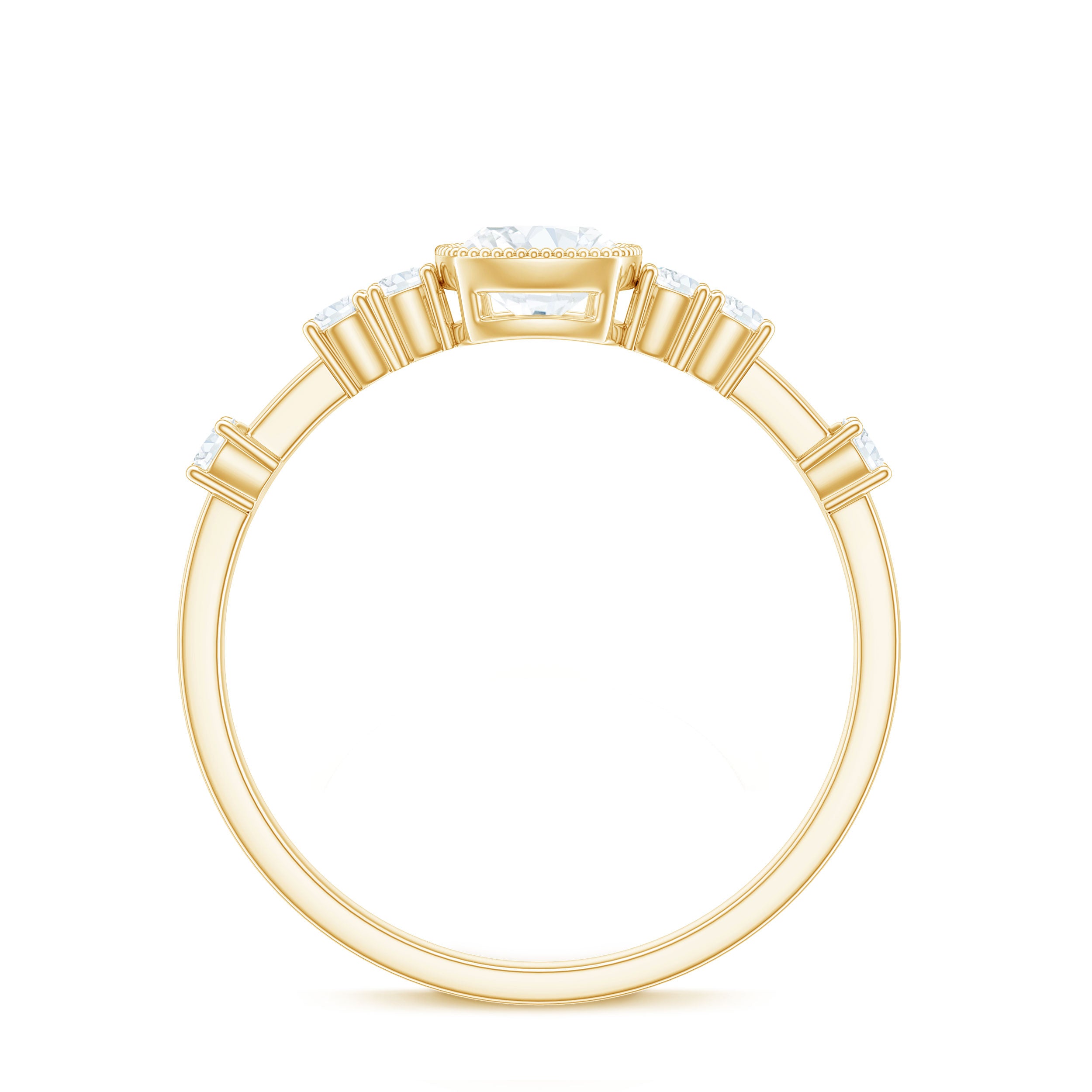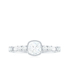 Add some sparkle to your life with this enchanting Solitaire Engagement Ring, featuring 6mm cushion cut Moissanite set at the center in a bezel setting surrounding with a beaded frame. This sparkling Cushion Cut Moissanite Ring has a shank embellished with round shape moissanite on both sides give extra brilliance to the ring. The tiny beaded details surrounds the center gem to add a vintage feel and make the Moissanite Engagement Ring stand out. Moissanites has D color VS1 clarity have same shine and brilliance as natural diamonds at affordable prices. Make your day more special with this outstanding Cushion Cut Engagement Ring, designed to feel confident and comfortable whole day long. This piece is designed by experts, with quality checked moissanites set in a secure settings make this Solitaire Moissanite Ring more valuable and special. This Beaded Engagement Ring is available in various sizes and comes in a beautiful jewelry box with certificates. Flaunt it on any occasion like, party, engagement, wedding, anniversary etc.