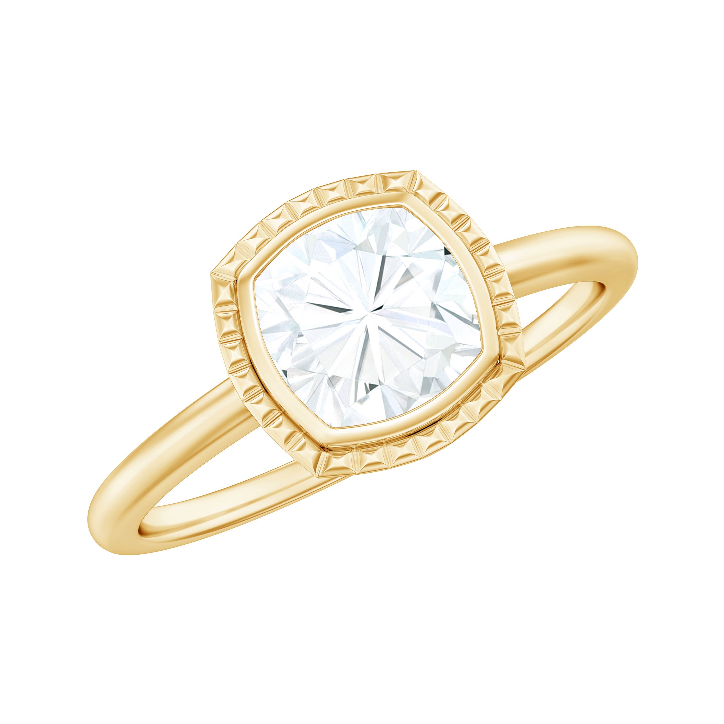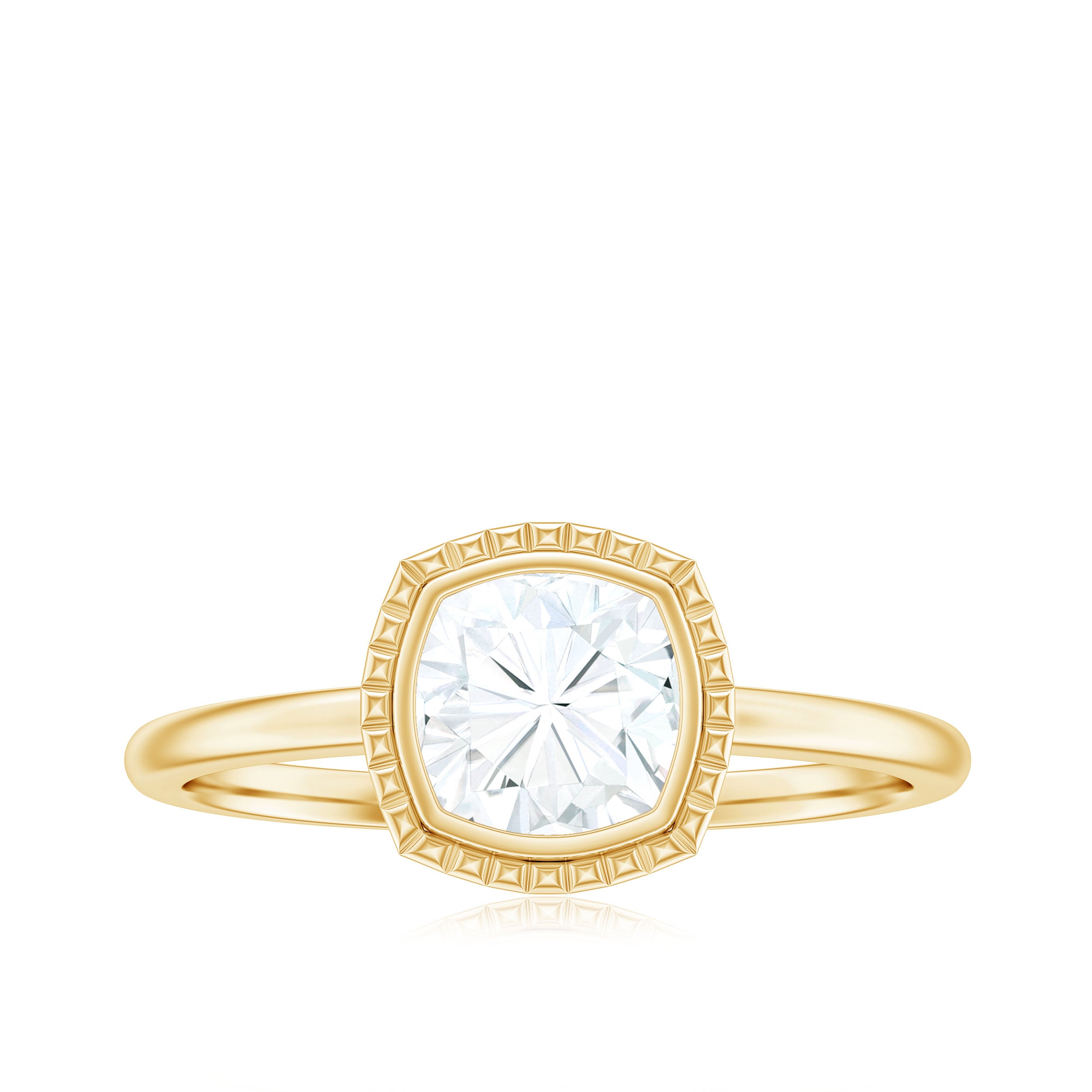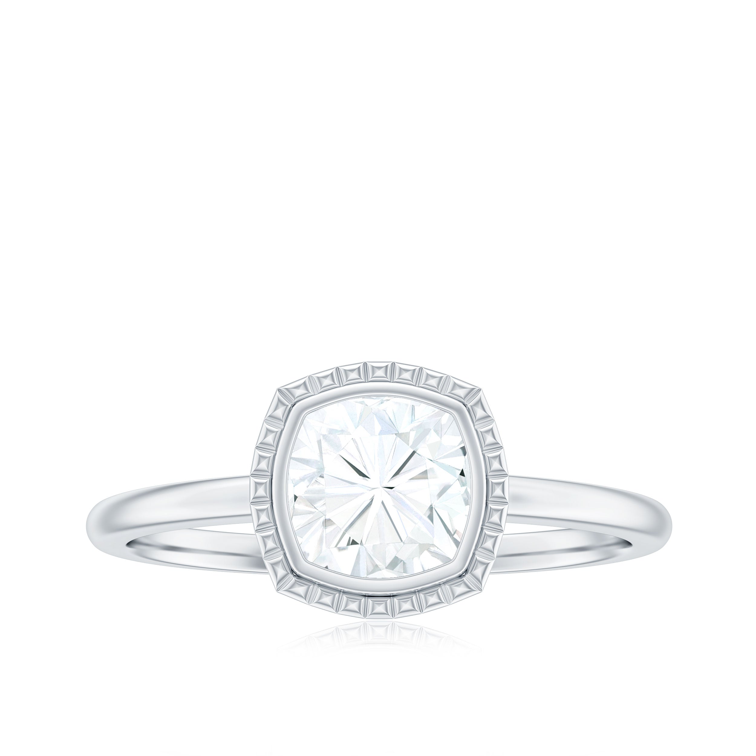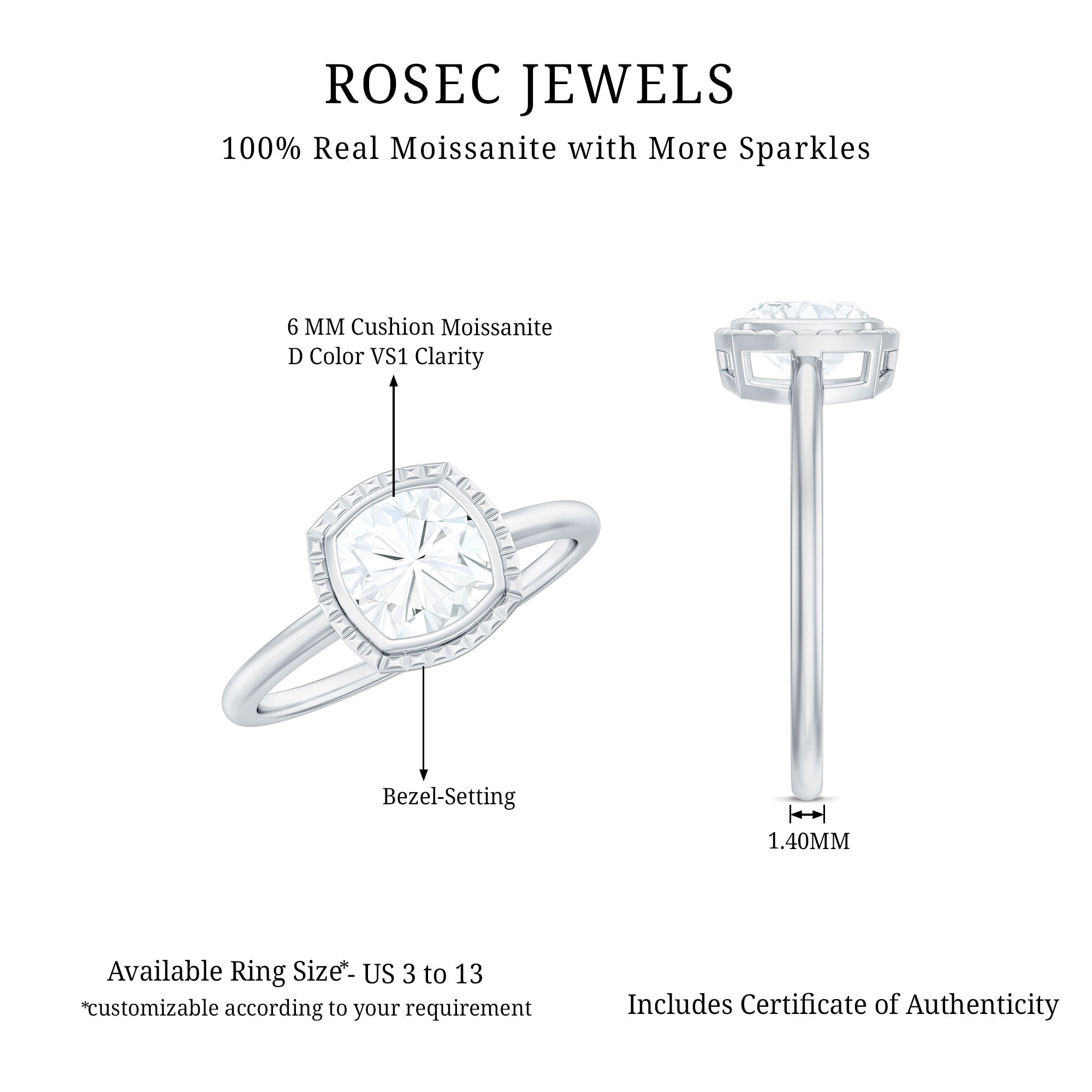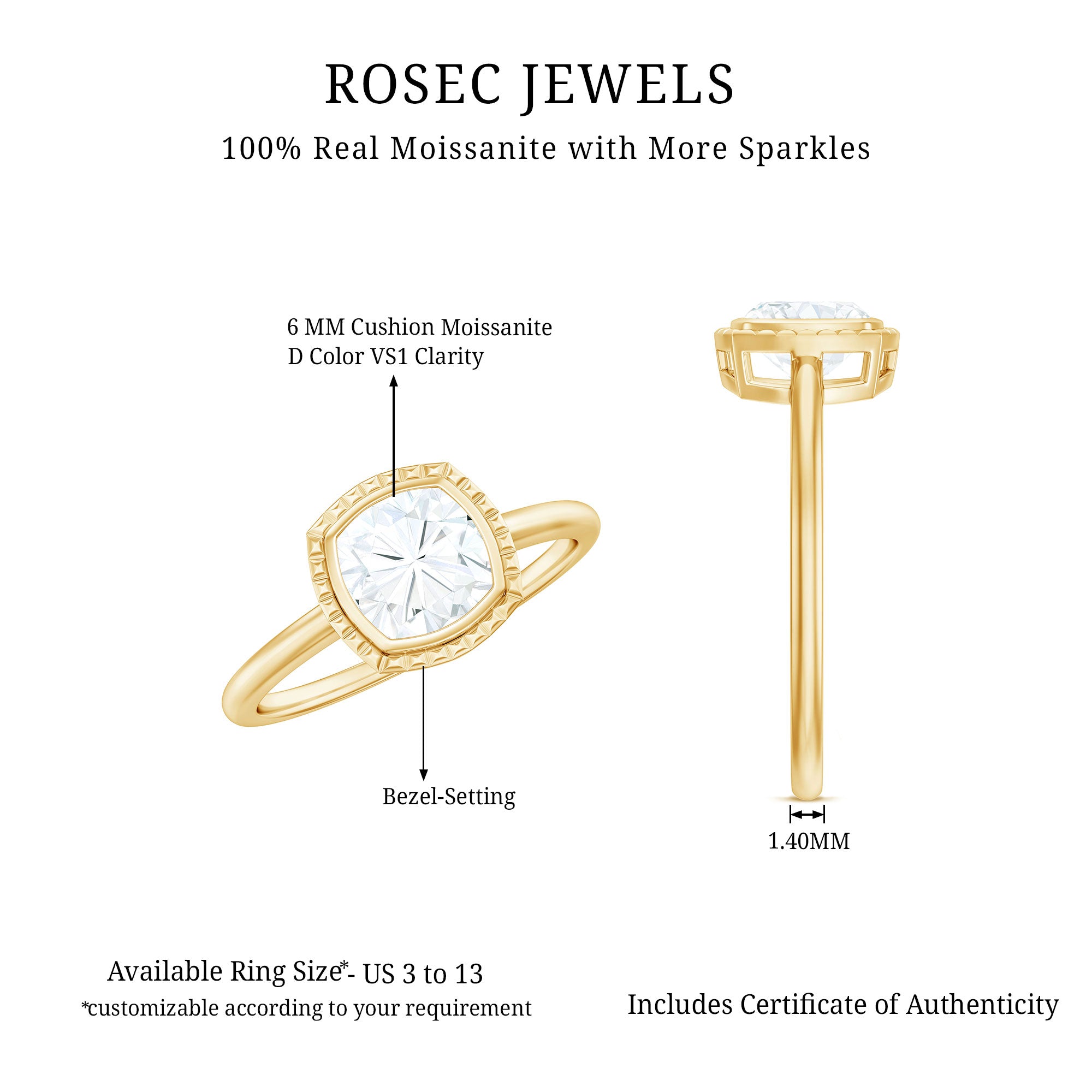 6mm Cushion Cut Moissanite Solitaire Ring in Bezel Setting