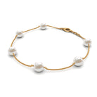 6mm Round Freshwater White Pearl Station Chain Bracelet