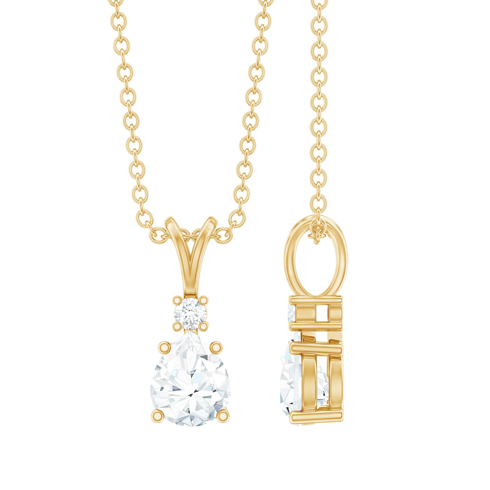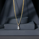 Elevate your casual or formal look with this beautiful Diamond Teardrop Necklace. Made from high-quality metal, this eye-catching piece features a 6X5 MM pear shaped moissanite topped with a dainty round stone. With its EF Color VS Clarity stones and a brilliantly polished finish, this Solitaire Pendant hangs elegantly from a rabbit ear bail that adds to its appeal. Wear this Everyday Necklace with pride and let it shimmer, drawing attention from everyone around you. Win her heart with this gorgeous Lab Grown Diamond Necklace that takes her style to the next level. Redefine classic beauty by showcasing timeless elegance with this pendant, a stunning jewelry piece that exudes sparkle and flair. You can customize this Drop Pendant in available metal color options to reflect your unique style, making it a truly personal and thoughtful piece.