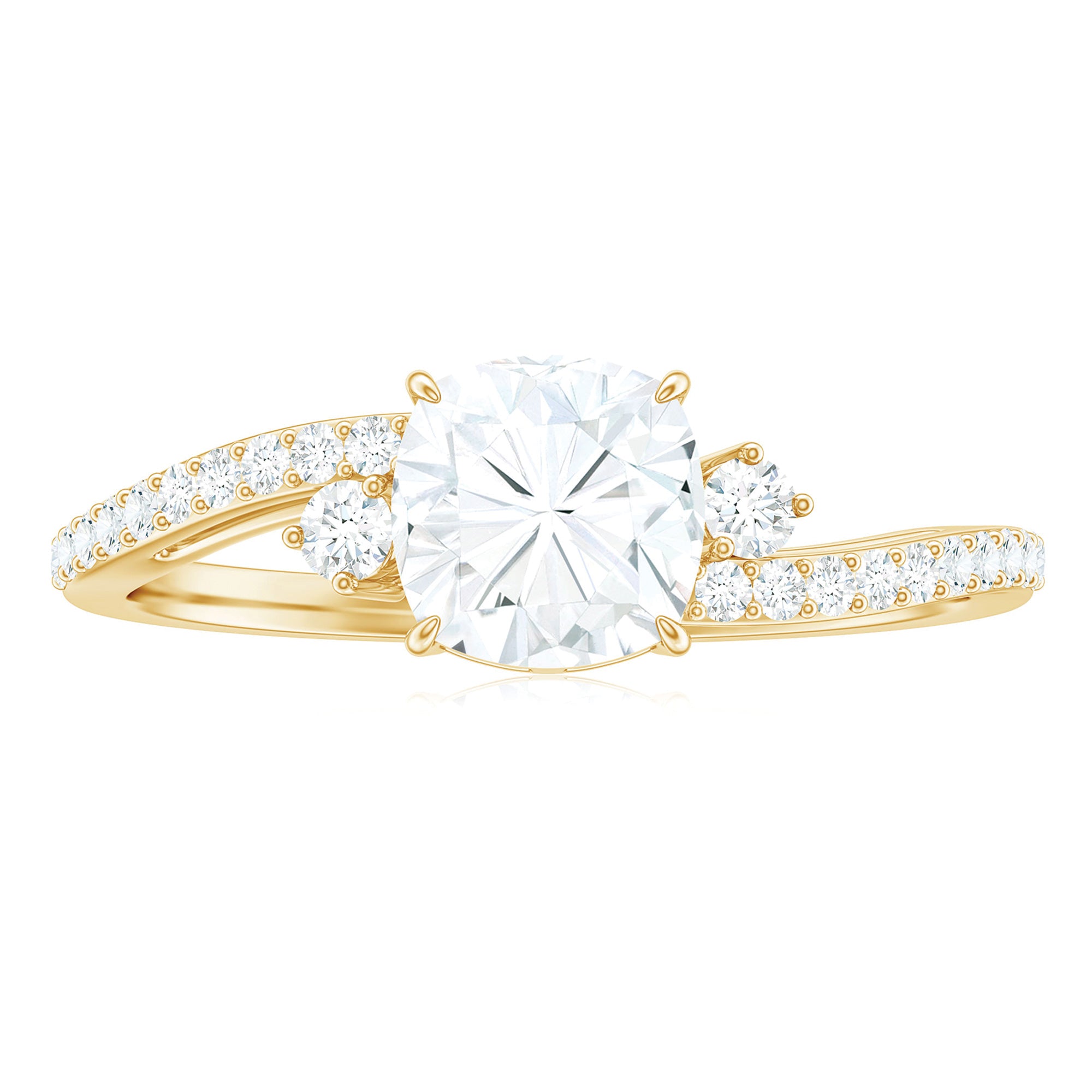 Turn heads with this exquisite solitaire engagement ring—crafted for timeless elegance and modern charm. This stunning solitaire cushion cut engagement ring showcases a dazzling 6x6mm D-VS1 quality Moissanite, expertly set in a sleek prong setting for maximum brilliance. The bypass shank ring design adds a contemporary twist, symbolizing two paths joining as one—perfect for marking your unique love story. With a total carat weight of 2.11 ctw, this moissanite engagement ring is the ideal blend of elegance and presence, offering a luxurious look without compromise. An exceptional choice among womens moissanite ring and modern bypass engagement ring, this masterpiece stands out for its sparkle, craftsmanship, and enduring charm. Known for its exceptional fire and brilliance, moissanite rivals traditional diamonds while offering remarkable value, durability, and ethical sourcing—making it a smart and stunning alternative. If youre searching for a moissanite ring that balances brilliance with contemporary artistry, this is the perfect choice—flawlessly merging tradition with innovation for today’s bride