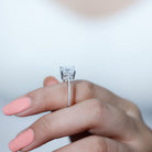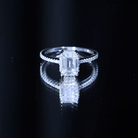 Let her say YES to forever with the brilliance of this timeless Moissanite Solitaire Engagement Ring. Crafted in 14K White Gold Plated Silver, this ring is all about refined glamour and classic beauty. It features a 6X8 MM emerald cut moissanite, expertly set in secure prong setting. Adding a touch of surprise and extra sparkle is the hidden halo of round moissanite stones beneath the center stone, giving a dazzling lift and glow from every angle. The band of this Emerald Cut Engagement Ring is further adorned with pave set side stones, enhancing the overall brilliance and creating a seamless flow of shimmer across the finger. A dream pick for proposal, wedding, or engagement - this piece will remind her of the moment, her forever began.