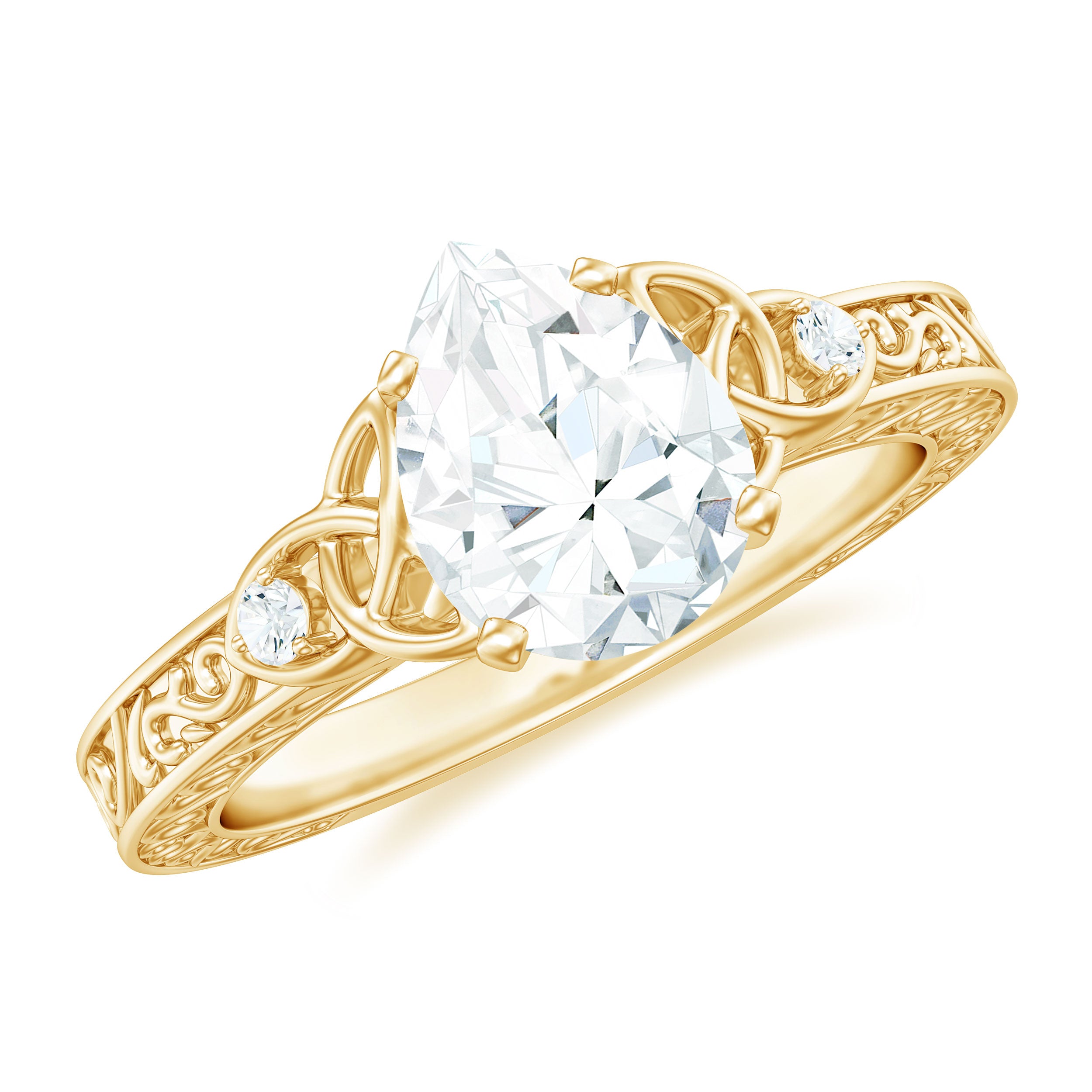 Capture timeless romance with this Teardrop Engagement Ring. Gracefully designed for a love that’s eternal, this pear cut moissanite solitaire engagement ring is a stunning expression of enduring commitment and heartfelt emotion. At the center of this elegant masterpiece lies a dazzling 6X8 MM pear shaped moissanite, delicately nestled in a secure prong setting, capturing light with every angle and symbolizing a journey of clarity and promise. The intricately engraved shank, adorned with traditional Celtic knot motifs, brings in a spiritual touch of eternity, unity, and timeless devotion—making this Celtic knot engagement ring a true embodiment of lasting love. With a target weight of 1.38 CTW, this solitaire teardrop engagement ring is expertly crafted to combine beauty with superior craftsmanship, ensuring high quality standards that shine through in every detail. A perfect choice among engagement rings for women, it merges bold sophistication with symbolic elegance, making it an ideal token for your once-in-a-lifetime proposal. The graceful teardrop silhouette not only adds a regal charm but also speaks of vulnerability, strength, and emotion—hallmarks of a deeply connected bond. Whether youre drawn to the vintage allure of a teardrop solitaire ring or the contemporary elegance of moissanite rings for women, this ring transcends trends to become a legacy of your love story. Let this pear engagement ring sparkle as a radiant reminder of your heartfelt promise, capturing every beat of devotion in a design that’s as rare and beautiful as the connection it celebrates.
