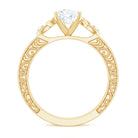 6X8 MM Certified Moissanite Teardrop Solitaire Engagement Ring with Engraved Shank
