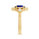 Graceful and eye-catching, this elegant Oblong Engagement Ring features a 2 carat oval-cut Lab Created Blue Sapphire held in a secure prong setting. The gently twisting styled metal with round white diamond accent stones adds more sparkle to the design. This Vintage Looking Engagement Ring is a must have jewelry for your special day to make it memorable. This Oval Cut Solitaire Ring is available in various sizes to choose from. Having a vintage-inspired elegance, this Lab Sapphire Ring features a dazzling companion for years to come at any special event you attend. Combining simplicity with modern grace, this Created Sapphire Engagement Ring maximizes sparkle and appears precision cut to maximize brilliance and fire. This special Lab Blue Sapphire is associated with the September Birthstone, and it also would not let you go unnoticed, with a great way to add a pop of color while complementing your outfits. Having AAAA Quality of Lab Sapphire and HI-SI Quality Diamonds, arrives in a premium jewelry box that comes with an authentication certificate.