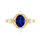 6X8 mm Oval Cut Lab Grown Blue Sapphire Oblong Engagement Ring with Diamond