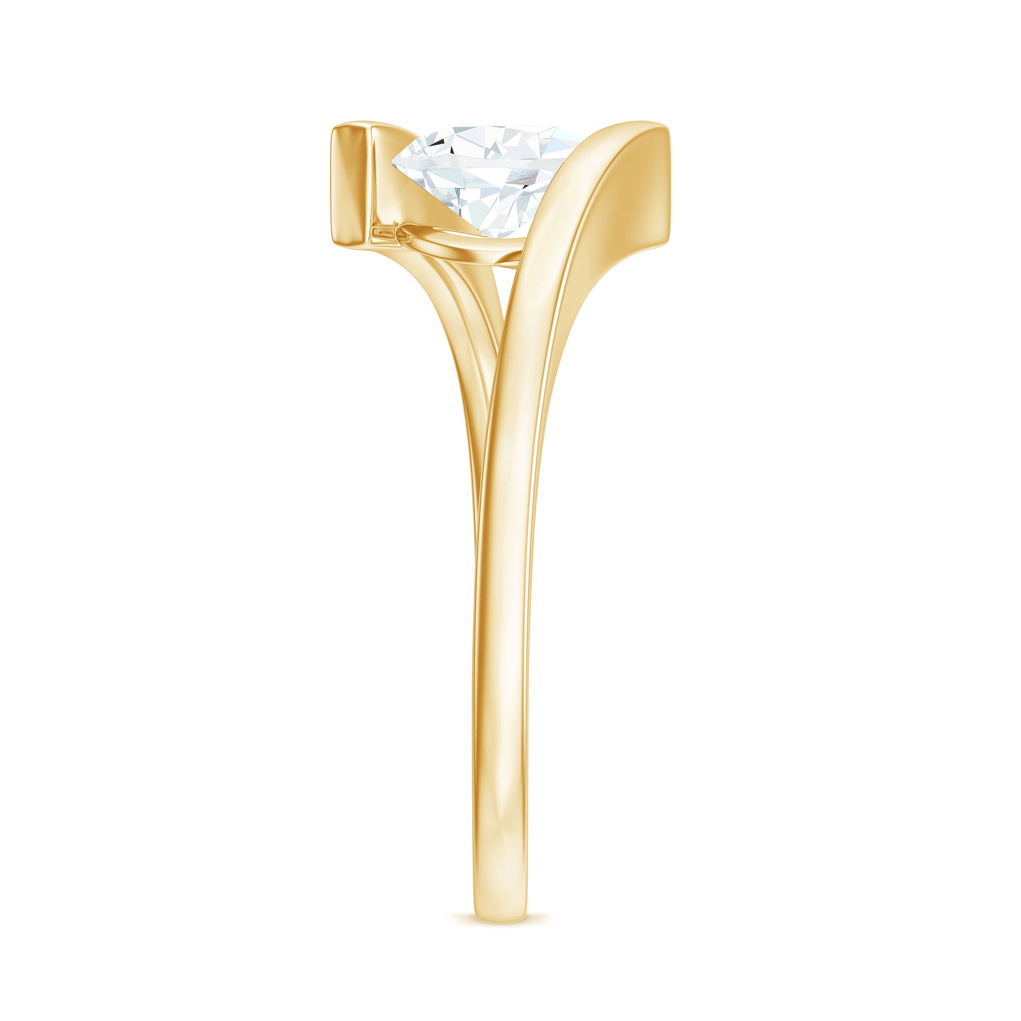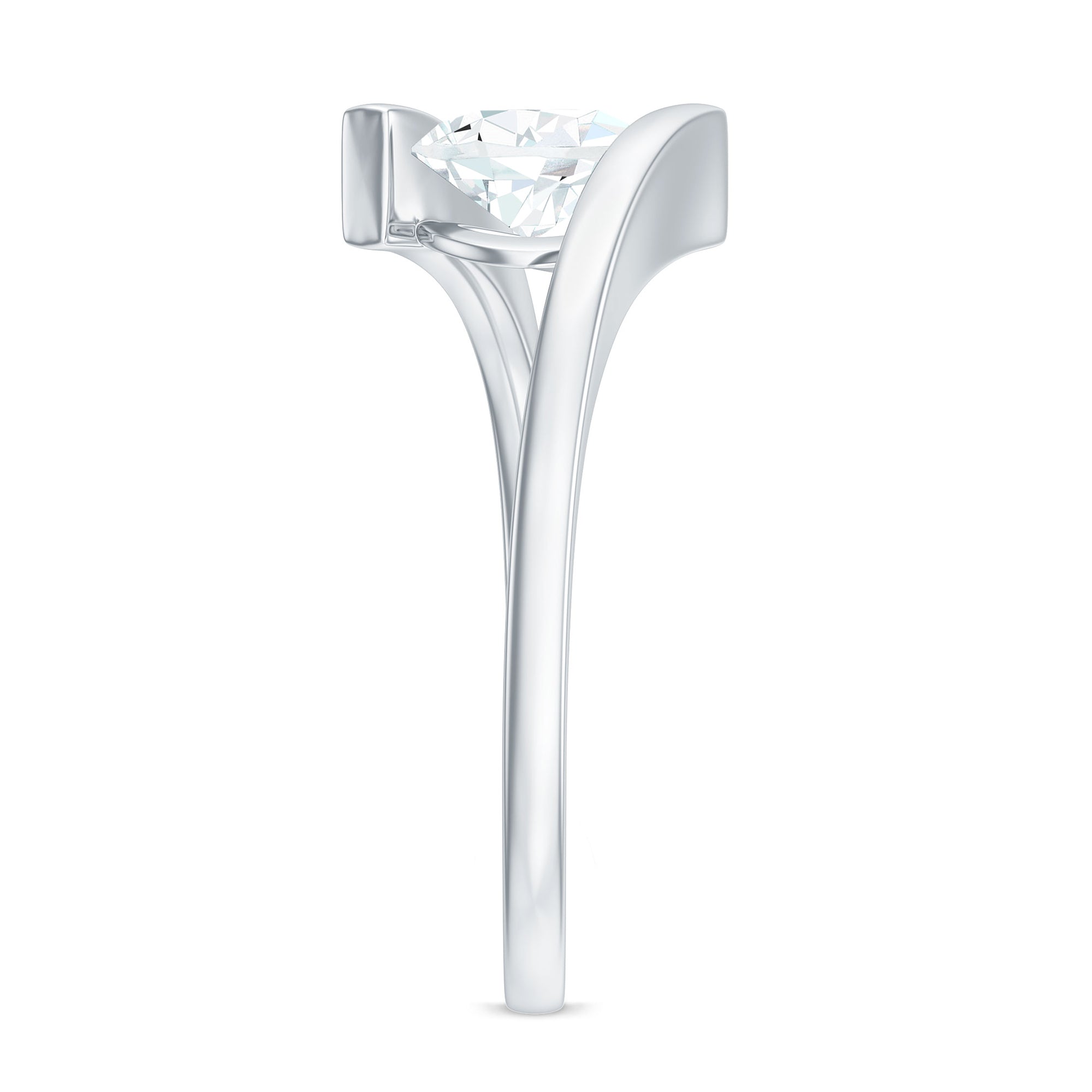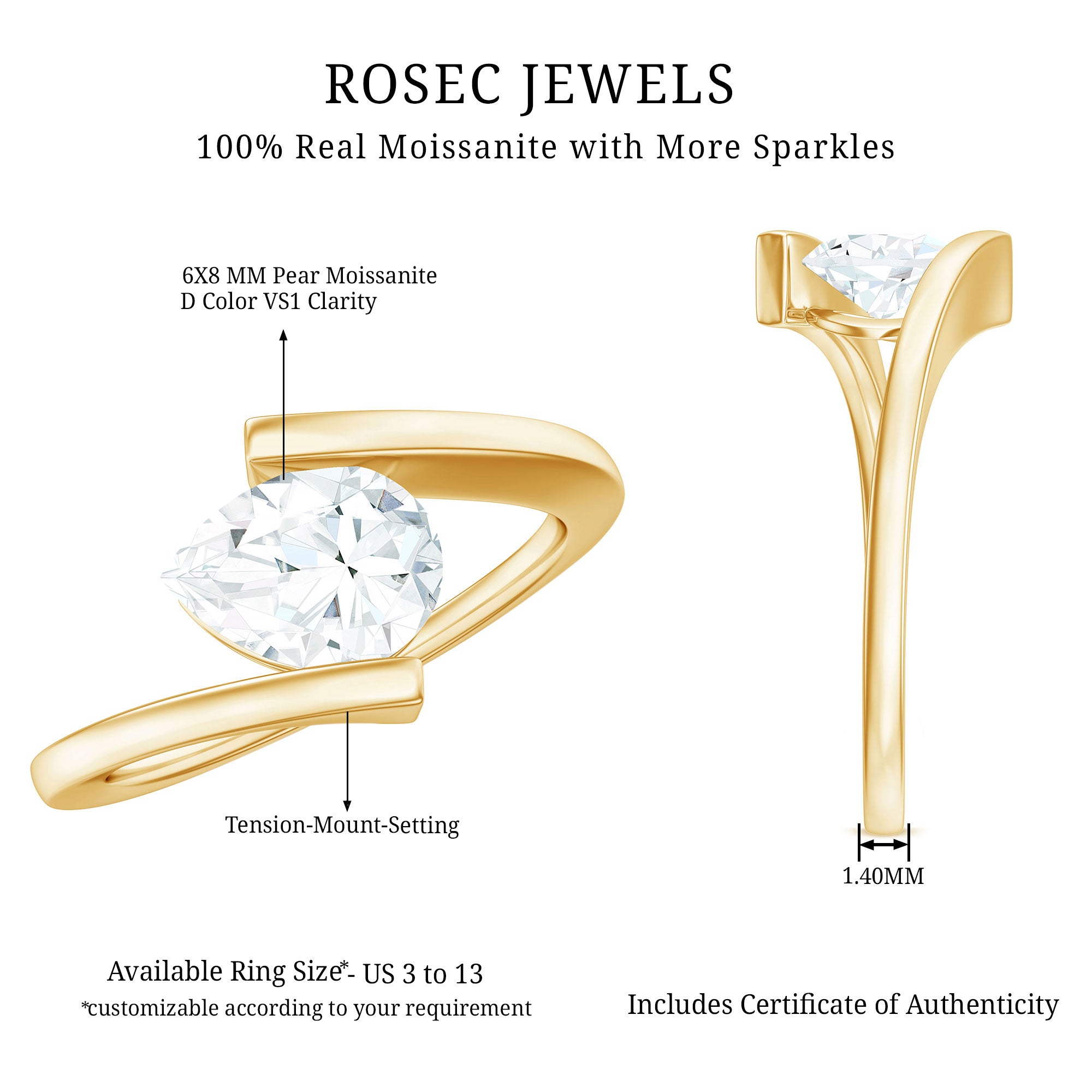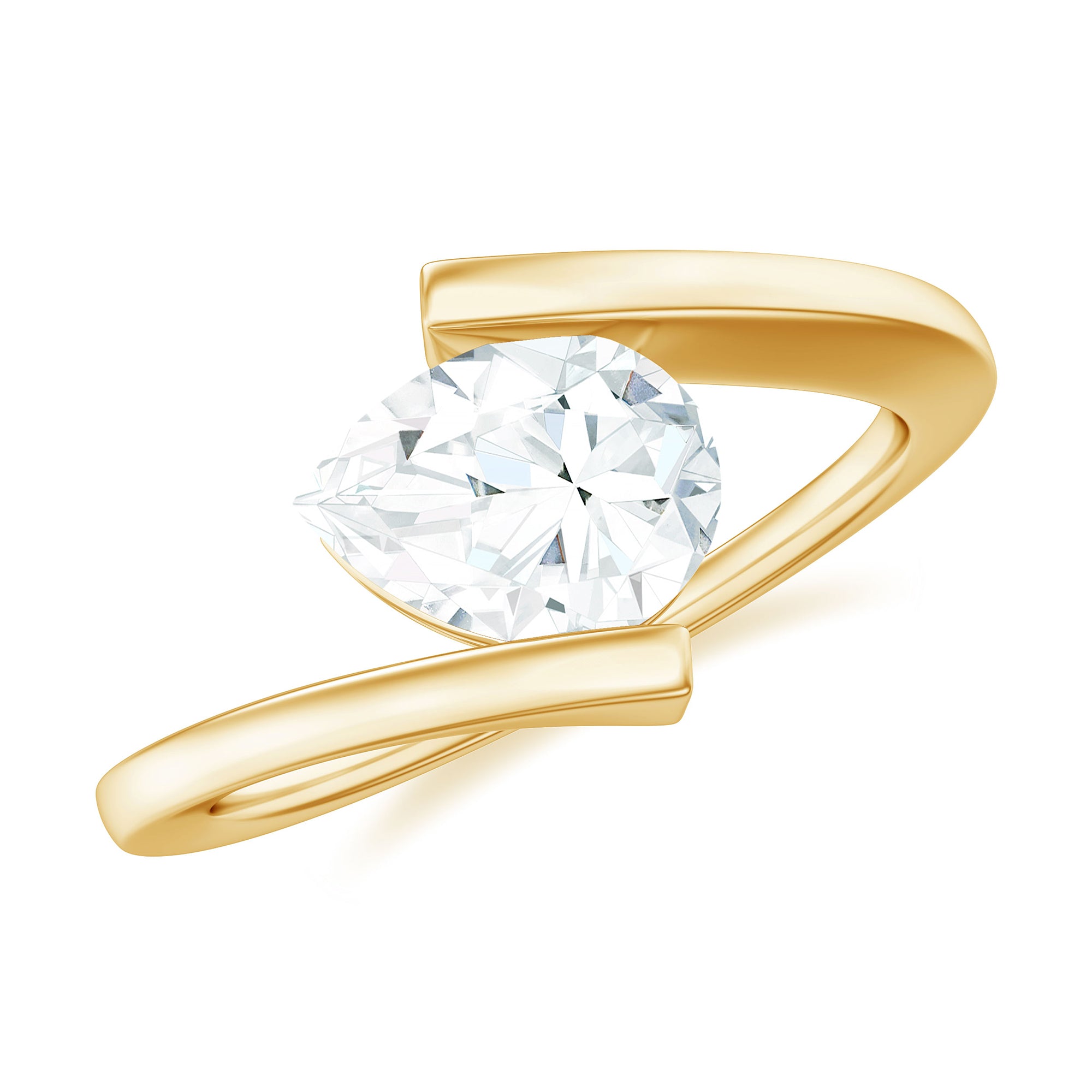 This gorgeous Bypass Engagement Ring elegantly merges timeless design with a growing commitment. Express your deepening affection with this Moissanite Solitaire Ring, which boasts a simple yet enduring design, beautifully enhanced by a distinctive bypass shank that represents the wonderful journey of two souls uniting. This charming Big Solitaire Engagement Ring features a 6X8 MM Pear Shaped Moissanite set in a Tension Mount Setting in a tilted manner. Highlighting the clarity and brilliant cut of a D-VS1 Quality Moissanite, it truly sparkles with breathtaking beauty, making it perfect for an unconventional romance. Celebrate your commitment with this Moissanite Bypass Ring, whose graceful design captures attention while maintaining a subtle and enchanting glow. This exquisite Womens Moissanite Ring will elevate any ensemble, adding a touch of refined shine and elegance. Furthermore, it is offered in a variety of metal colors and purity options, allowing you to select what best fits your style.