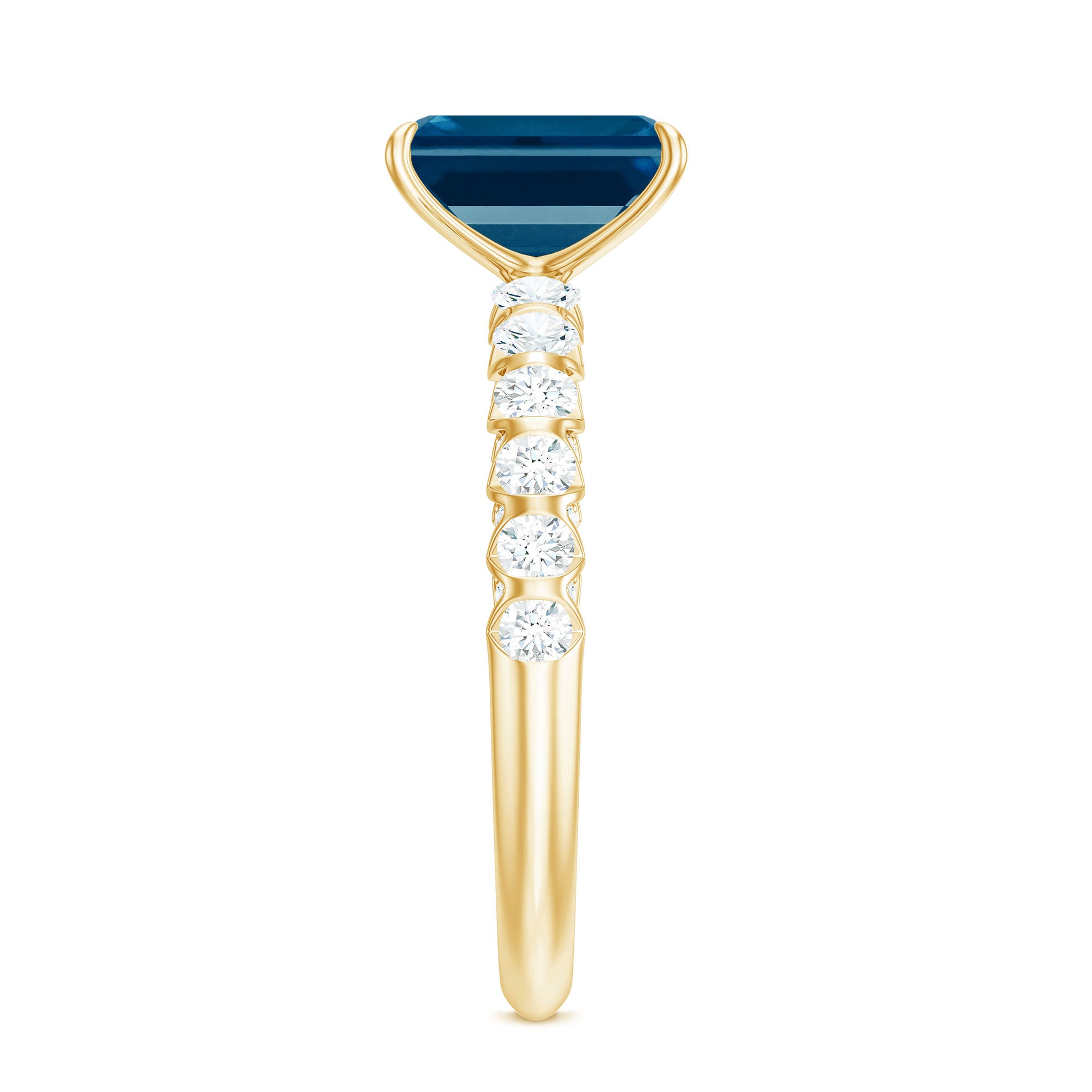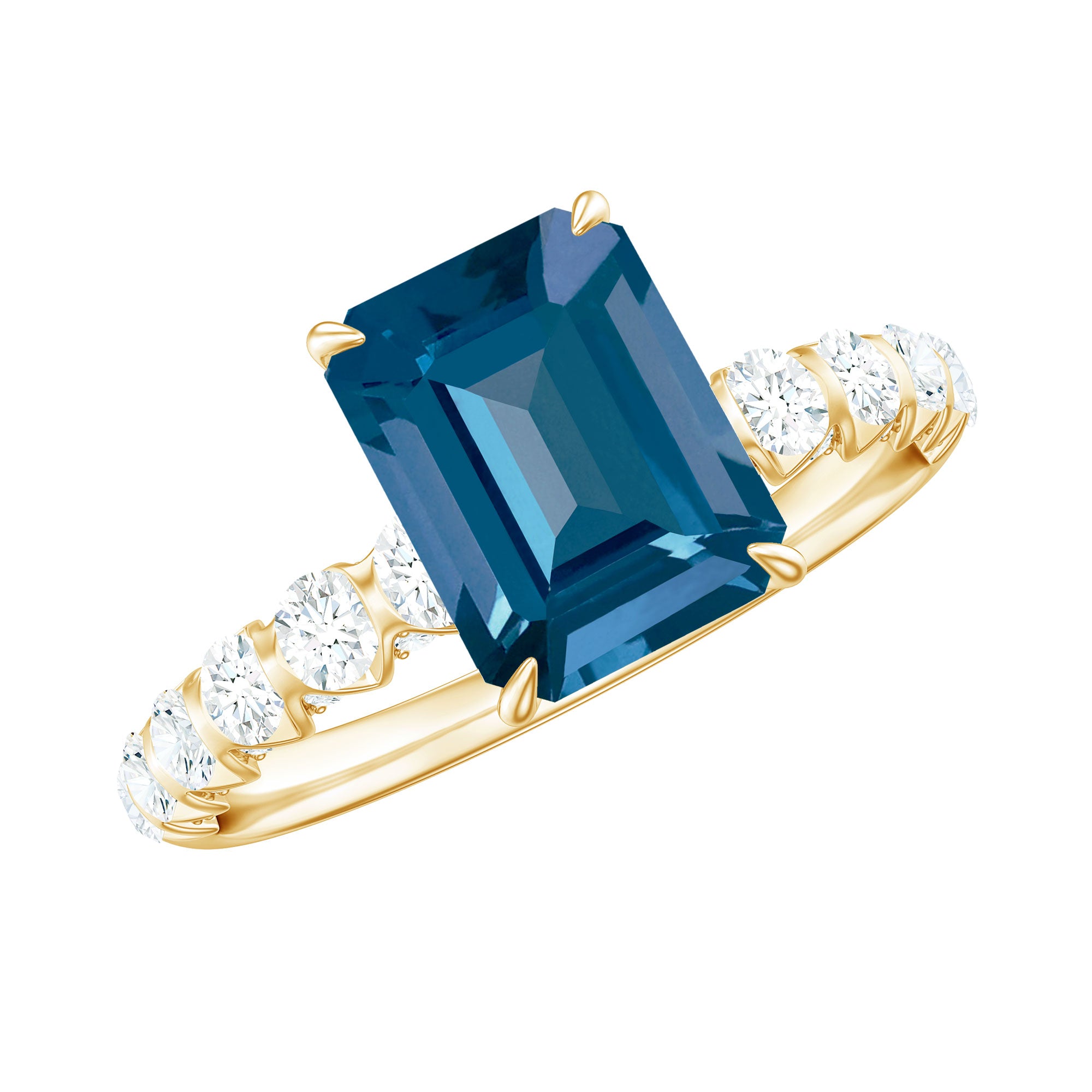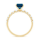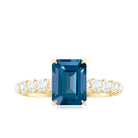 6X8mm Emerald Cut London Blue Topaz Engagement Ring with Diamond Side Stones