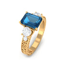 6X8mm Emerald Cut London Blue Topaz Statement Ring with Engraved Shank