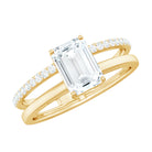 6X8mm Emerald Cut Moissanite Double Band Engagement Ring