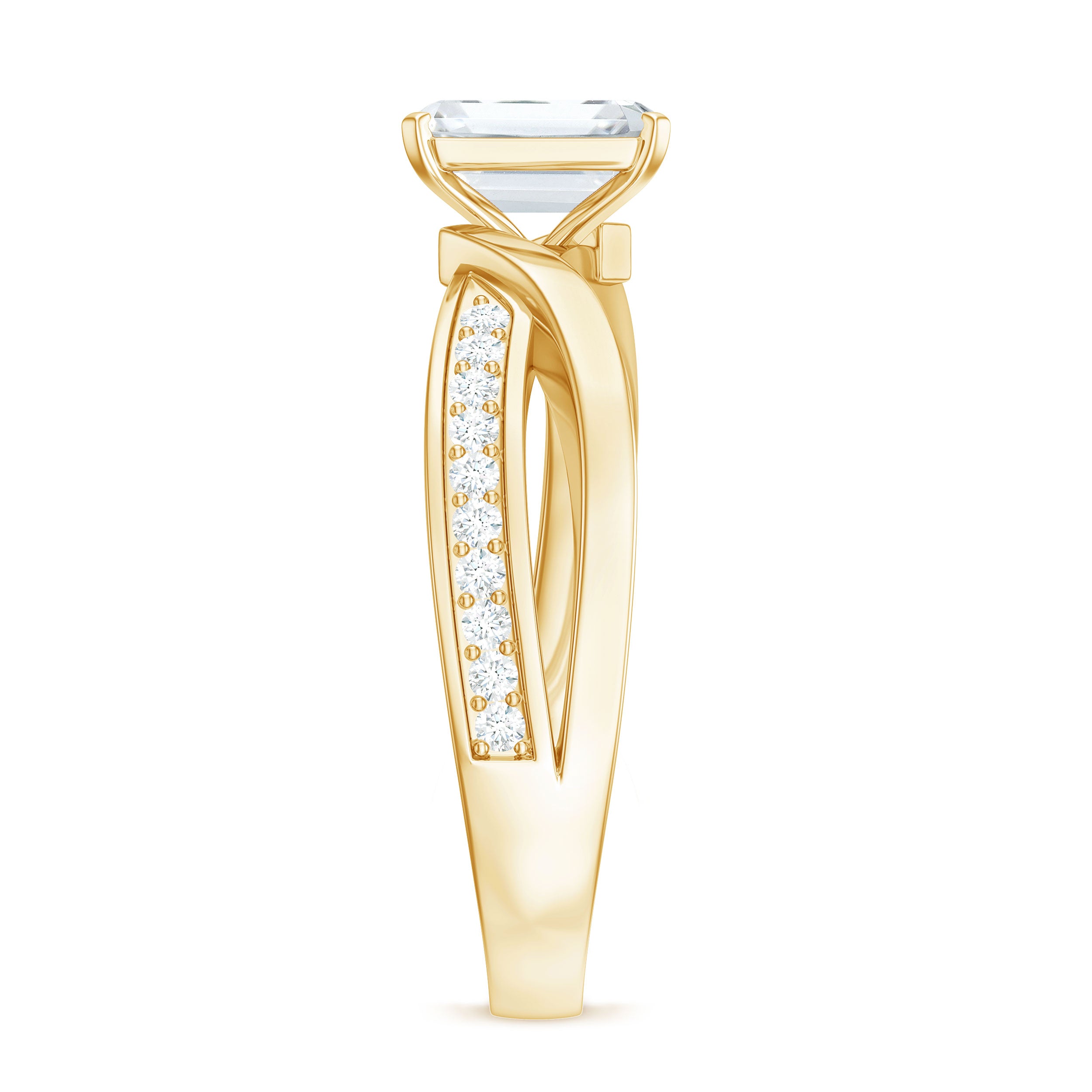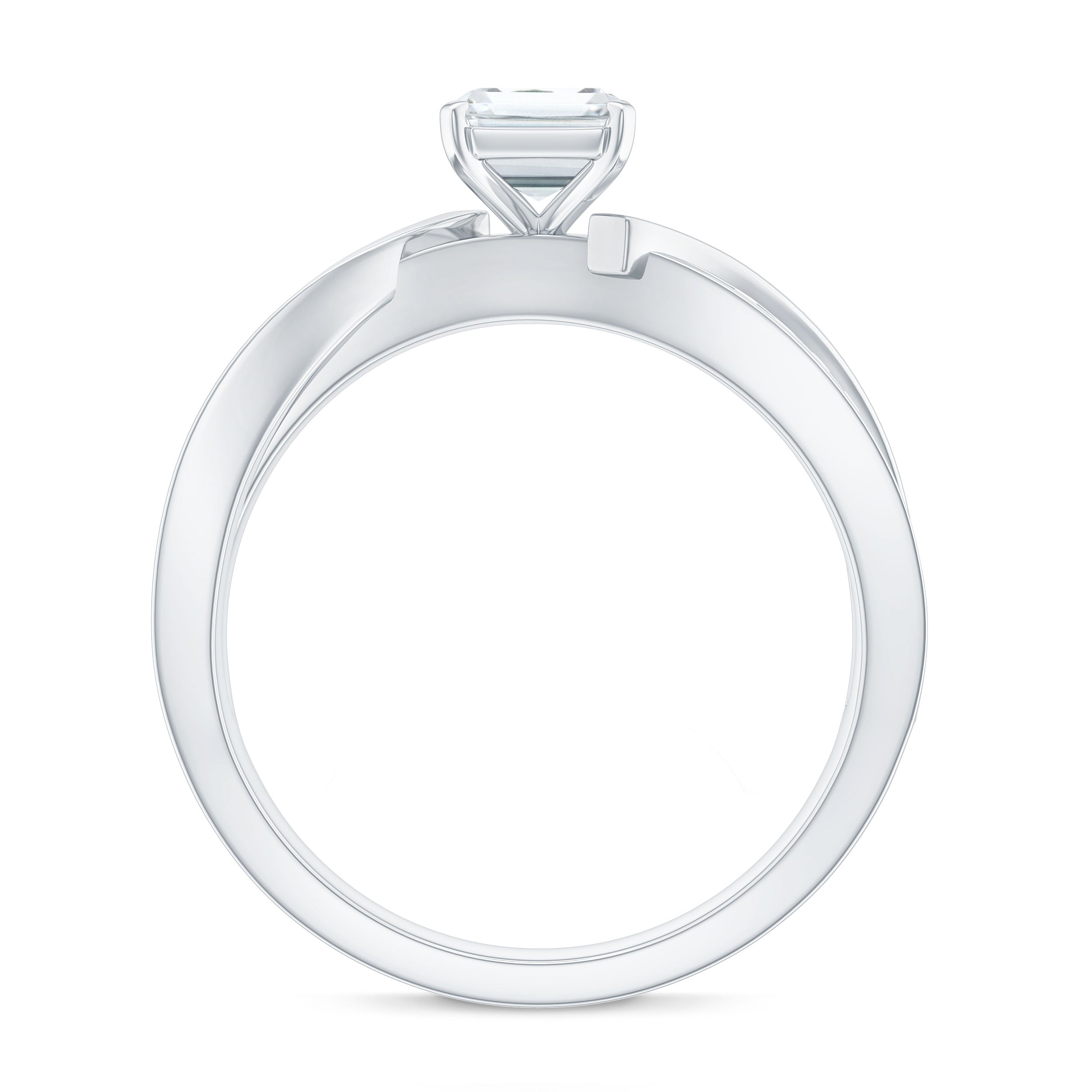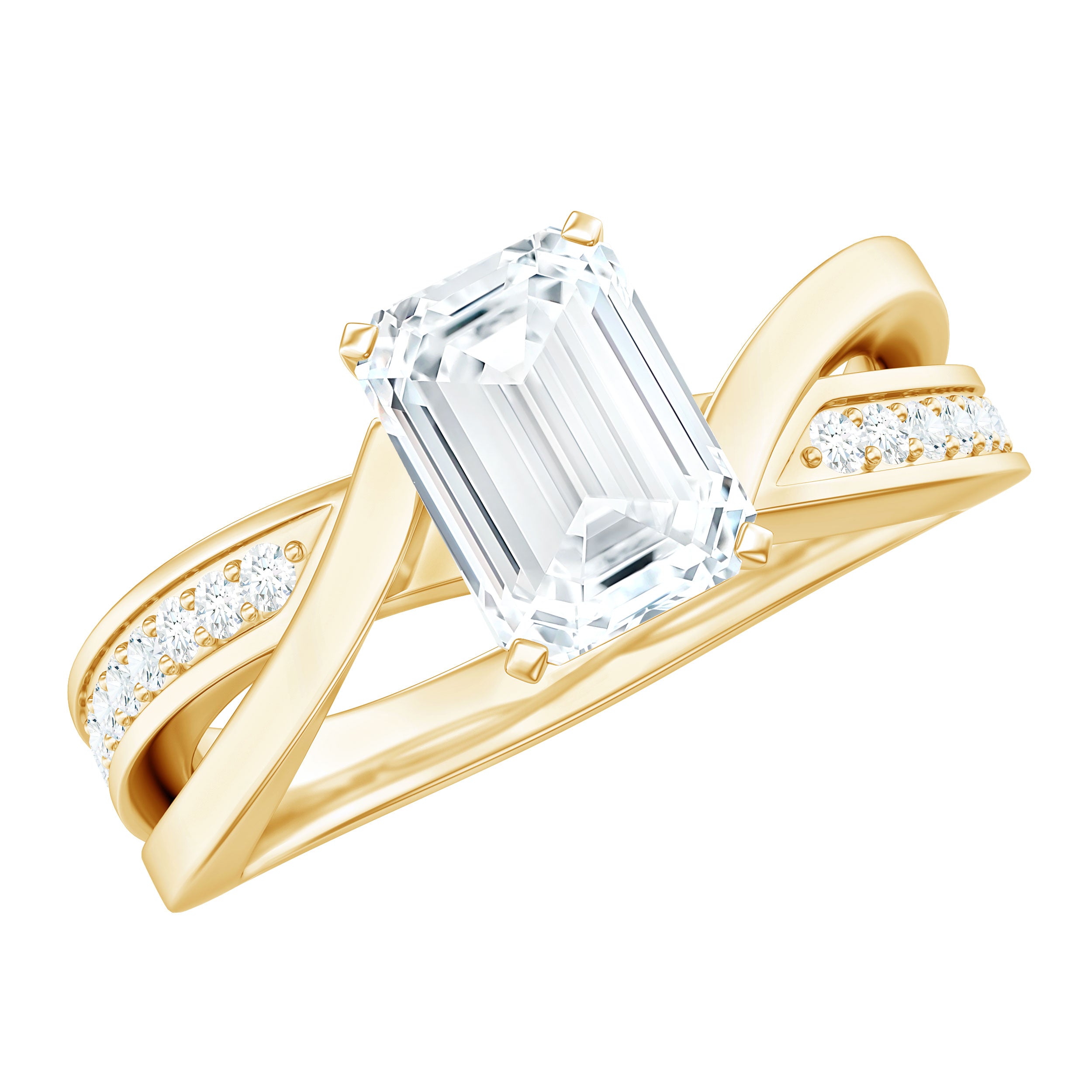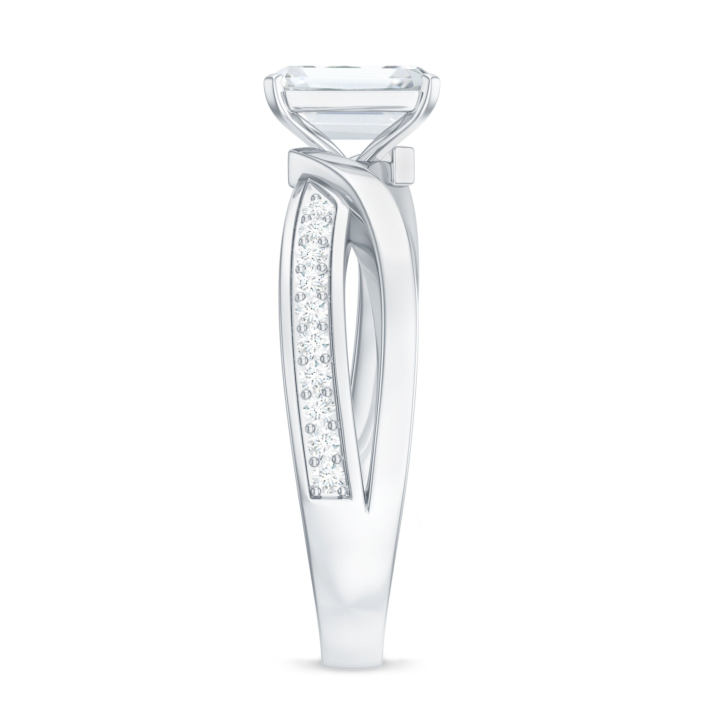 Give her a ring she will love forever! This Infinity Engagement Ring is the one she will admire her whole life, featuring 6X8 mm emerald cut Moissanite set at the center in a prong setting with tiny round Moissanites set on the criss cross style shank in a bypass pattern. The centre stone is set in an elevation from the shank to grab more light and eyes in the crowd. Expertly handcrafted, this piece features a twisted solitaire engagement ring design symbolizing a robust connection. 2 carat moissanite ring with D color VS1 clarity would beautifully accentuate your elegance. Available in sizes 3 to 13 (US standard) and presented in a charming, ready-to-gift box, it is an effortless choice for proposals, anniversaries, or unforgettable moments. A shimmer of promise, a touch of grace - this Emerald Cut Moissanite Solitaire Ring is more than jewelry; its a symbol of the bond youll cherish forever.