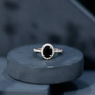 6X8MM Oval Black Onyx and Diamond Halo Engagement Ring