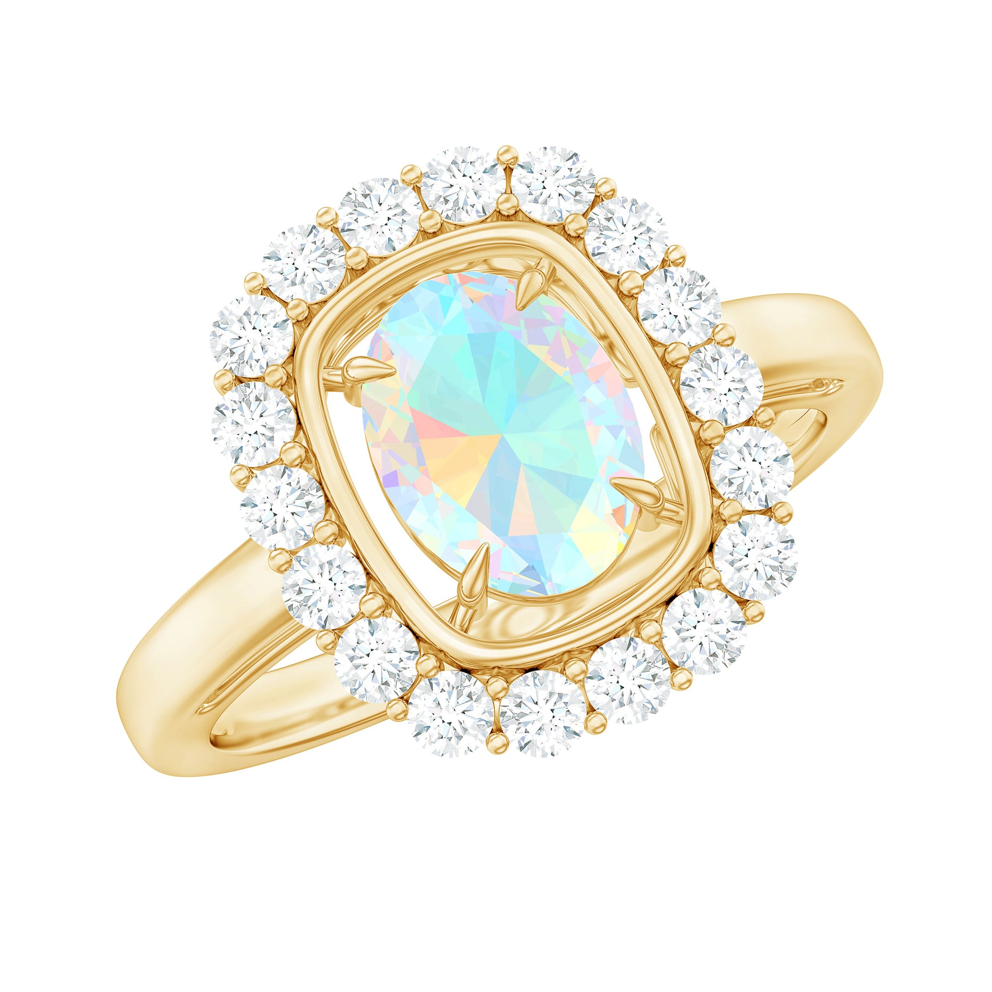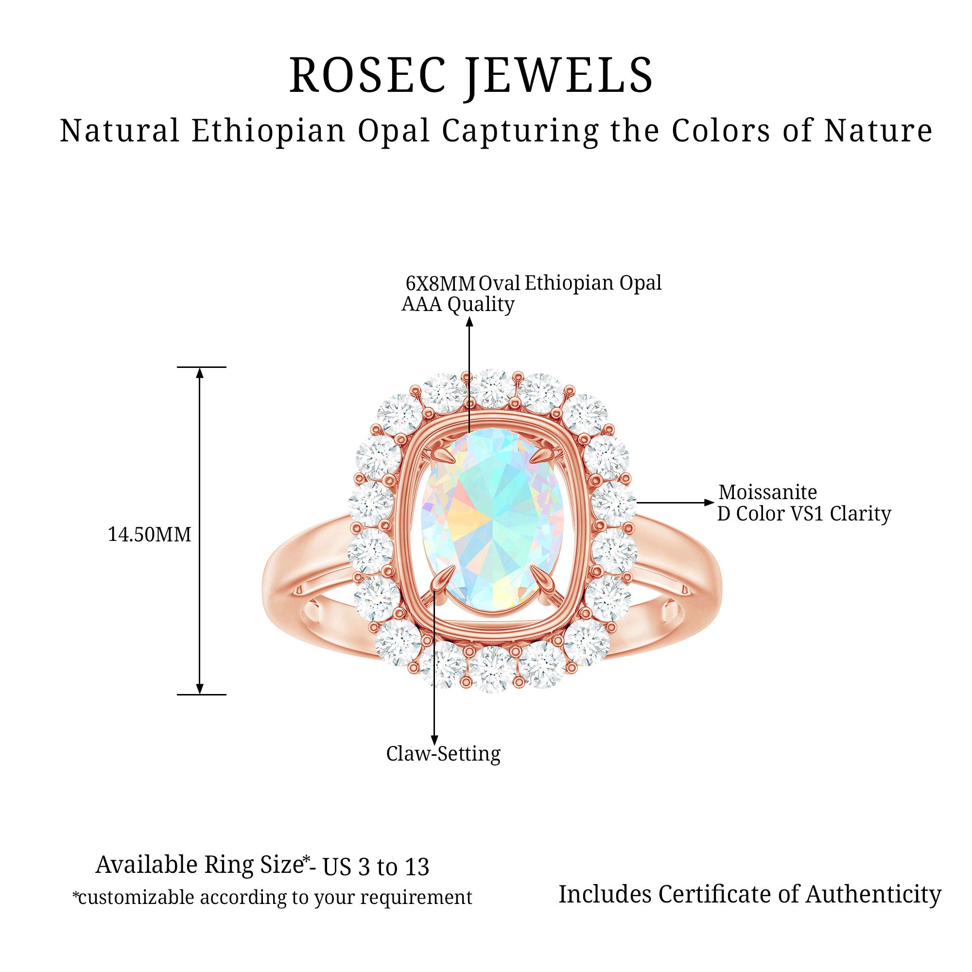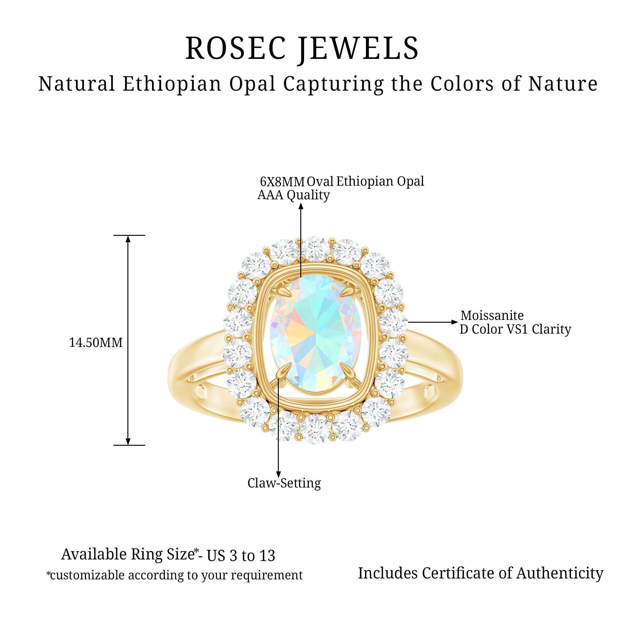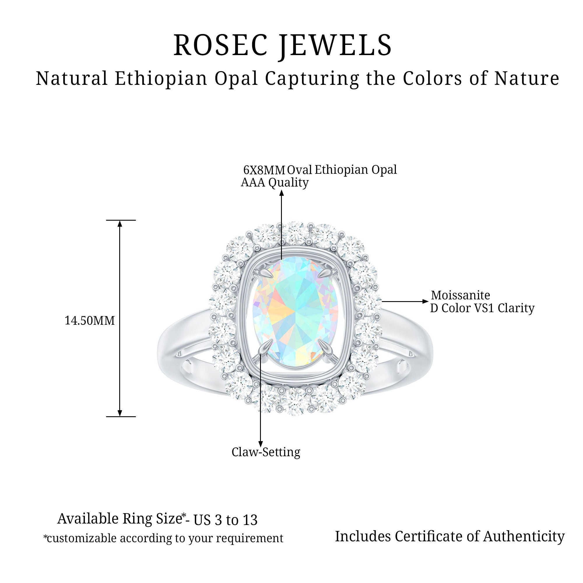 6x8mm Oval Cut Ethiopian Opal Halo Engagement Ring with Moissanite