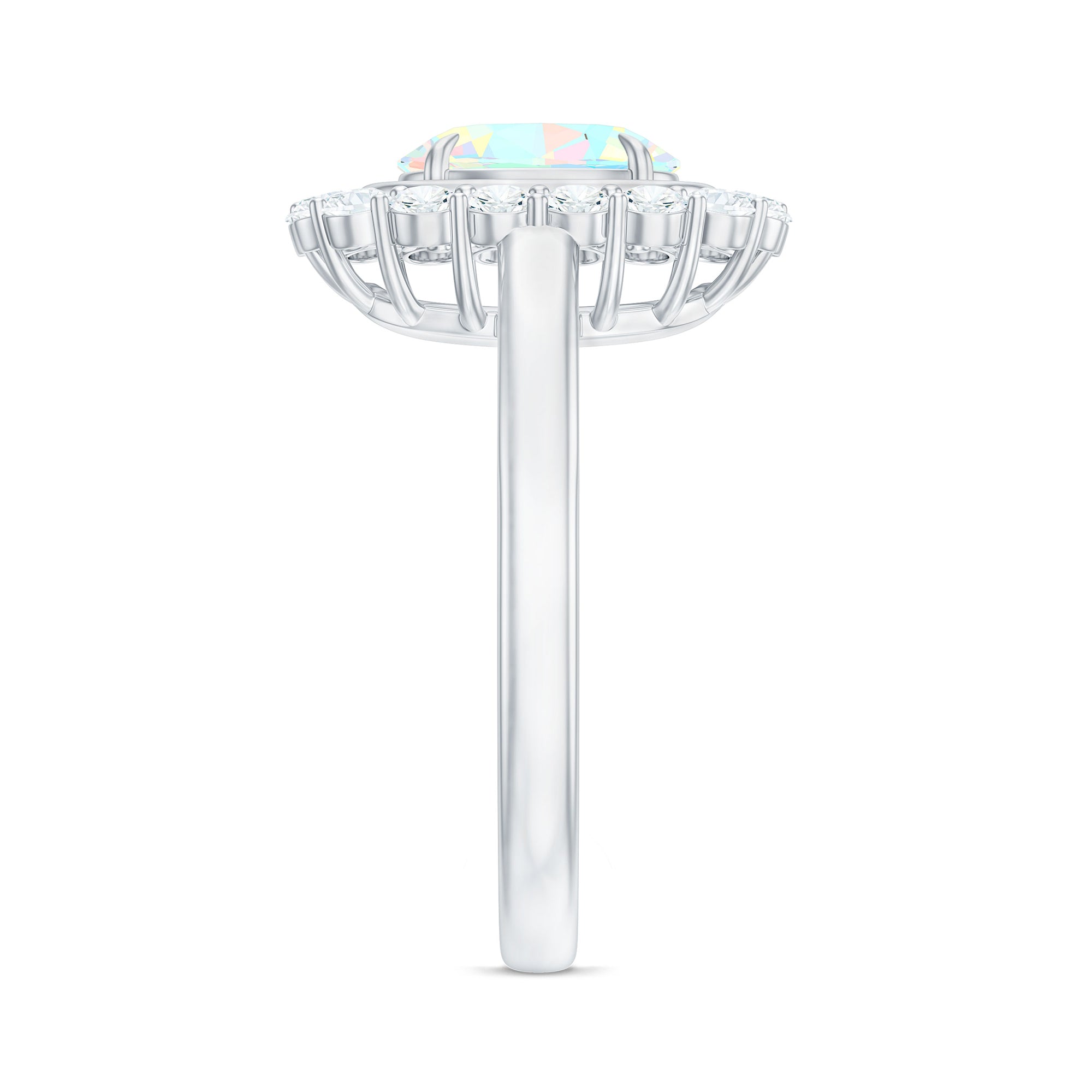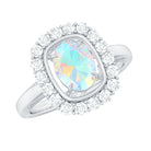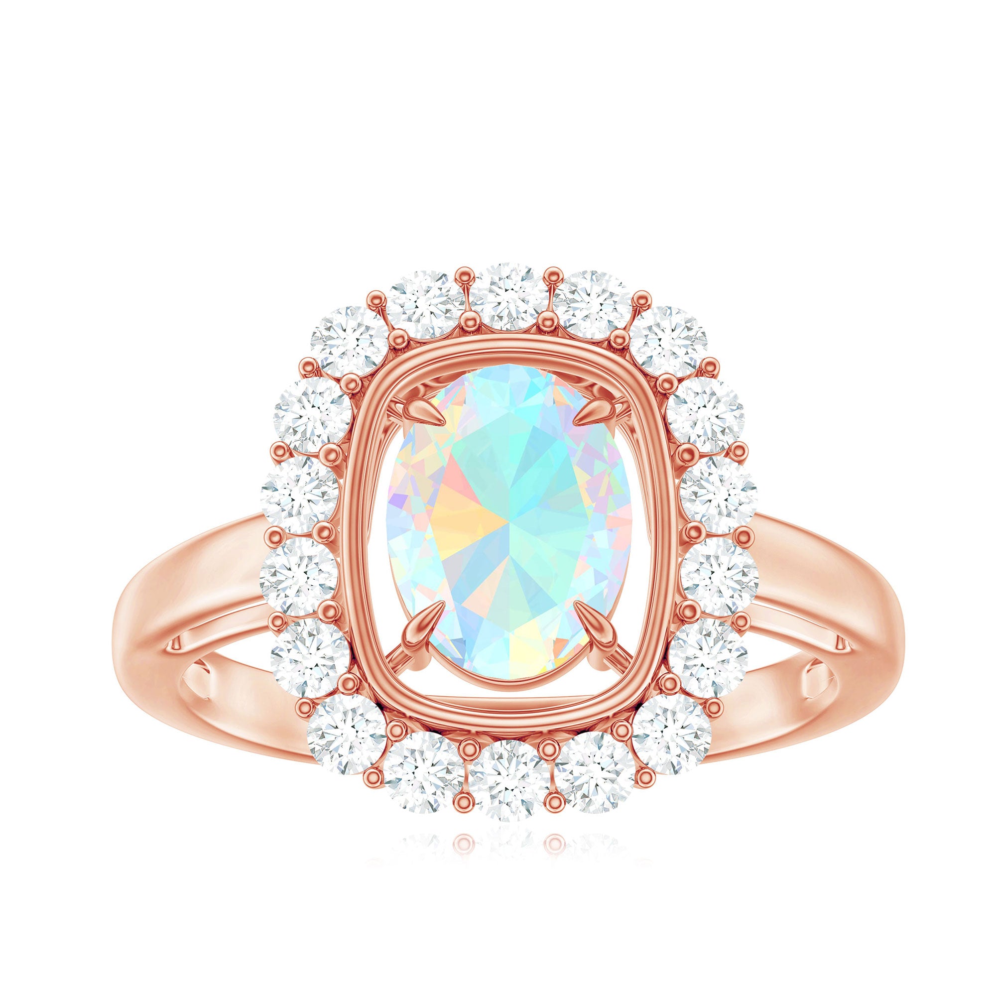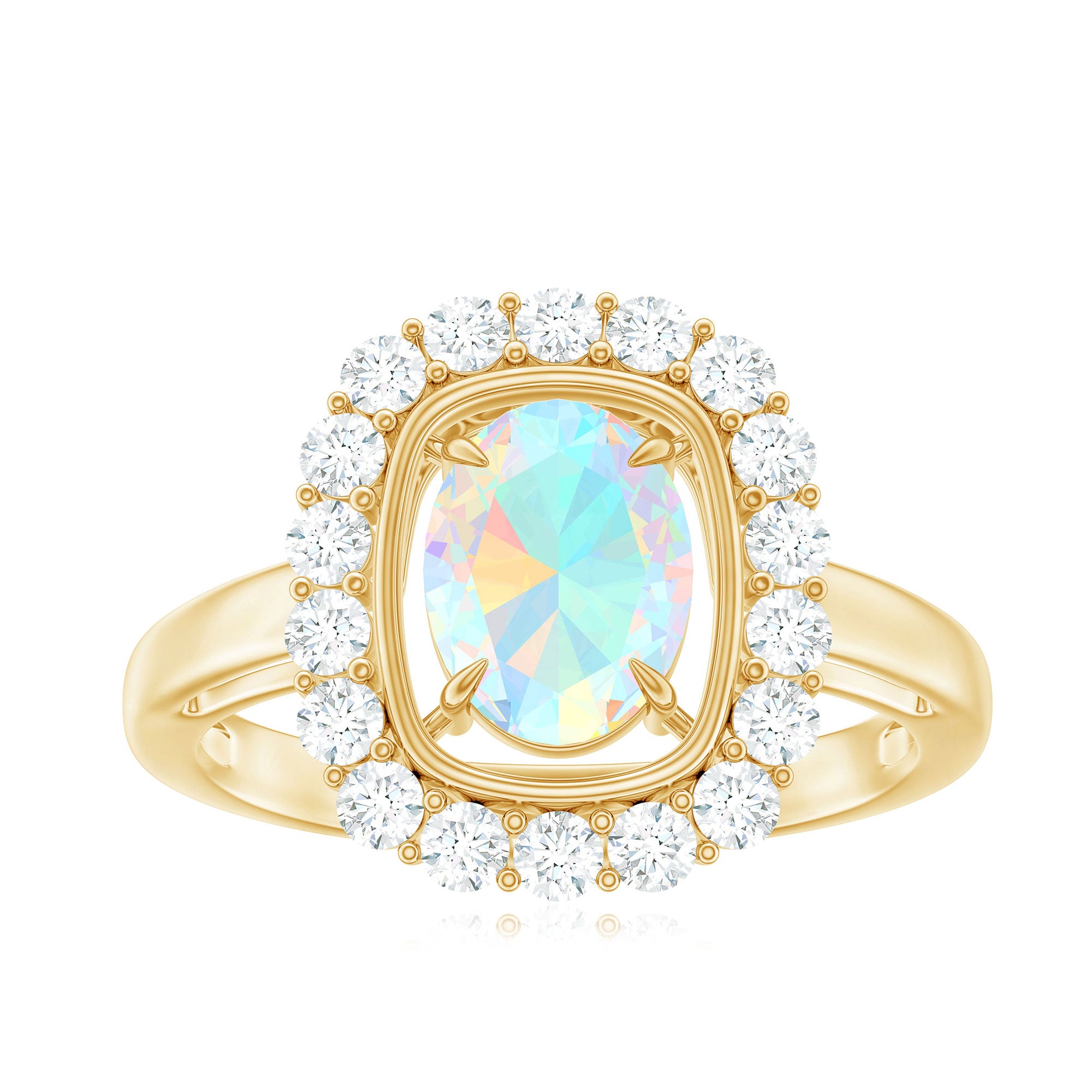 6x8mm Oval Cut Ethiopian Opal Halo Engagement Ring with Moissanite