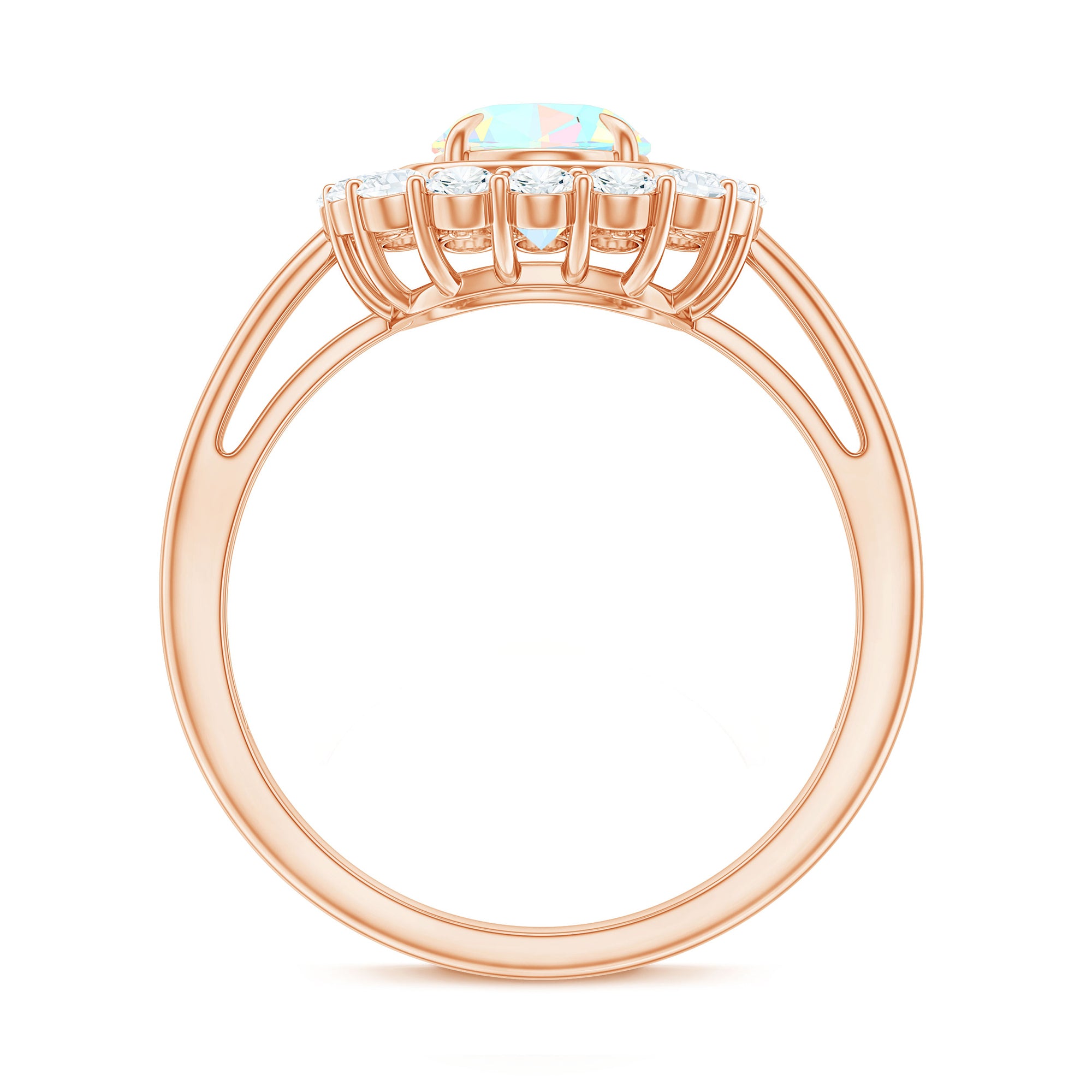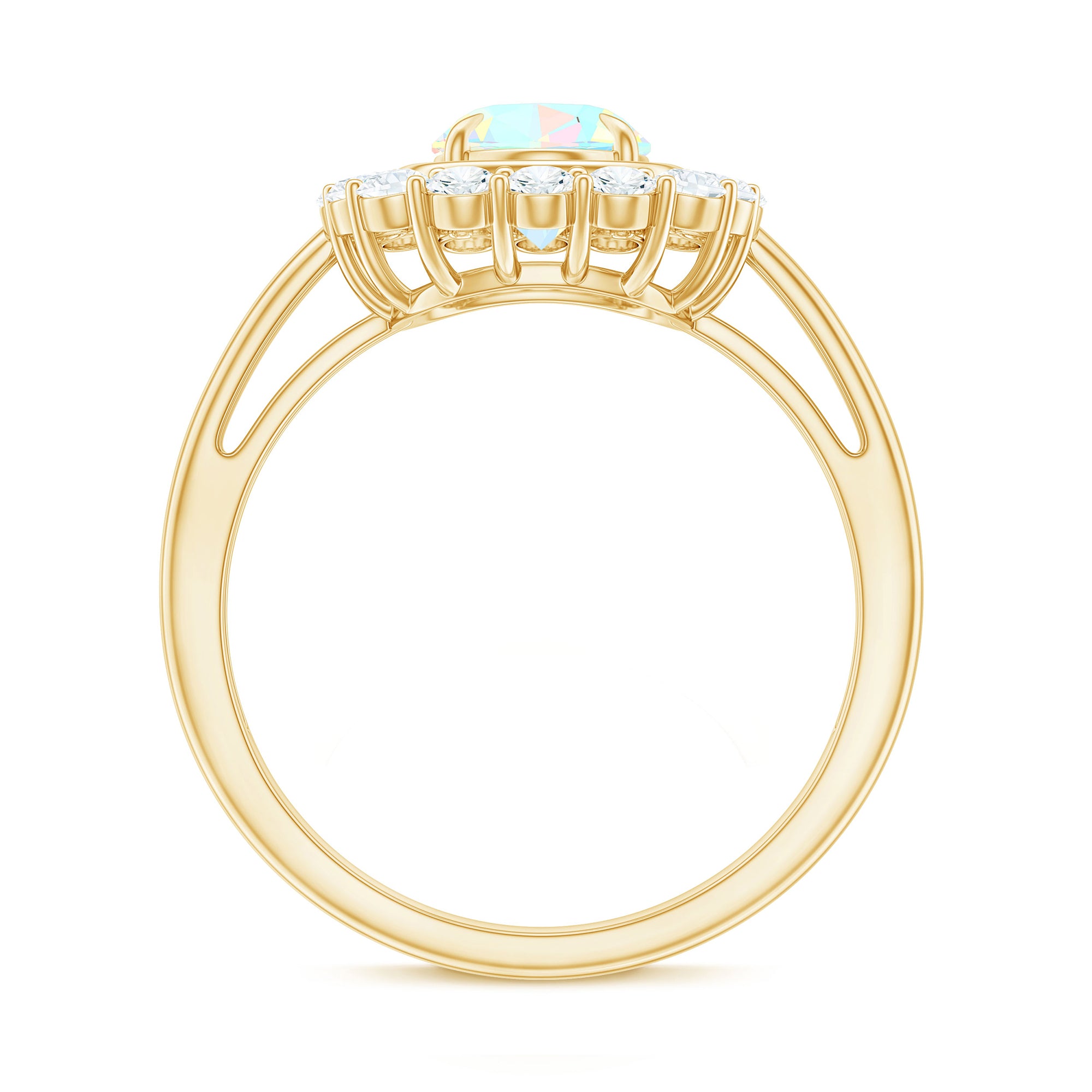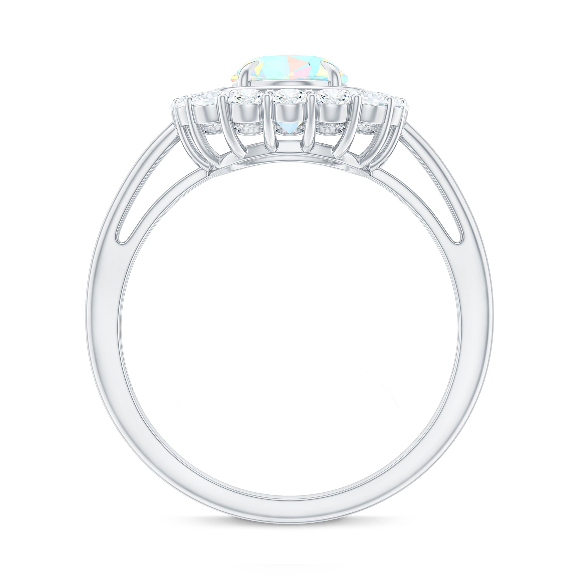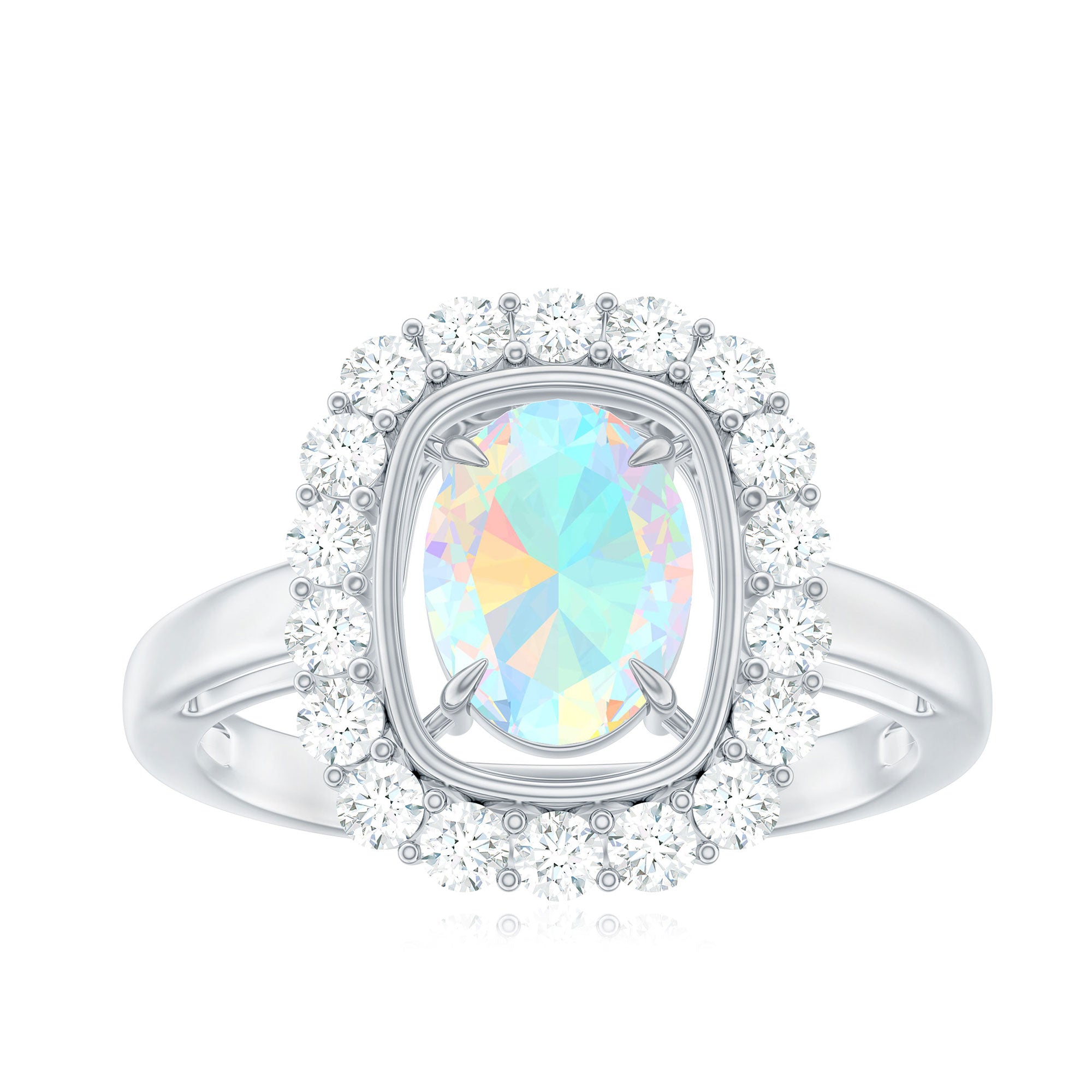 6x8mm Oval Cut Ethiopian Opal Halo Engagement Ring with Moissanite