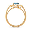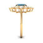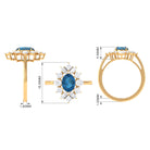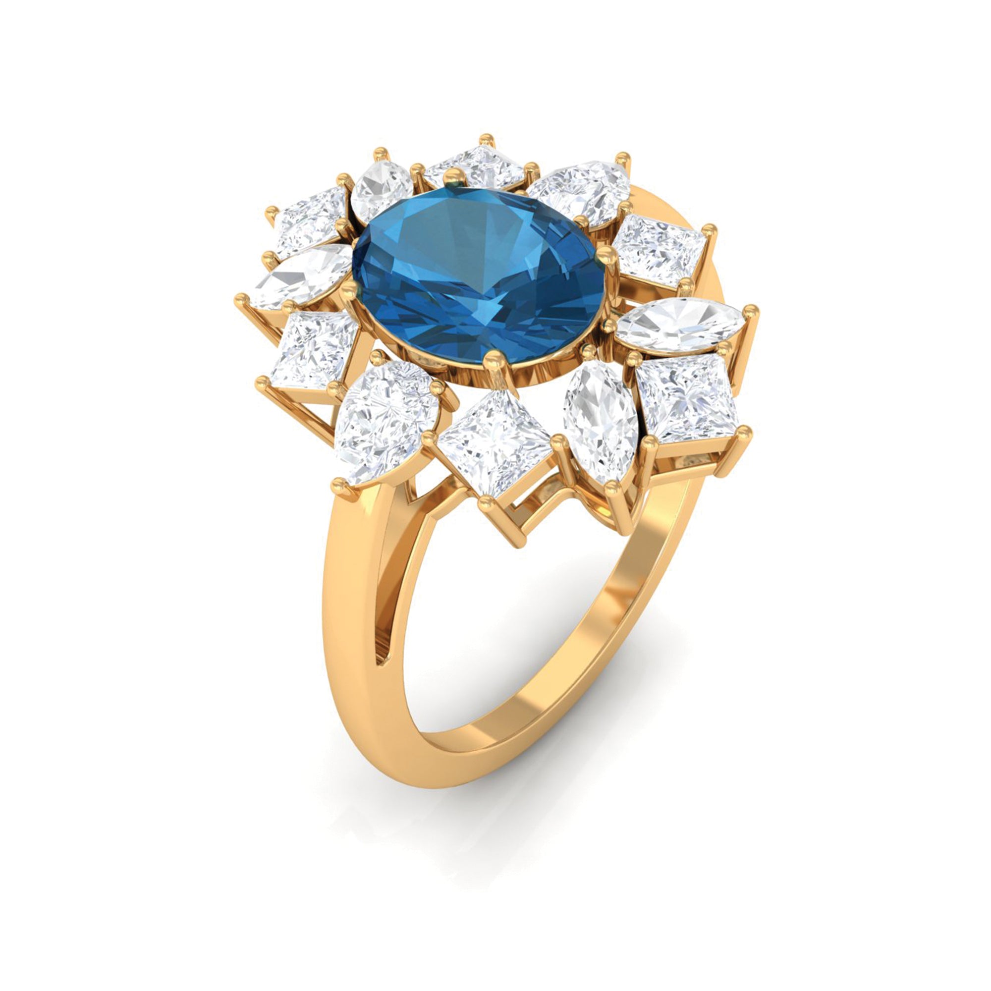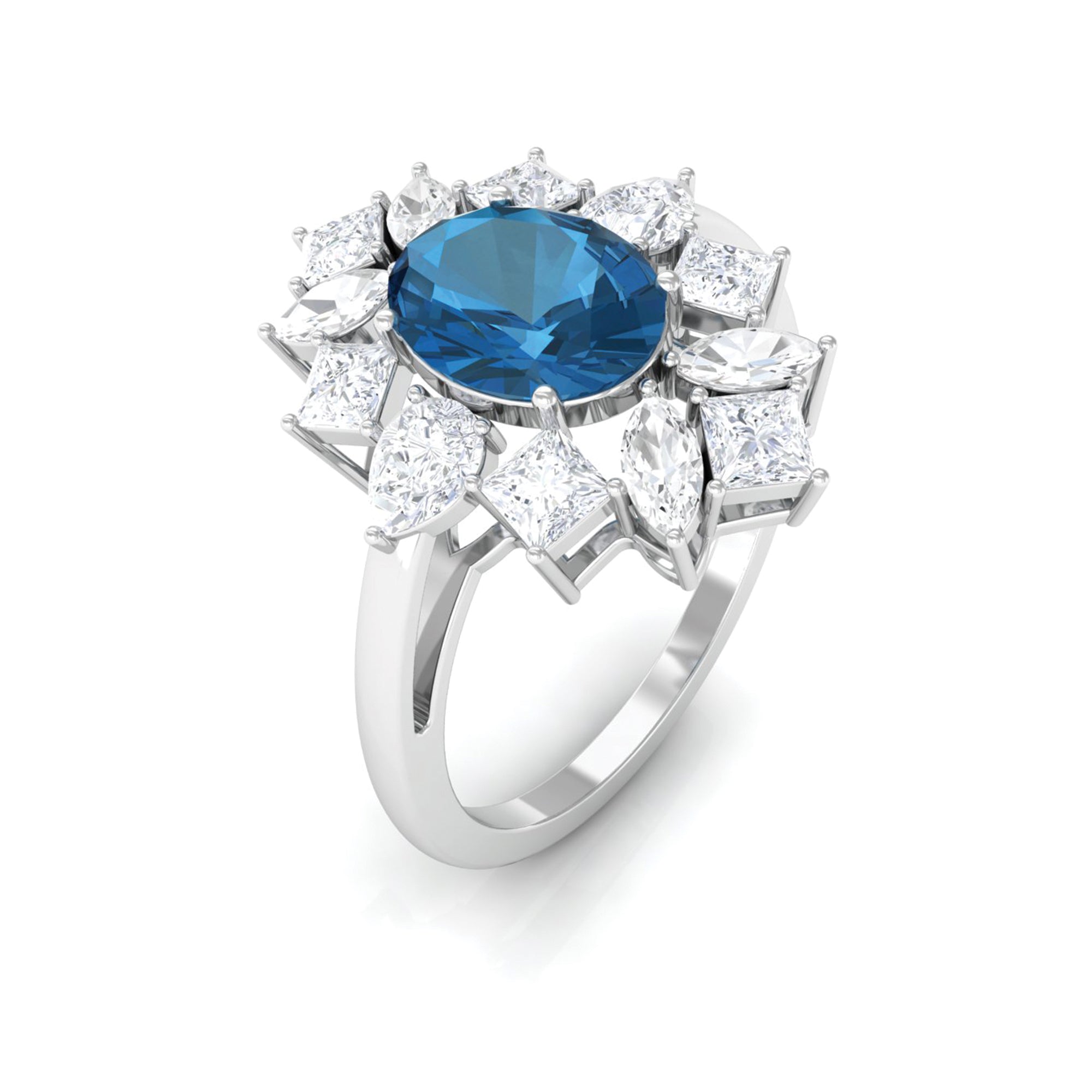 6X8mm Oval Cut London Blue Topaz Big Statement Ring with Moissanite