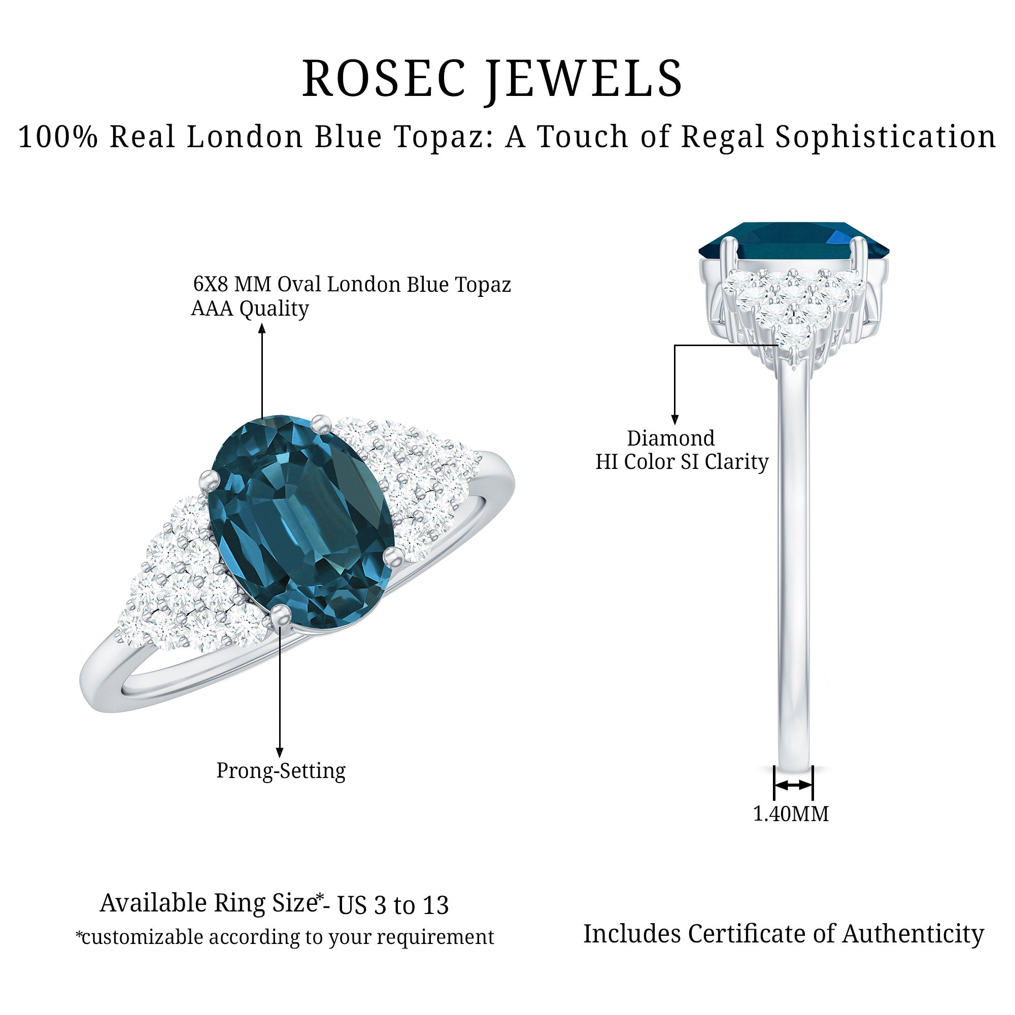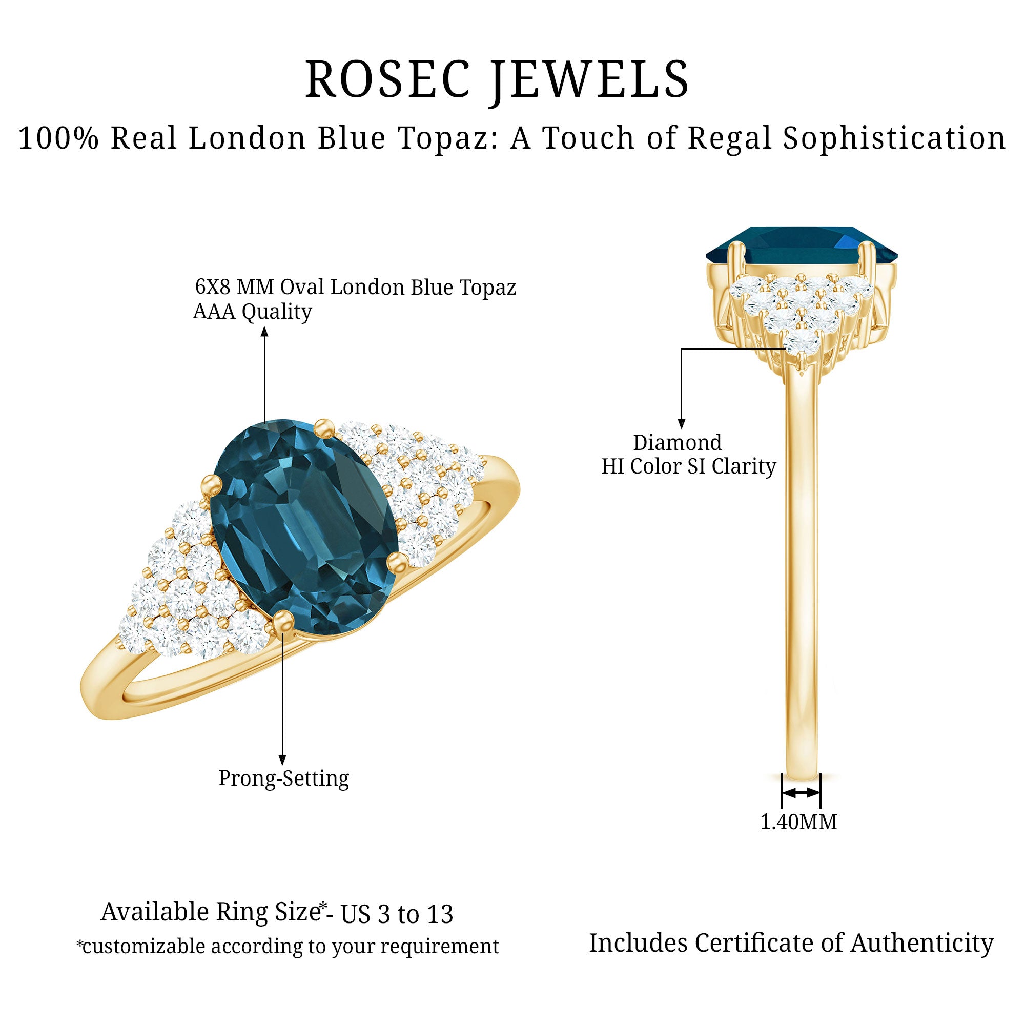 6X8mm Oval Cut London Blue Topaz Classic Engagement Ring with Diamond