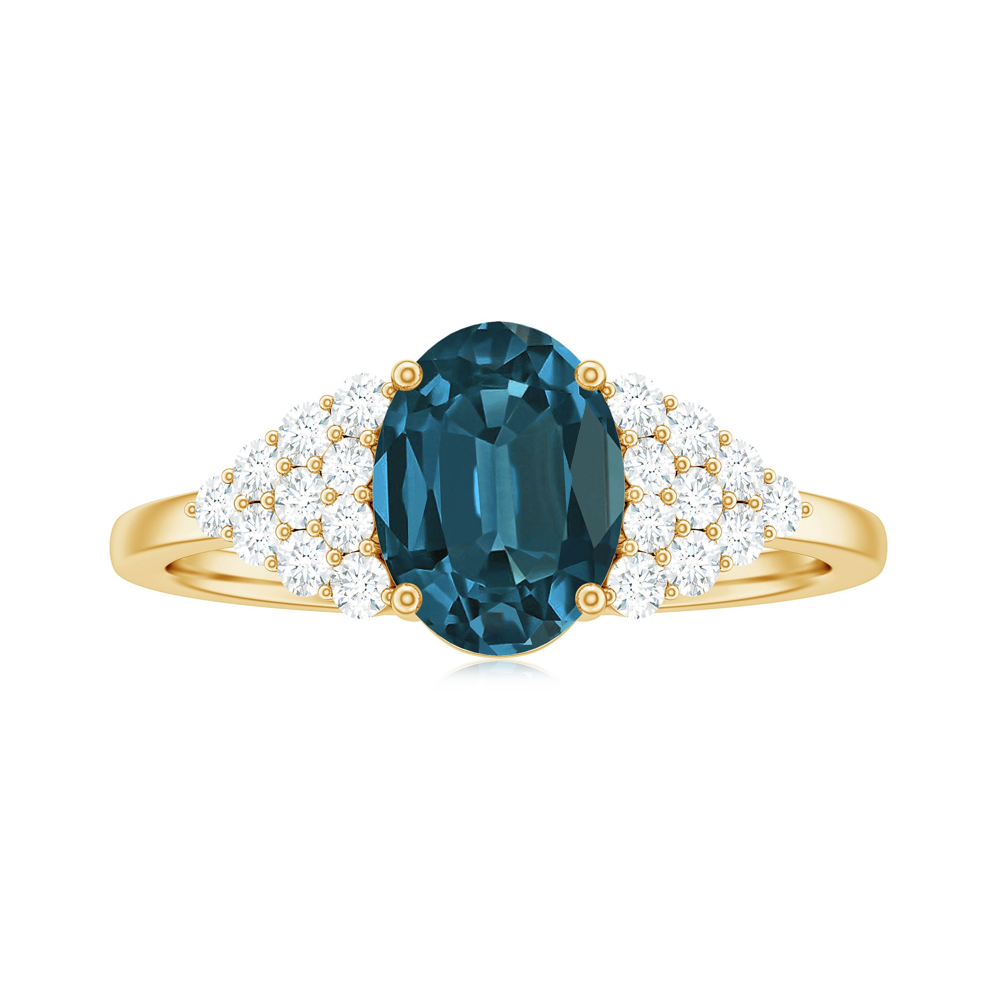 Discover the magic of nature encapsulated in the London Blue Topaz Ring, which enchants with its beauty, making it a remarkable piece of jewelry that every bride would treasure. This ring showcases a 6X8 mm oval cut London Blue Topaz positioned at the center as a solitaire in a Prong Setting, complemented by small round diamond accents arranged in a cluster style. This Oval Engagement Ring is celebrated for its ethereal beauty that captures attention. Always fashionable, this Designer Engagement Ring stands as a tangible symbol of your unique love story. This London Blue Topaz and Diamond Engagement Ring emits a dazzling sparkle, making it a perfect choice for those who wish to express a simple yet memorable statement. Whether as a token of commitment or as a Marriage Ring, it represents the beautiful journey of your relationship, a heartfelt promise of a future filled with shared dreams and enduring love.
