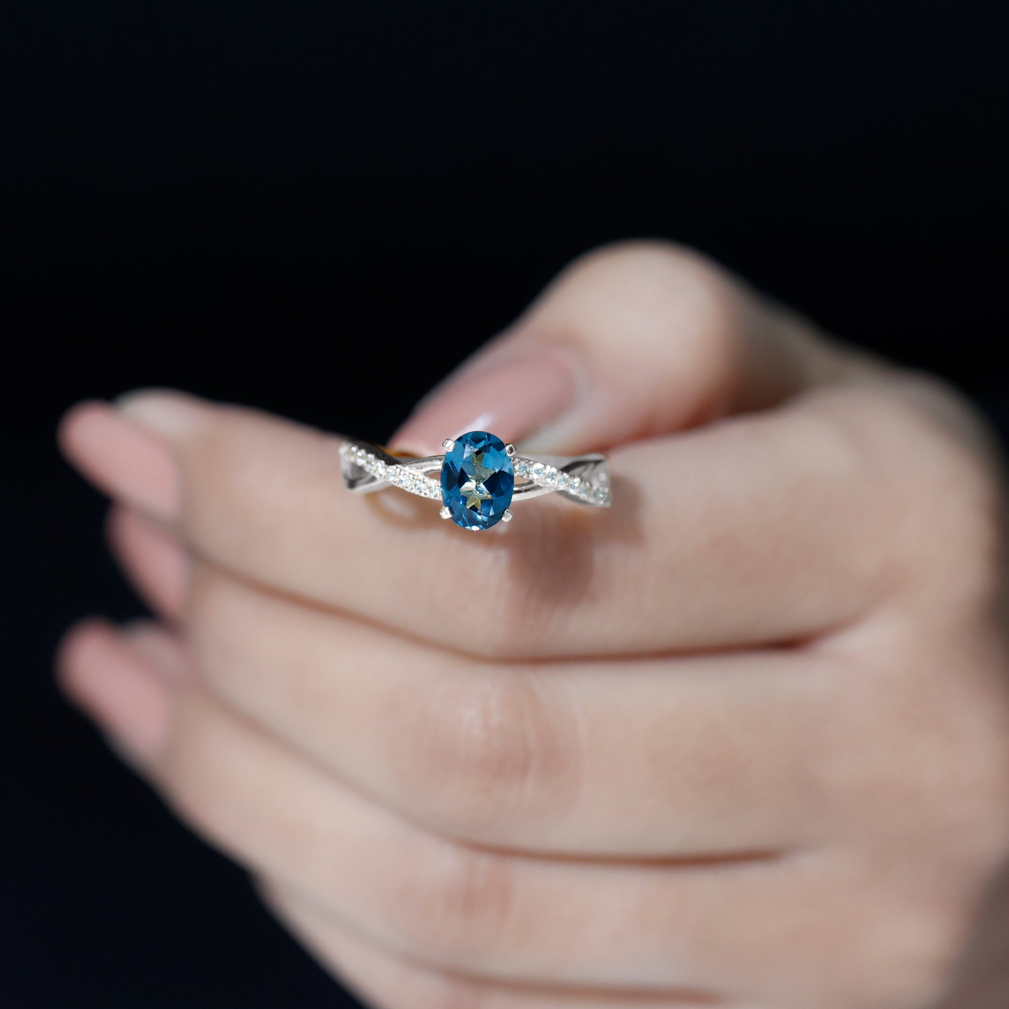 Celebrate the sparkle and love embodied in this exquisite London Blue Topaz Engagement Ring, crafted to leave a lasting impression. With its delicate and feminine design, this Infinity Ring serves as an ideal medium for conveying your emotions of love, joy, and gratitude in the most meaningful manner. At the heart of this sophisticated design lies a 6X8 MM oval cut London Blue Topaz, securely held in a prong setting. The band showcases a chic crossover design, adorned with glittering Diamond stones along the shank to enhance its brilliance. The London Blue Topaz stones are of AAA quality, celebrated for their radiant sparkle and superior quality. This Crossover Engagement Ring merges classic elegance with a contemporary flair, making it an excellent selection for someone who appreciates timeless beauty with a modern edge. Both simple and elegant, the design is suitable for daily wear or special events. Its gentle curves and understated shine render it a wonderful gift for anniversaries, significant milestones, or even as a promise ring to express your love and commitment. Meticulously crafted with intention, this Natural London Blue Topaz Ring for Her encapsulates the beauty of shared experiences and the vow of eternity. It transcends being merely a ring; it serves as a reminder of all that you hold dear about your relationship.