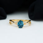 6X8mm Oval Cut London Blue Topaz Solitaire Engagement Ring with Diamond Spiral Shank