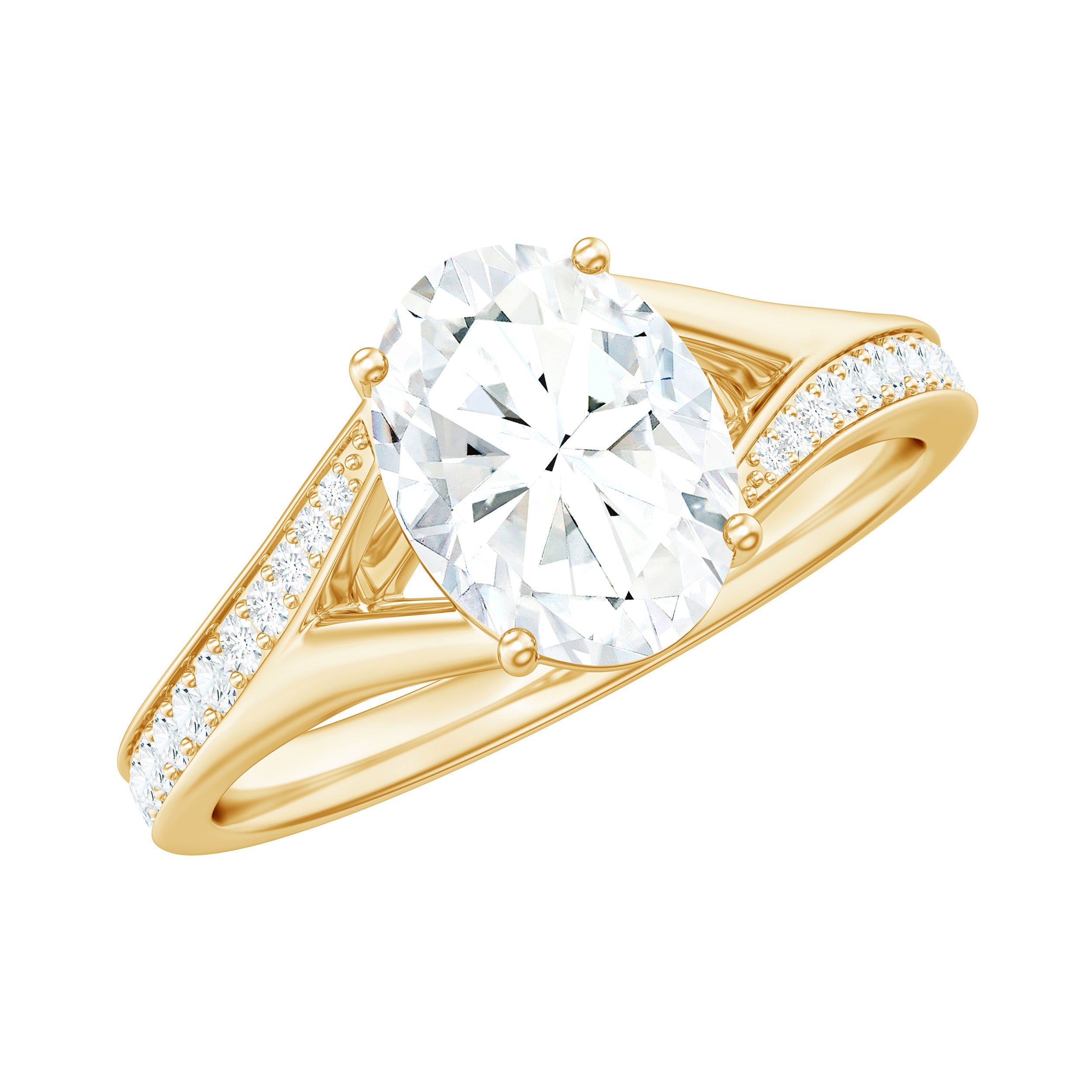 6x8mm Oval Cut Moissanite Solitaire Engagement Ring with Split Shank