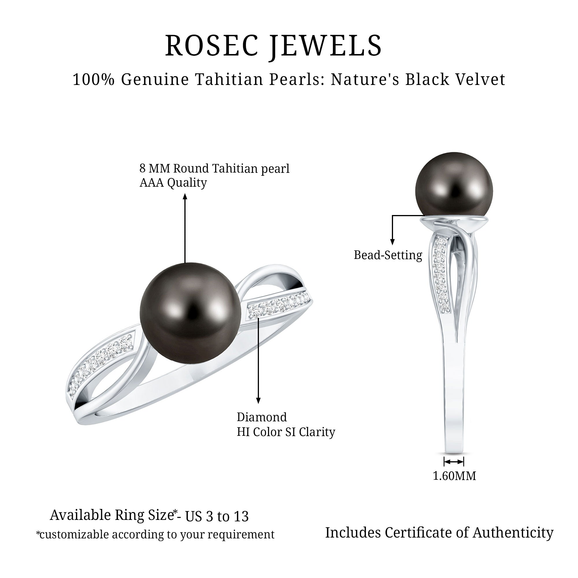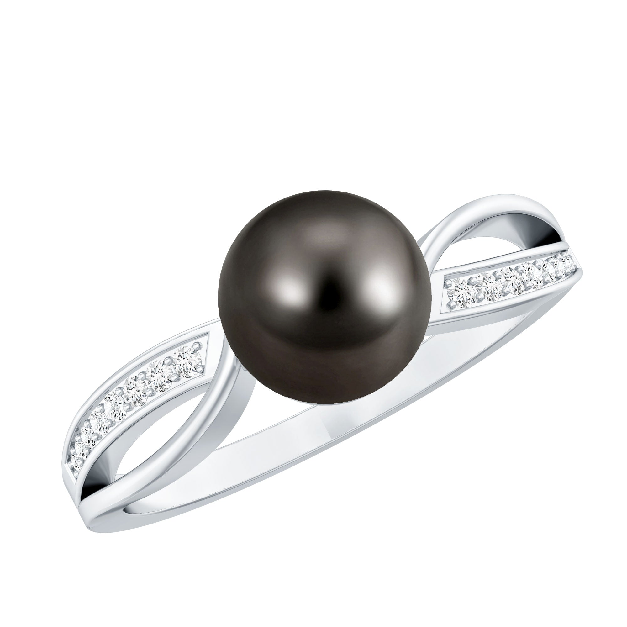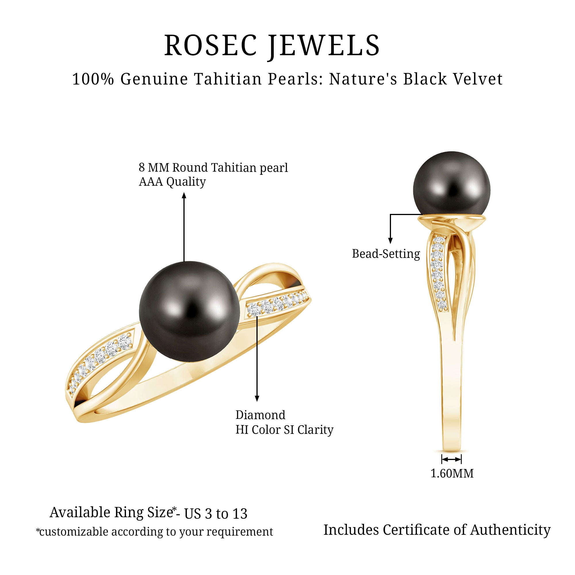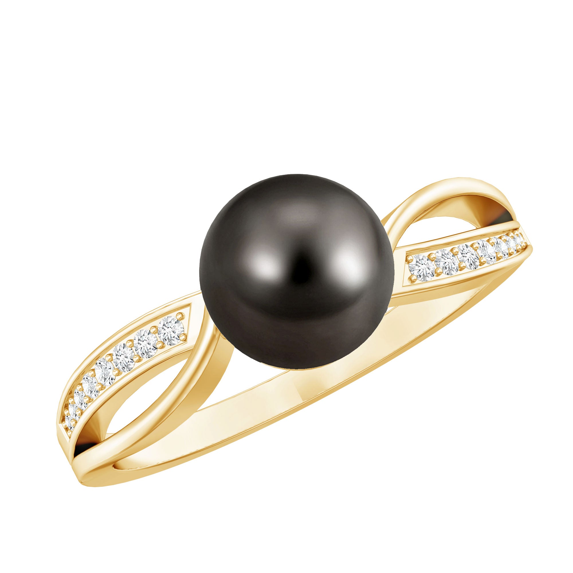 Give Her That Fairytale Ending. Forever gleaming and radiant, adorn her hand with our Solitaire Tahitian Pearl Engagement Ring that is only fit for a true princess. Featuring brilliant round shape tahitian pearl at the center and Diamond accent on the designer shank, handcrafted in Gold this Black Tahitian Pearl and Diamond Ring is absolutely stunning.