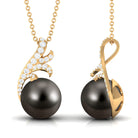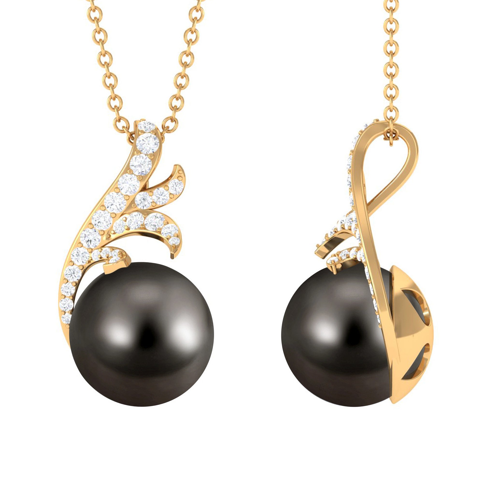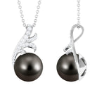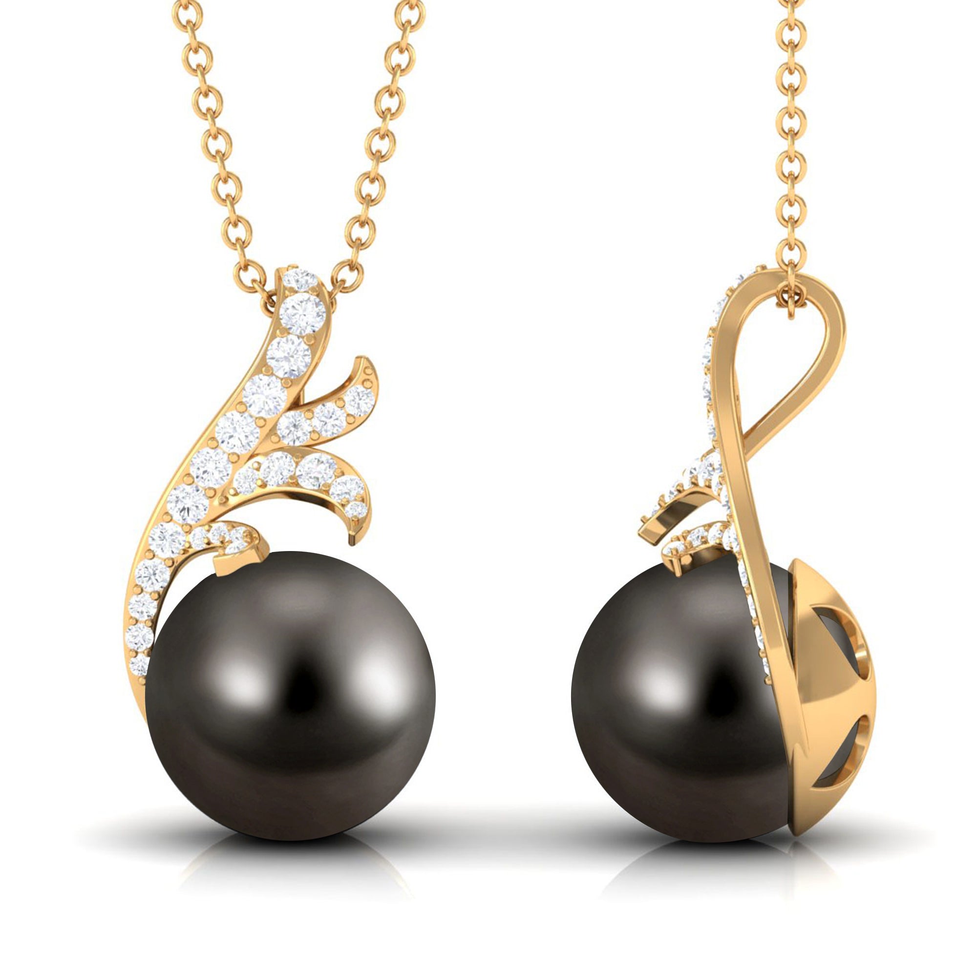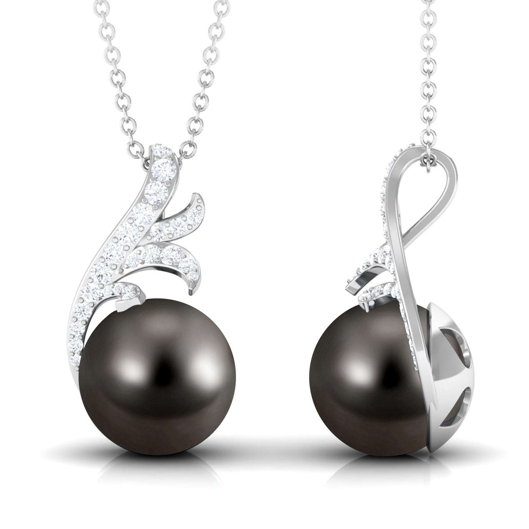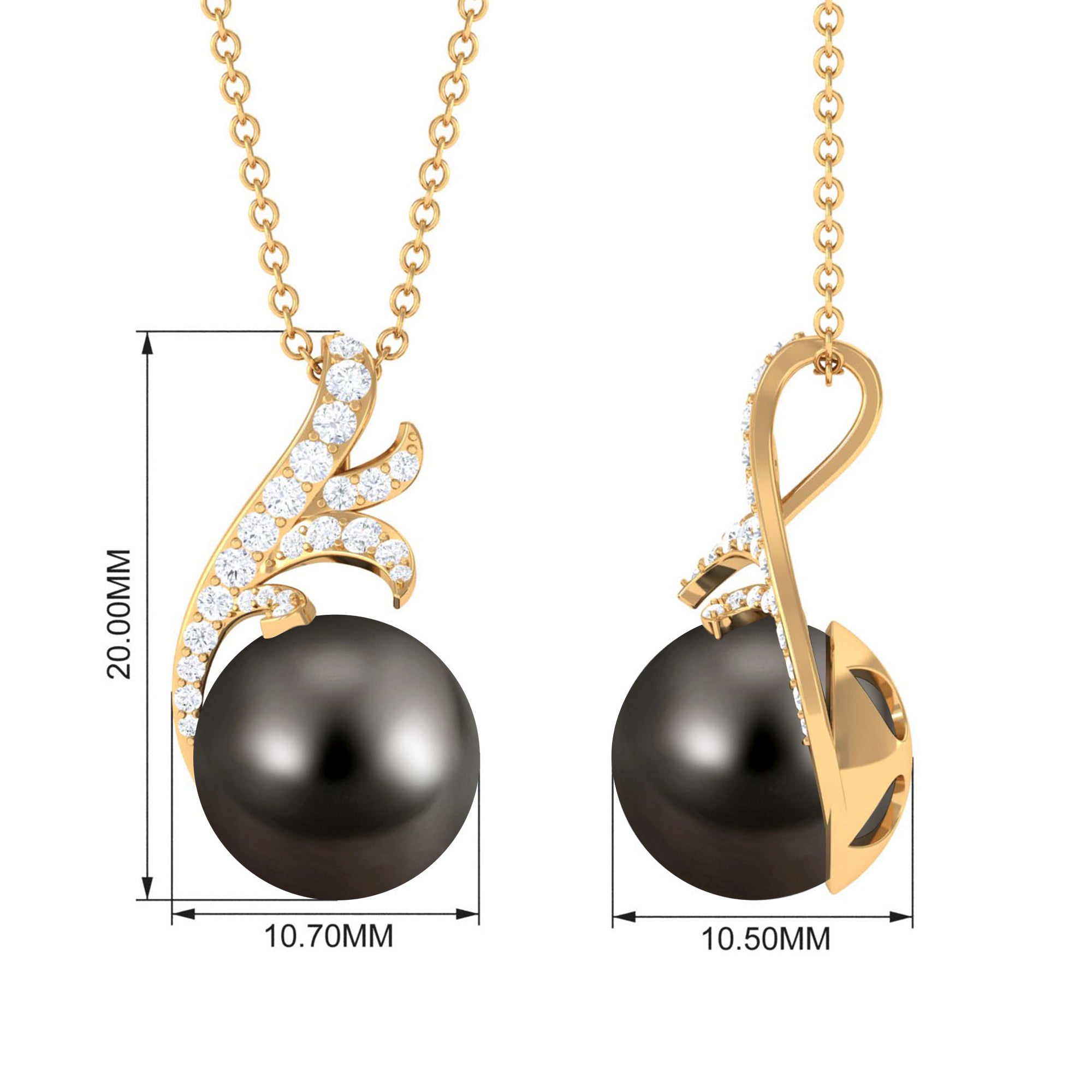 7.75 CT Natural Tahitian Pearl Leaf Inspired Drop Pendant Necklace with Diamond