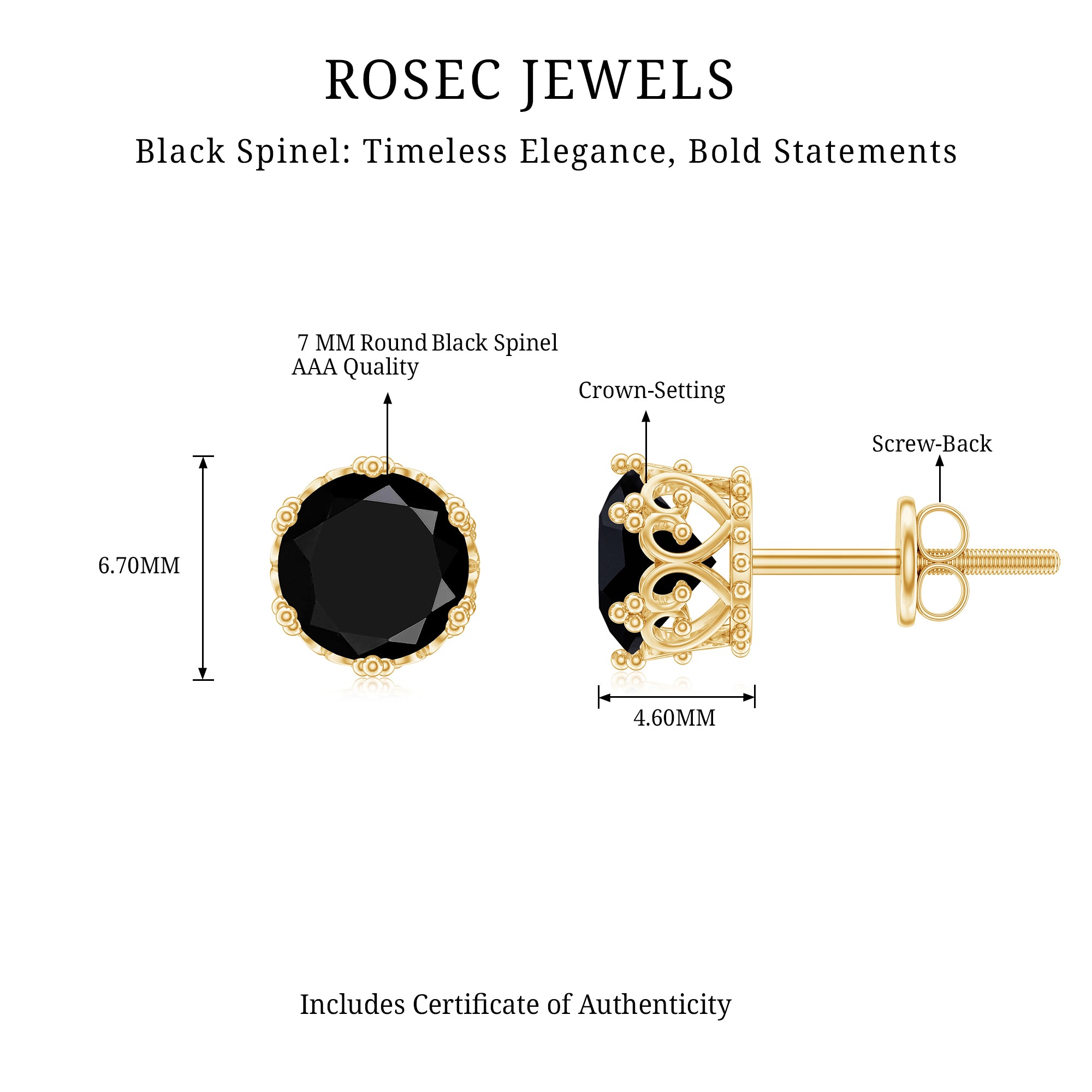 7 MM Black Spinel Solitaire Crown Stud Earrings