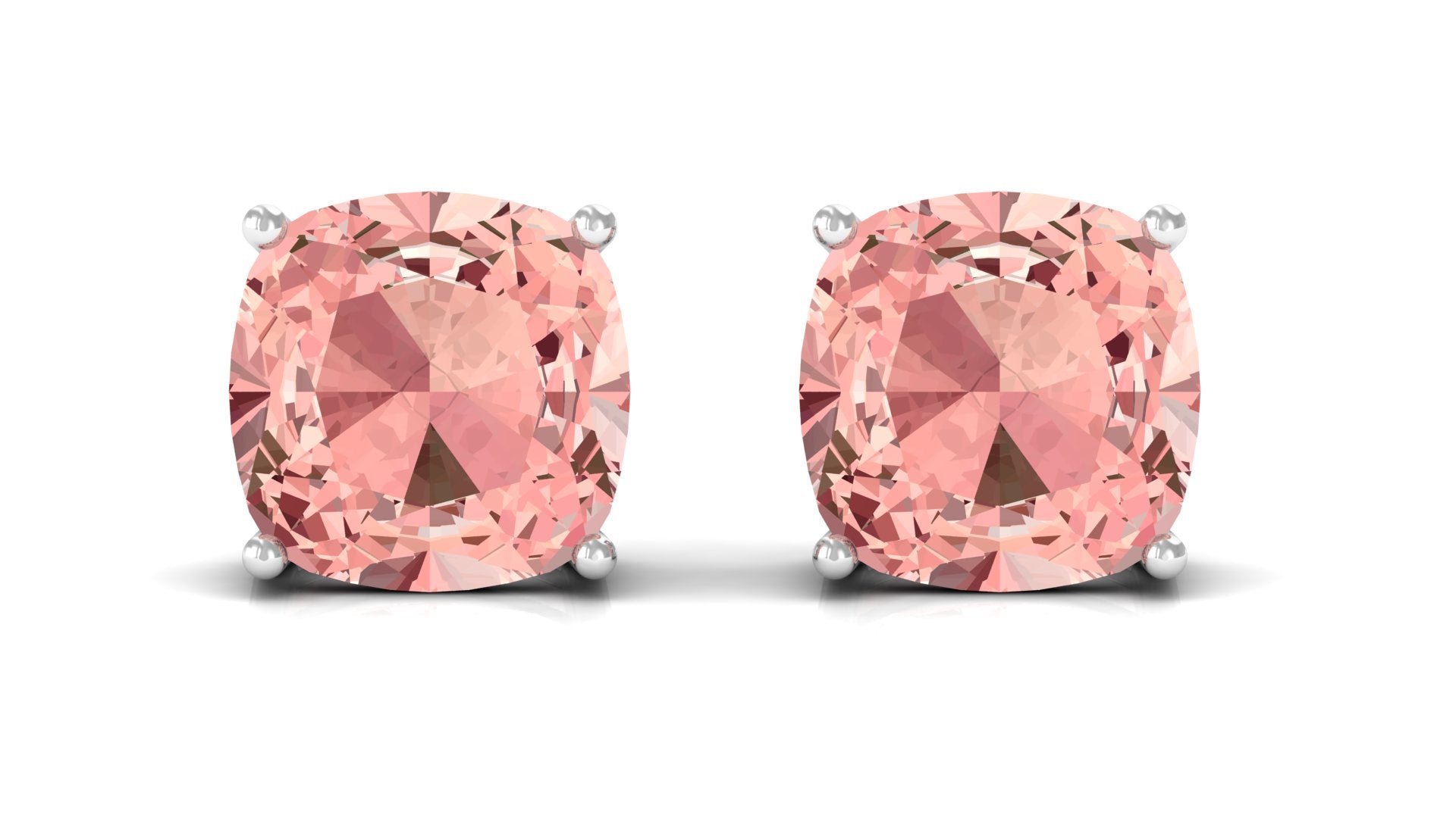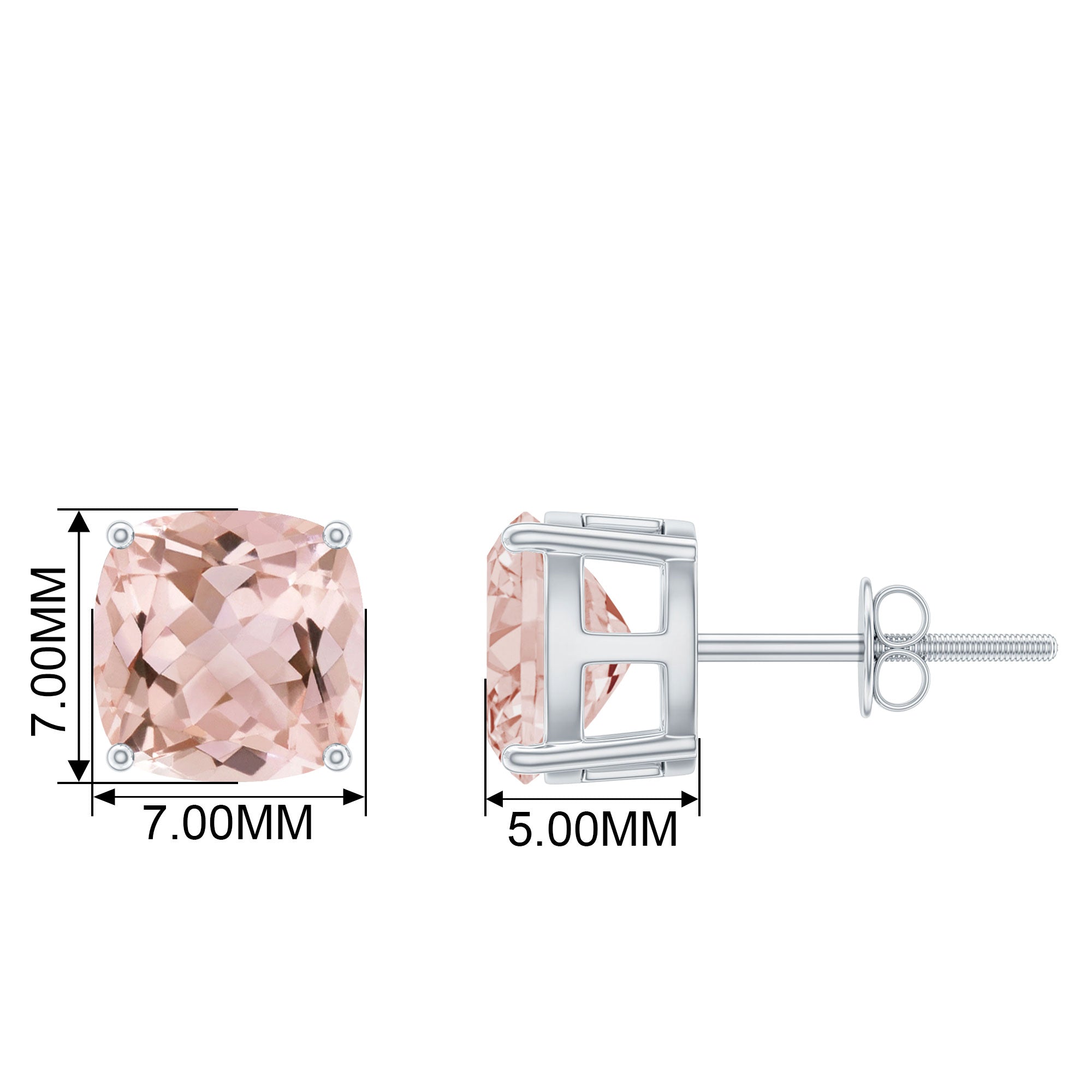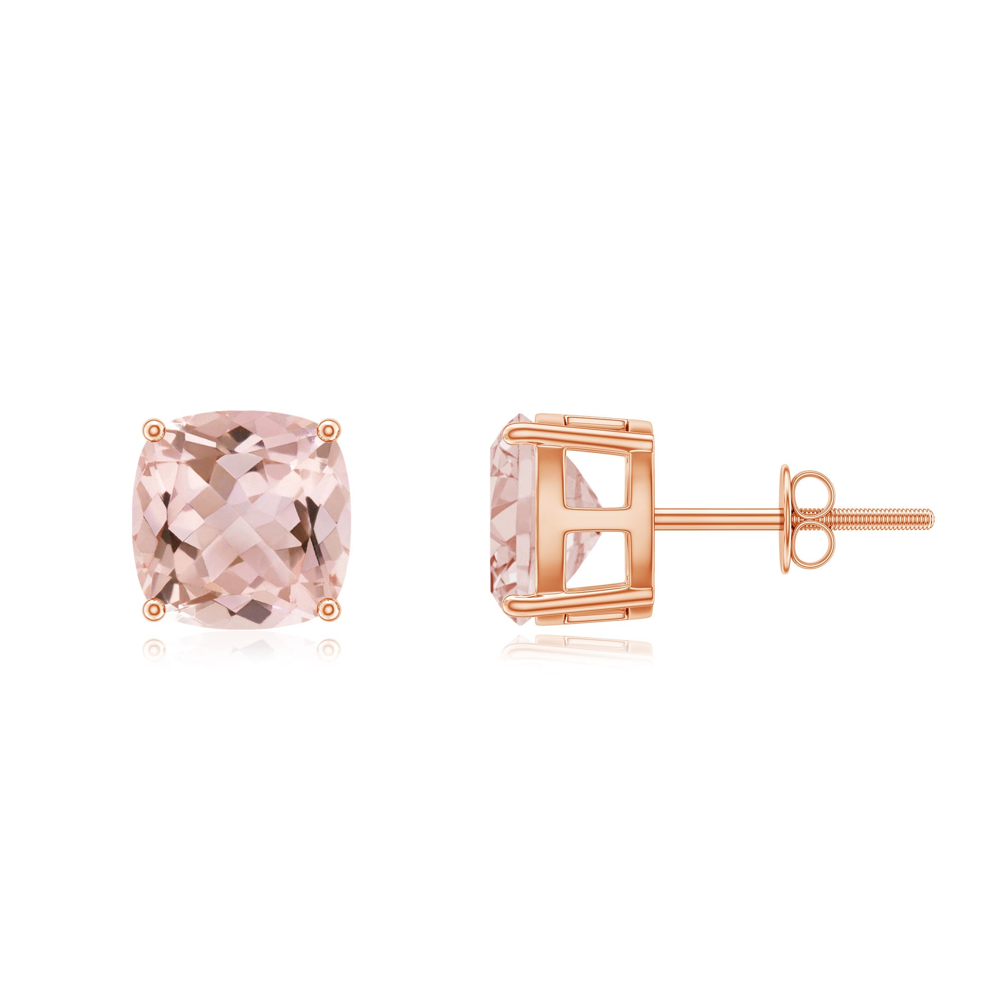 7 MM Cushion Cut Morganite Solitaire Stud Earrings